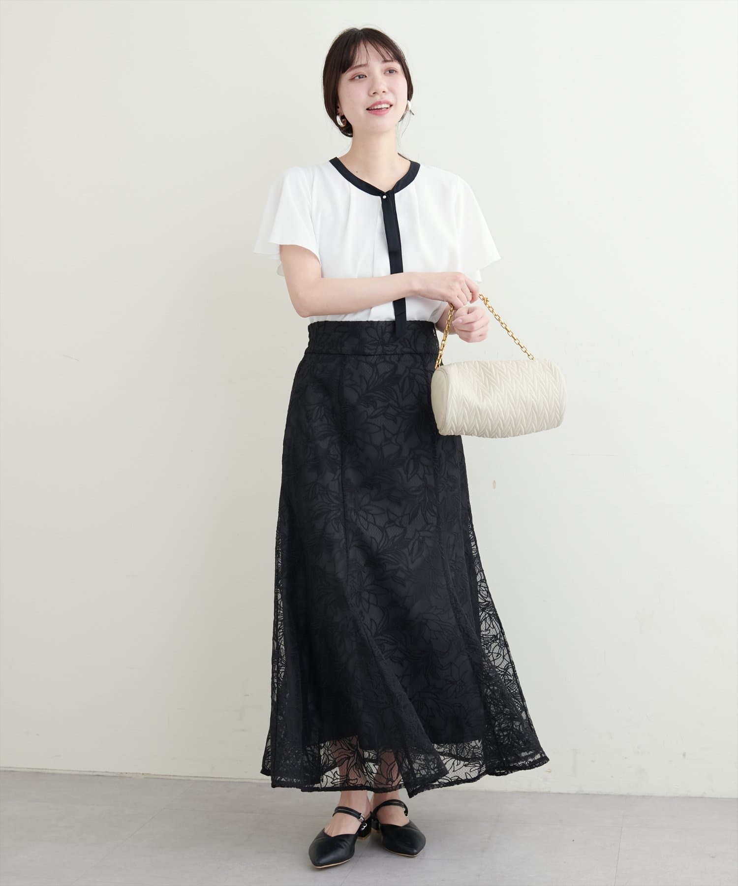 レーススカートやマーメイドシルエット、フレアラインのスカート合わせで、上品な印象に仕上げるのはもちろん、