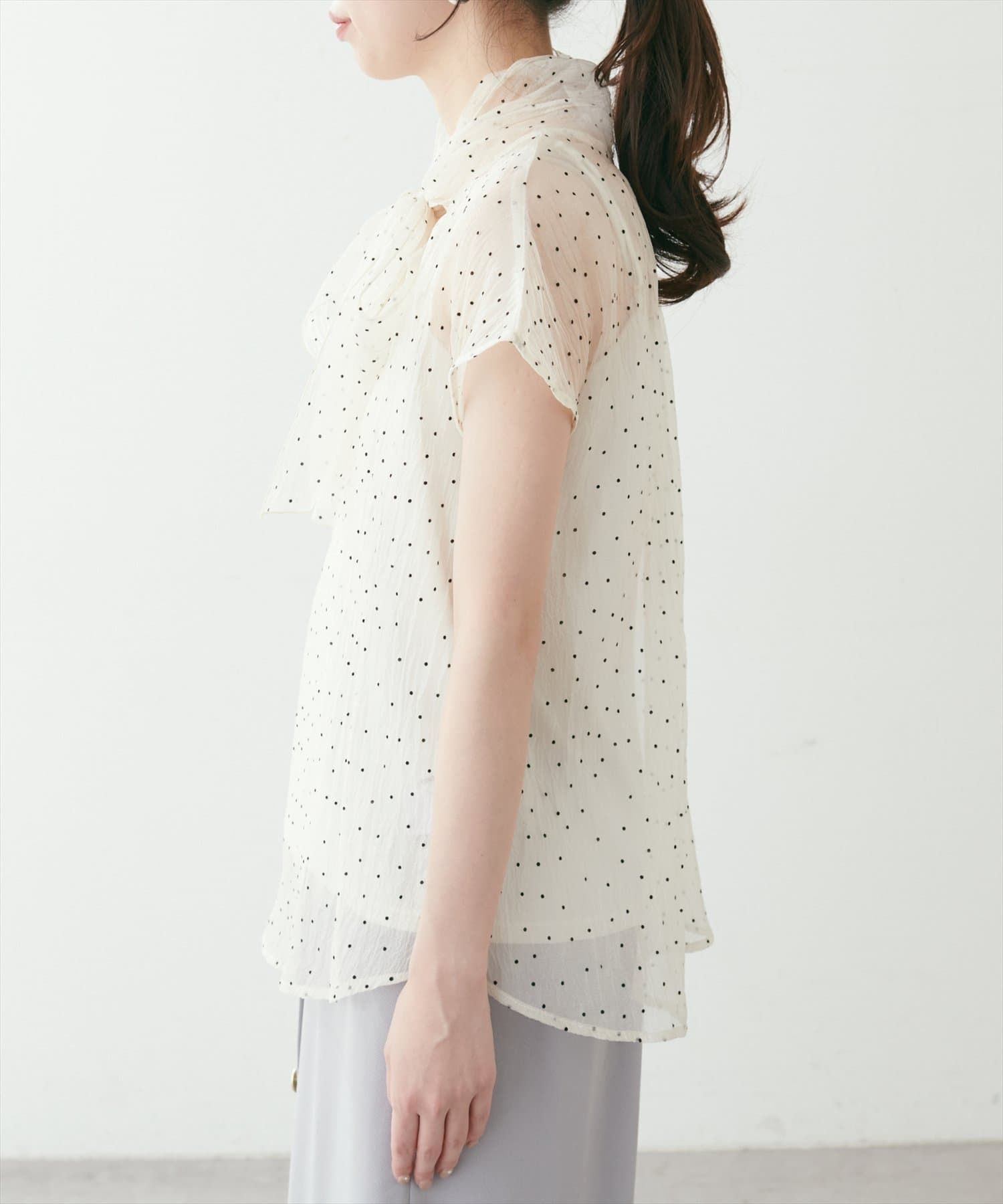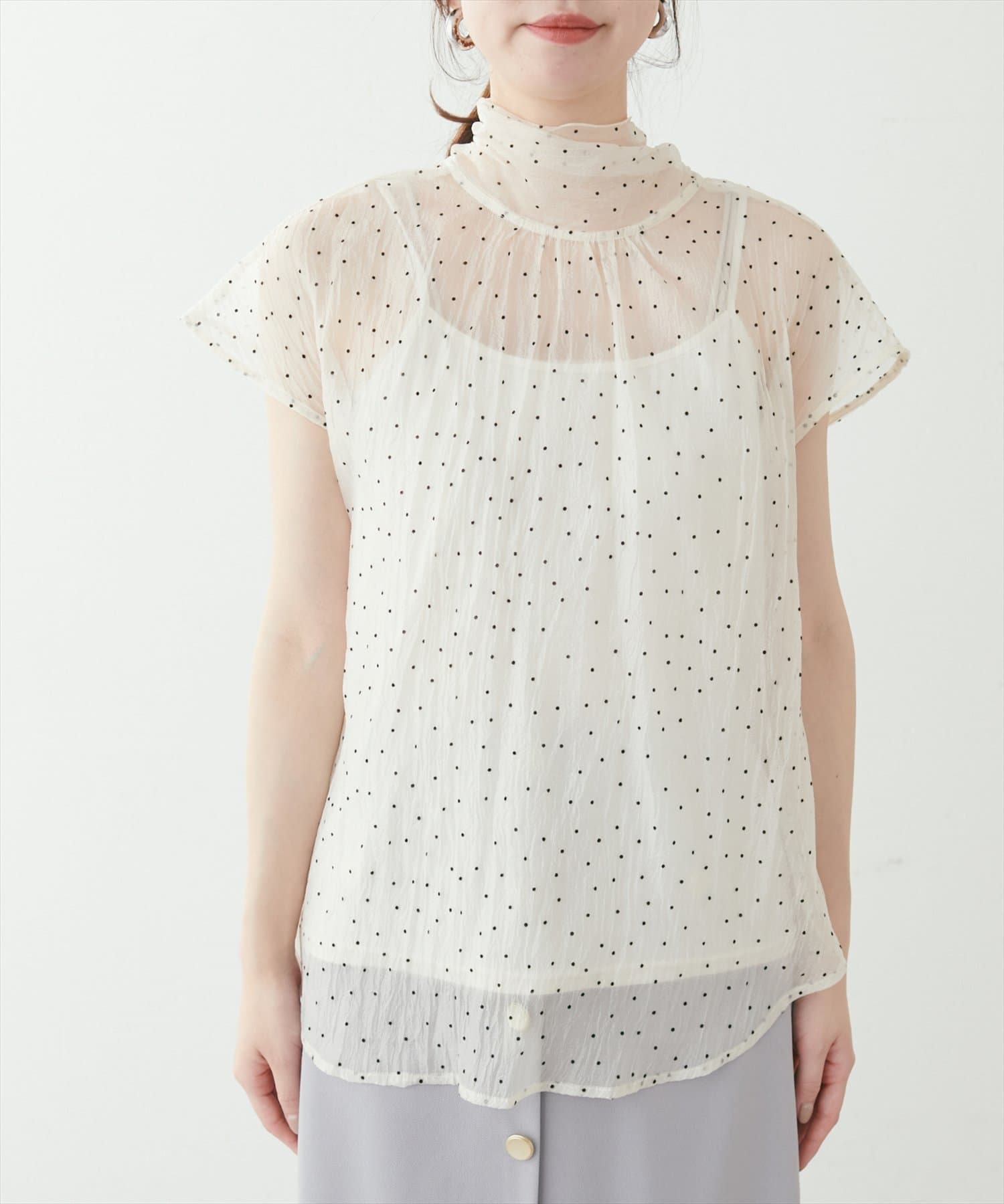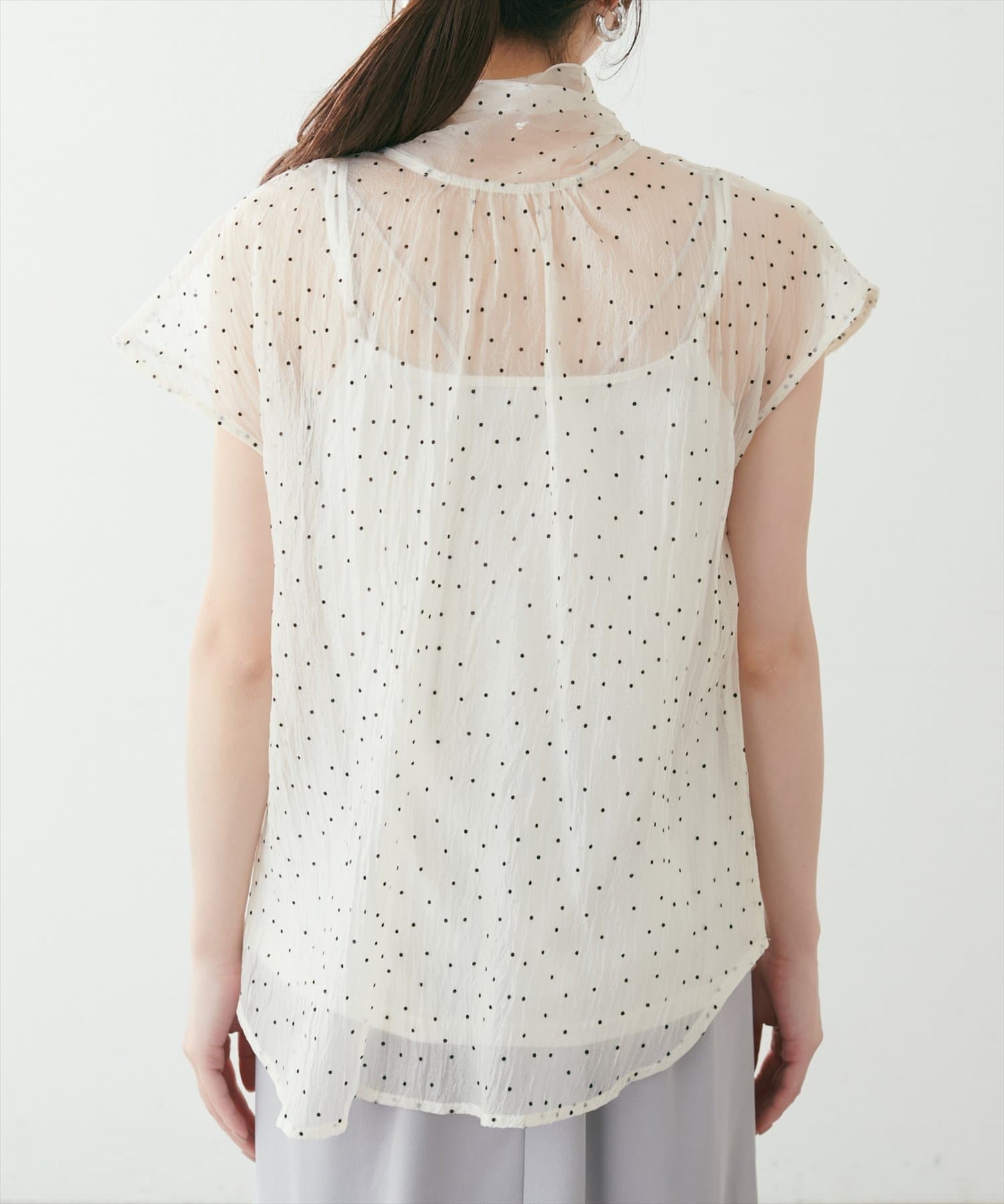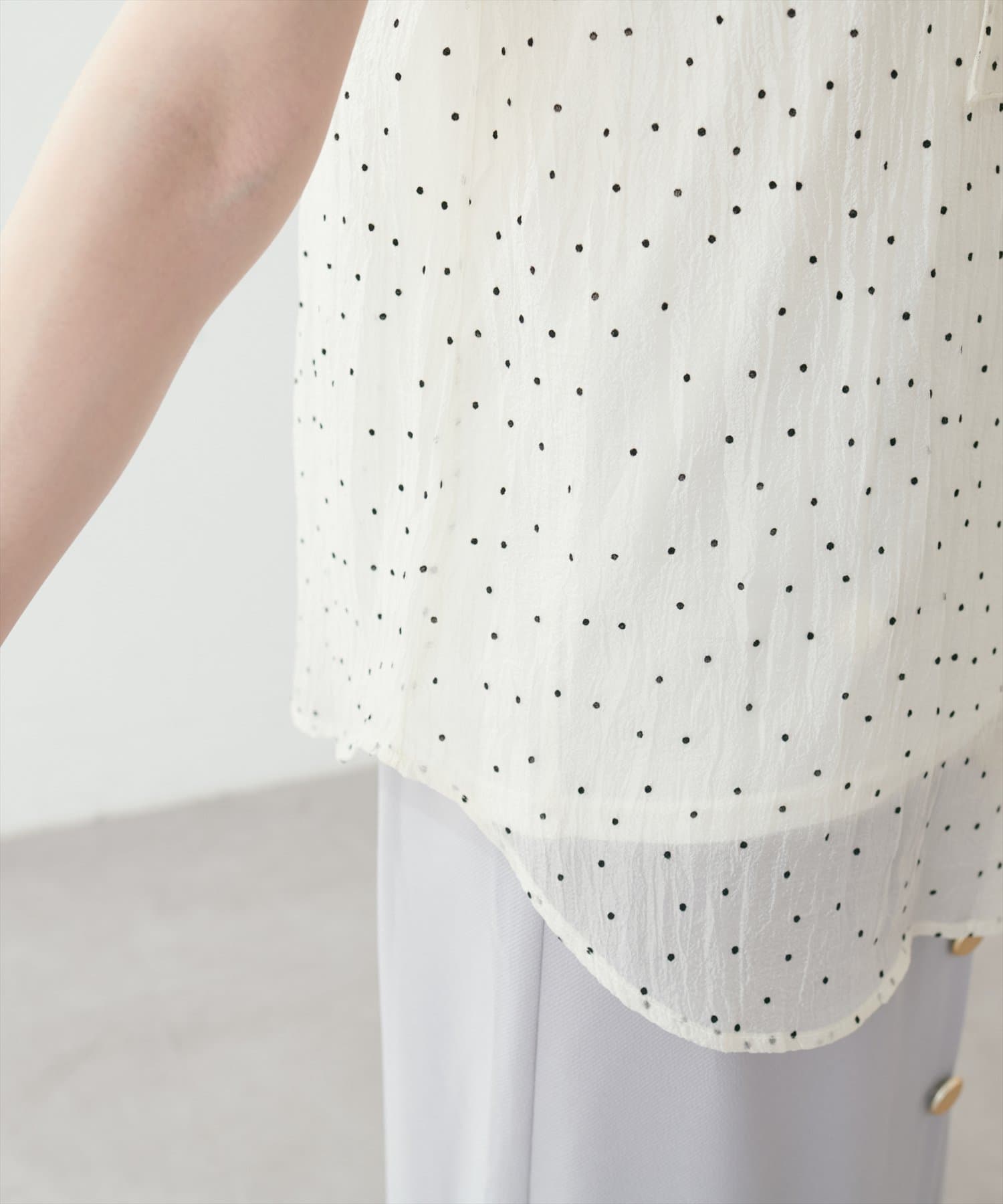 シアー素材のさらりとした生地でこれからの時期にもサラッと軽い着心地がストレスフリー。
