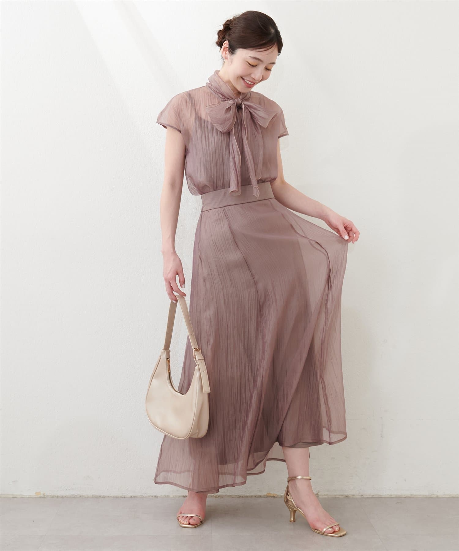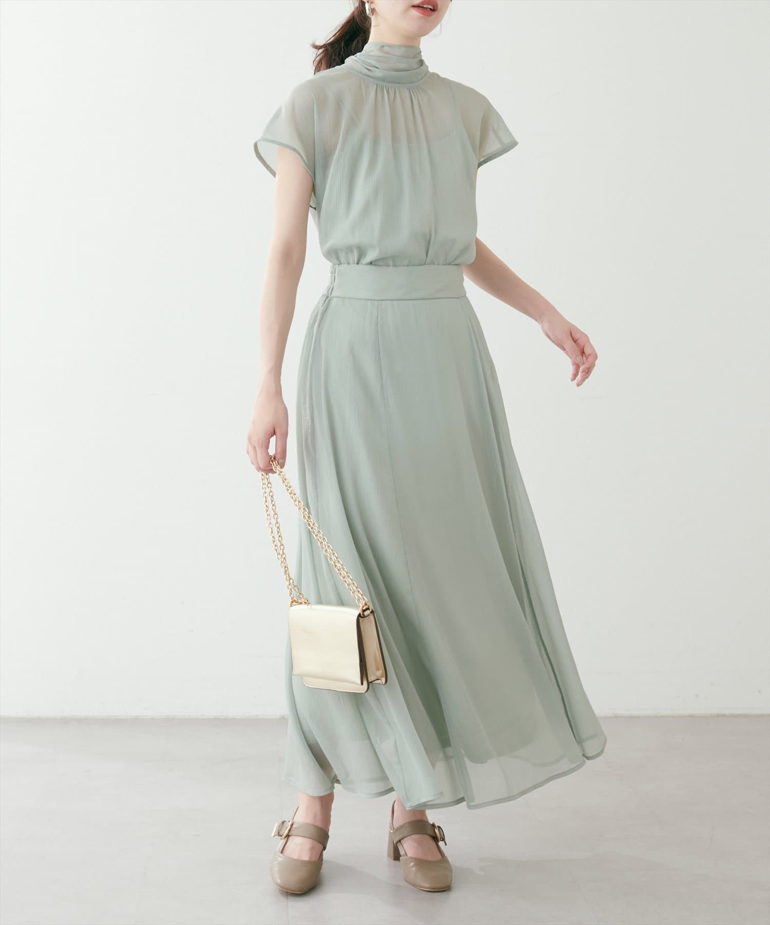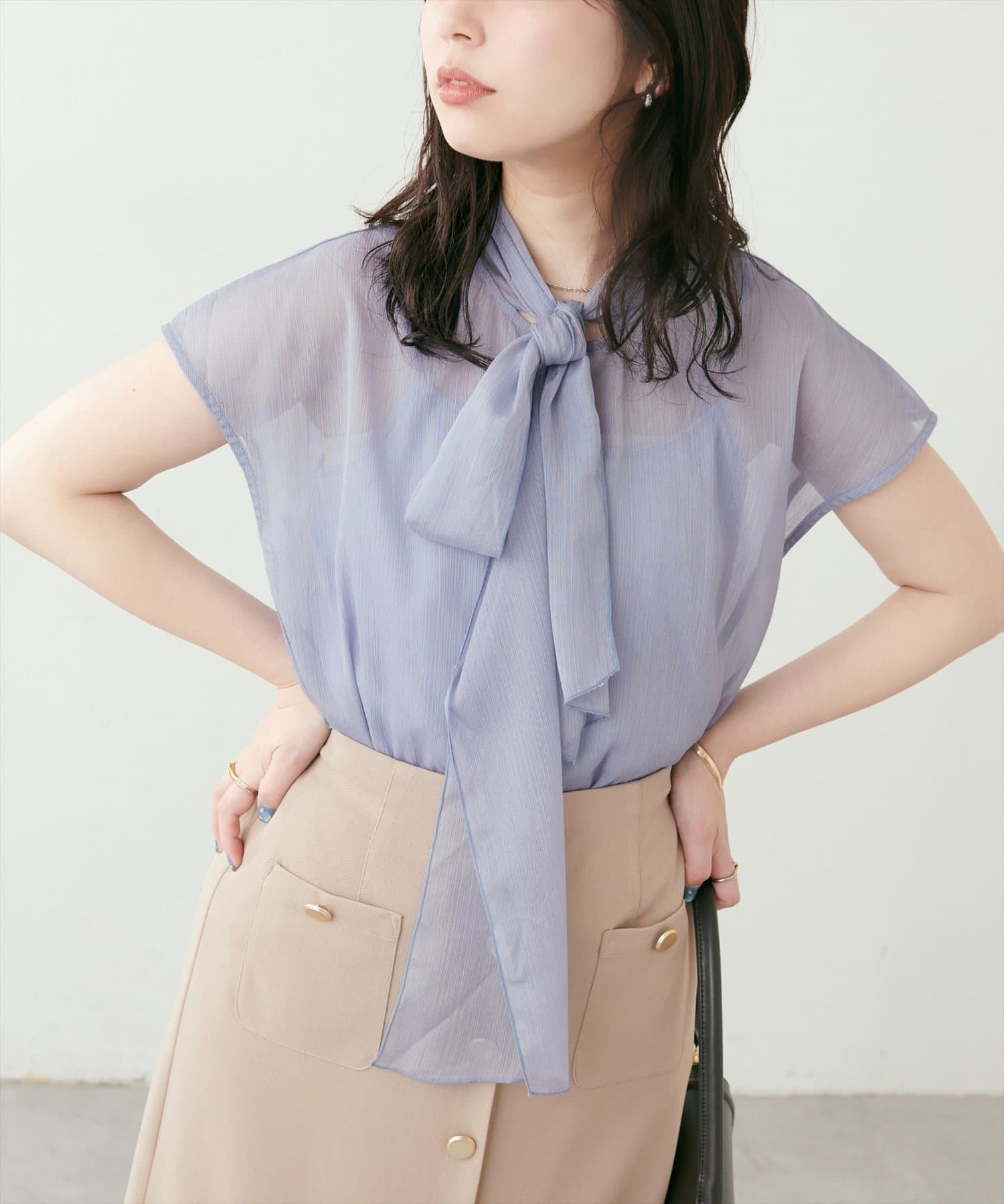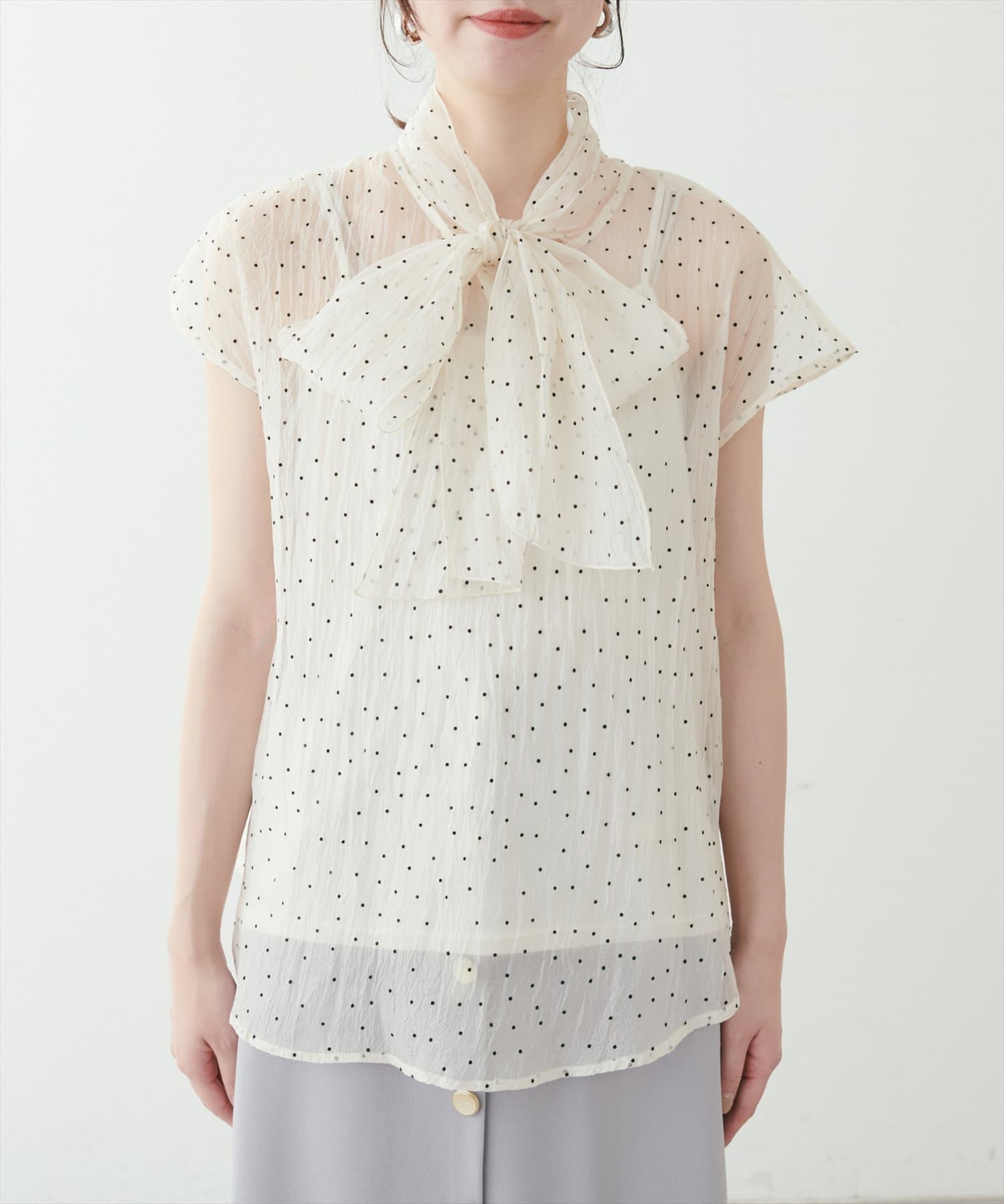 シアー素材のさらりとした生地でこれからの時期にもサラッと軽い着心地がストレスフリー。