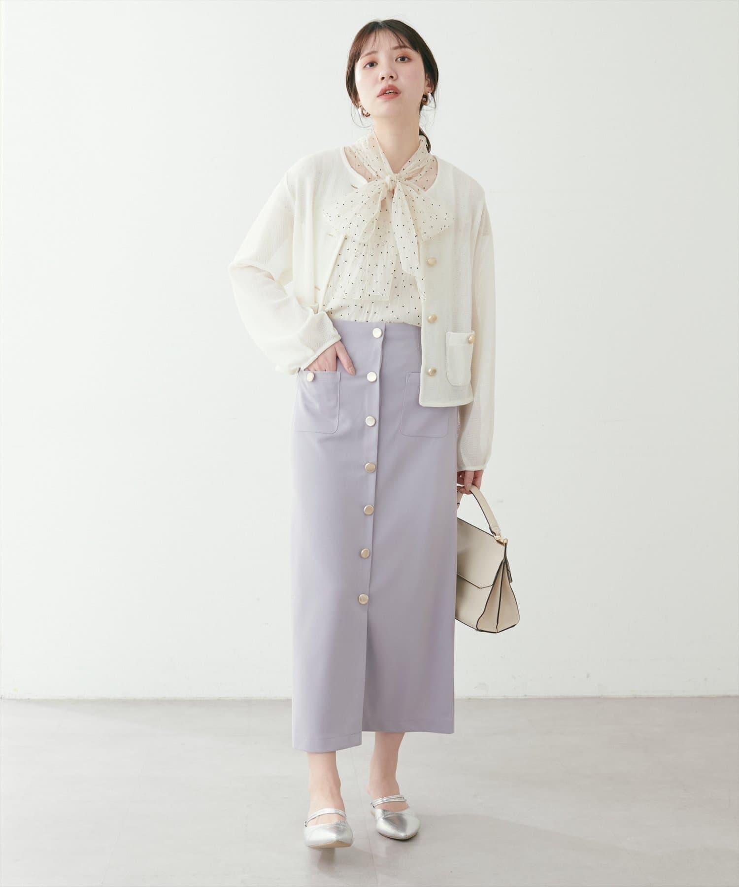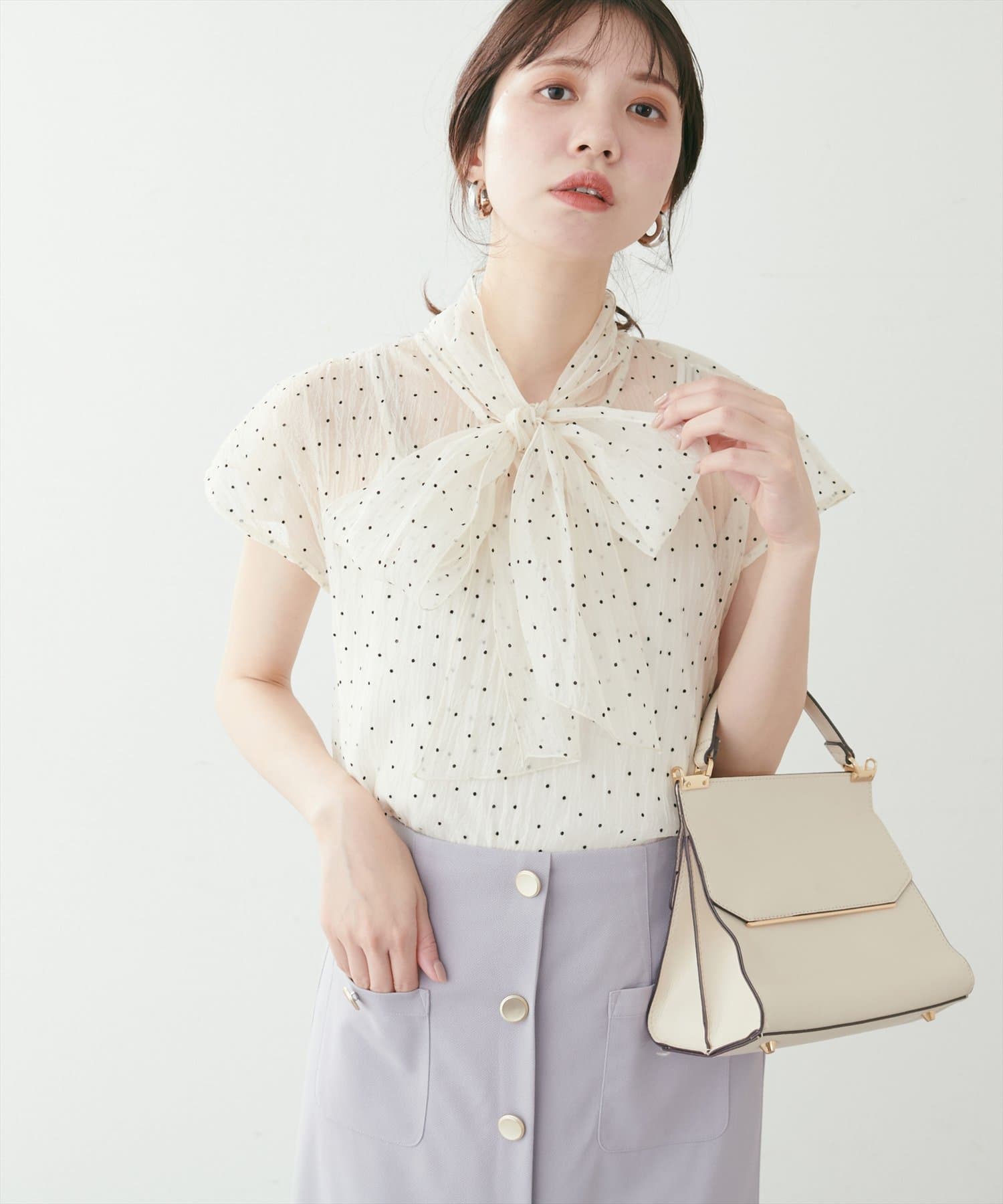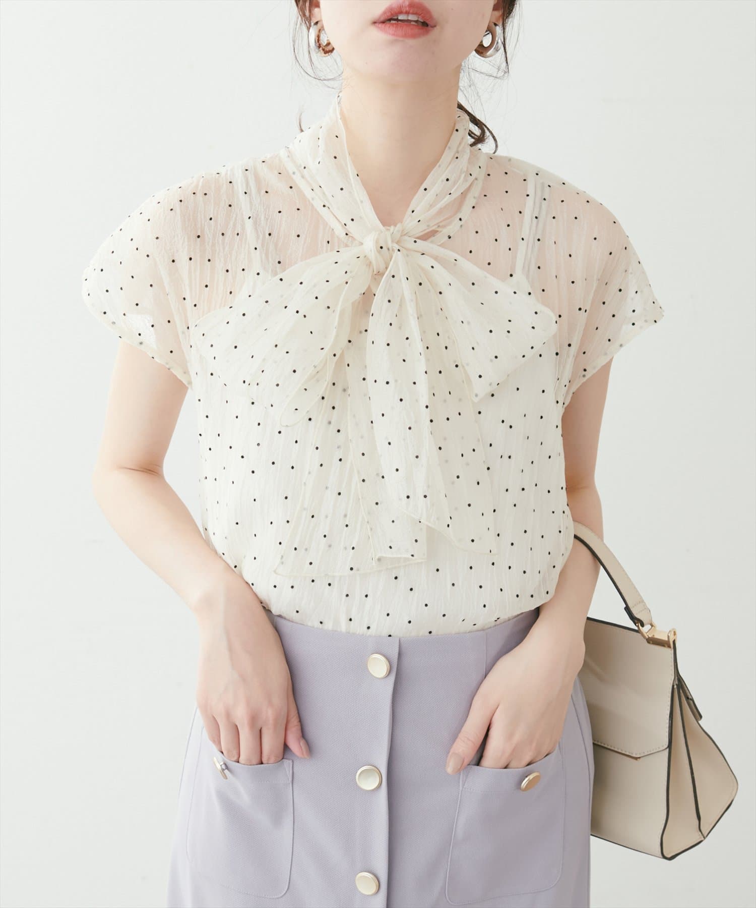 カジュアルなボトムスに合わせても爽やかな上品さと大人スイートな印象に仕上がるアイテムです。