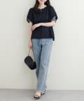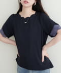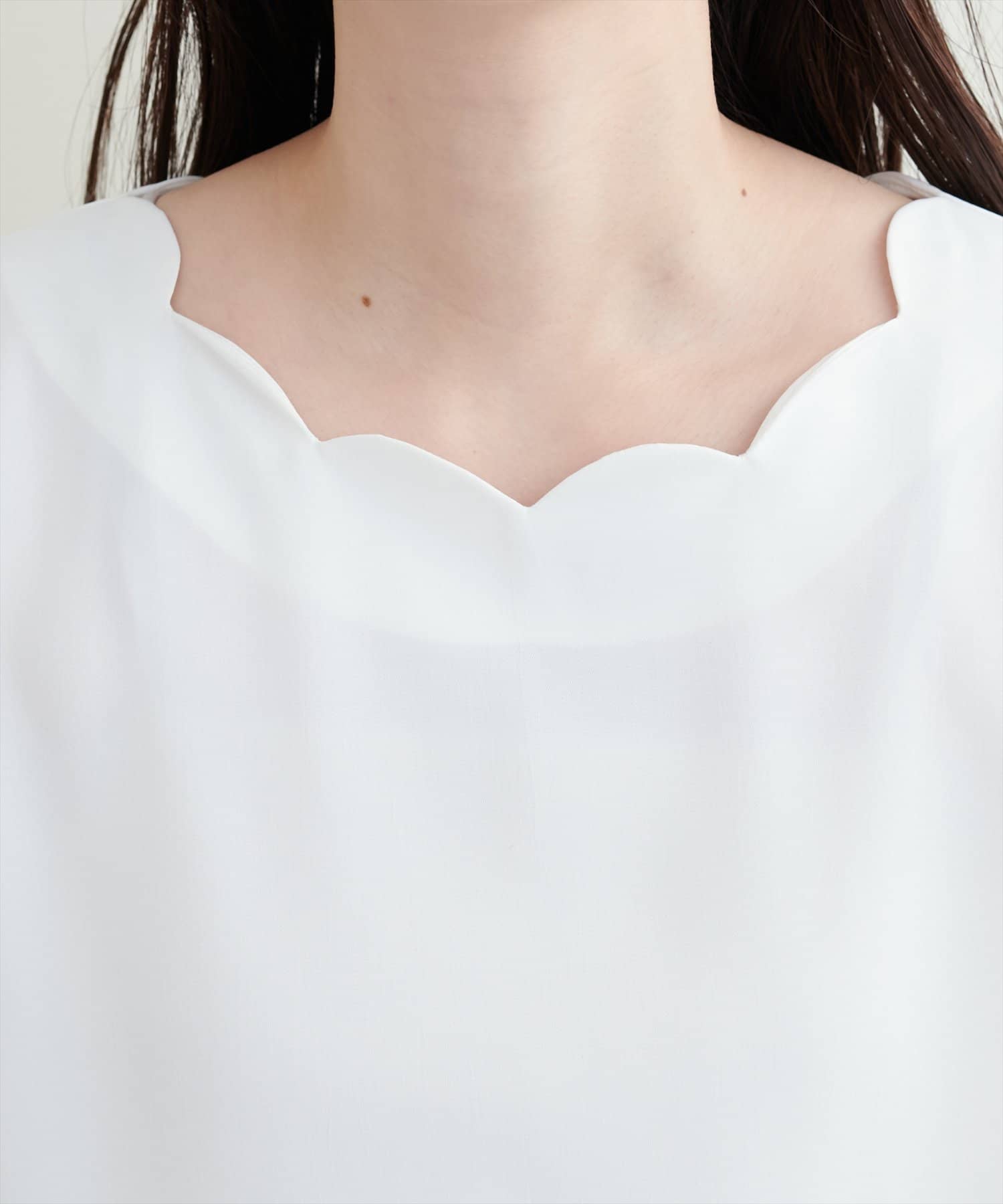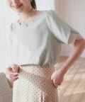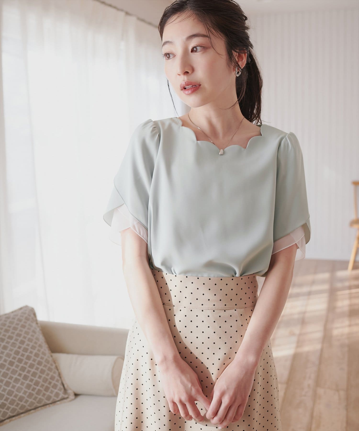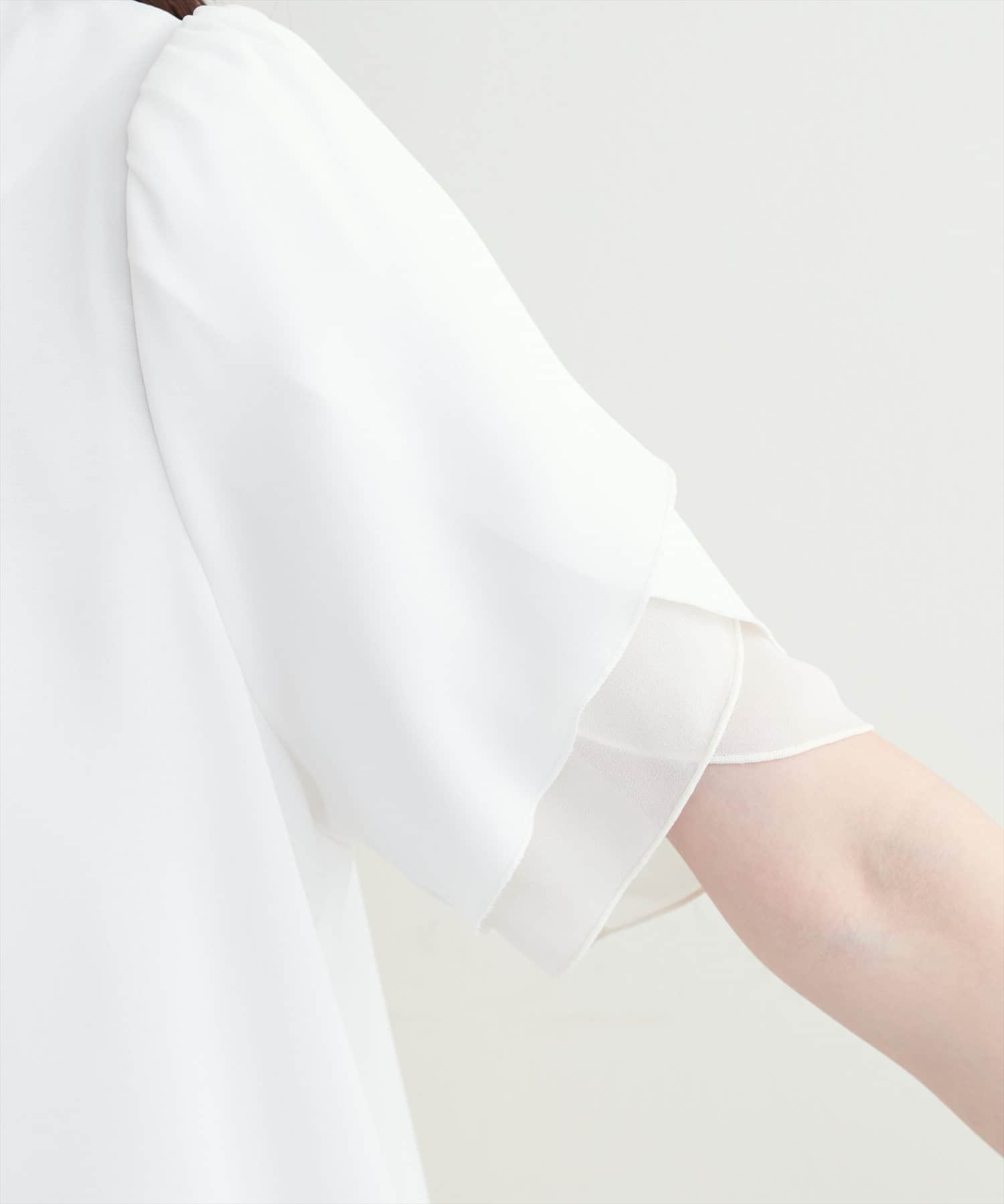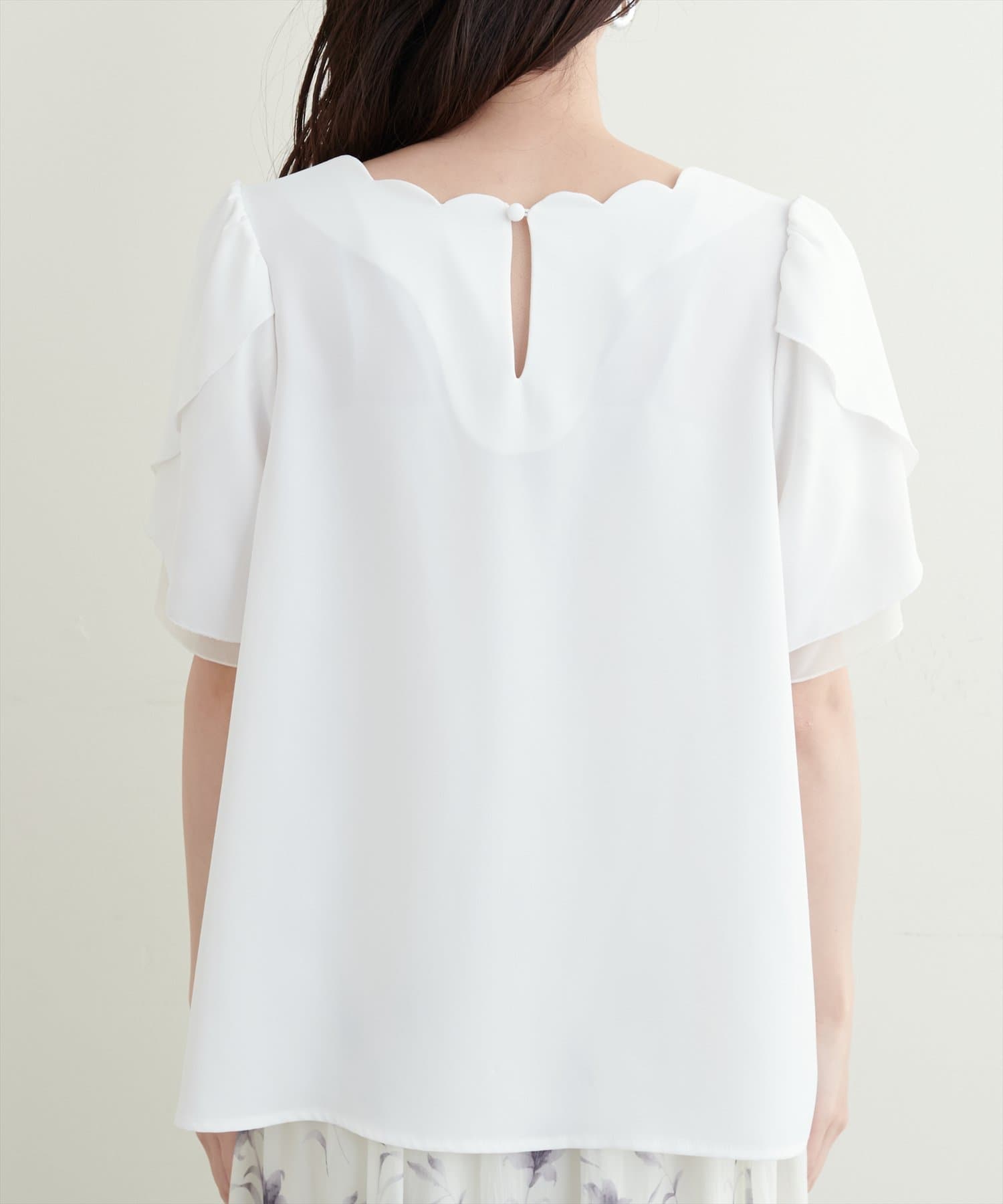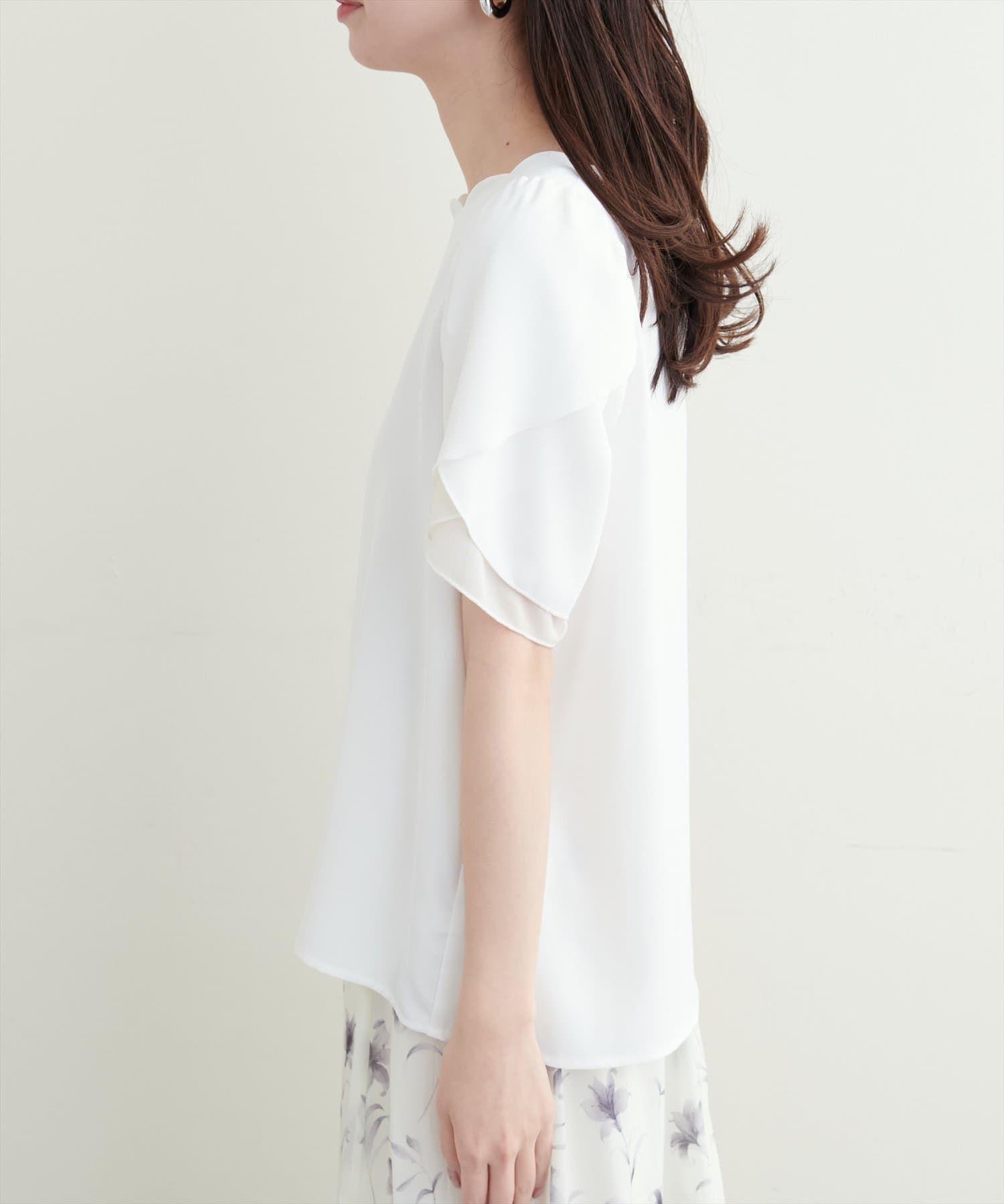 袖にチューリップのようなスリットを施した遊び心のある半袖ブラウス。