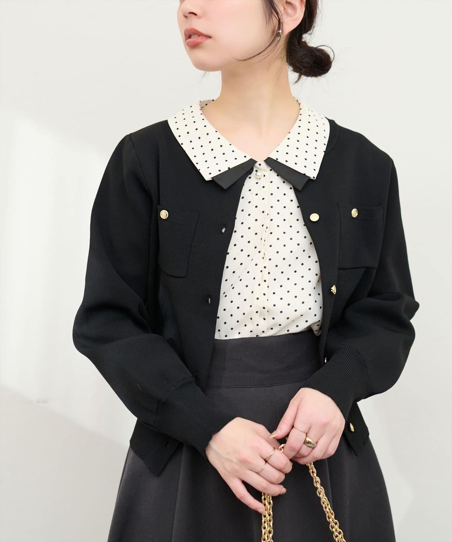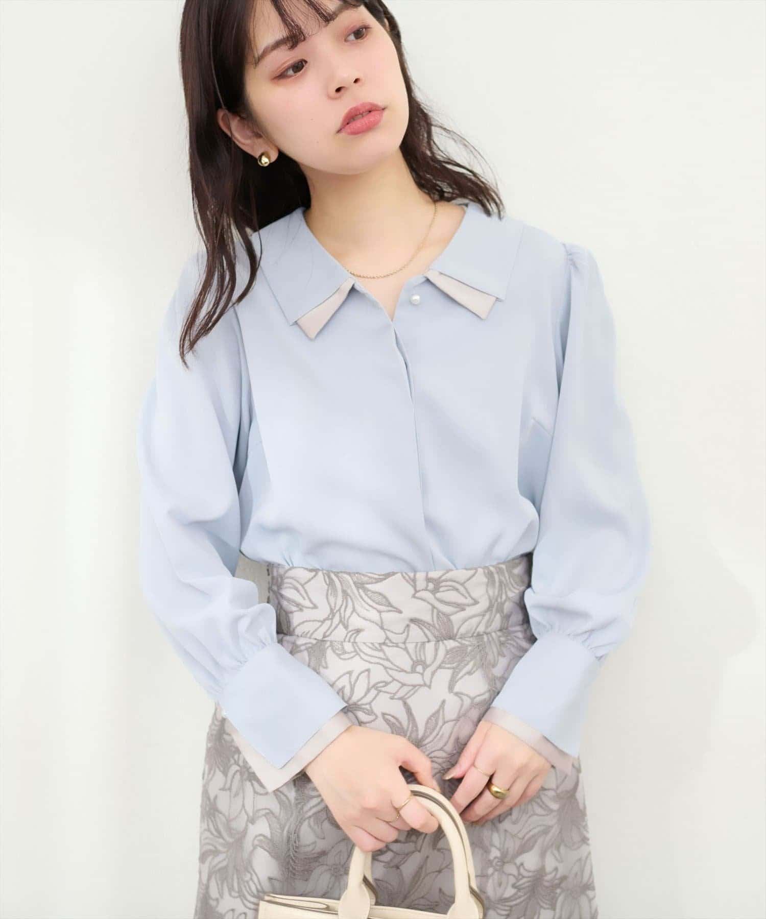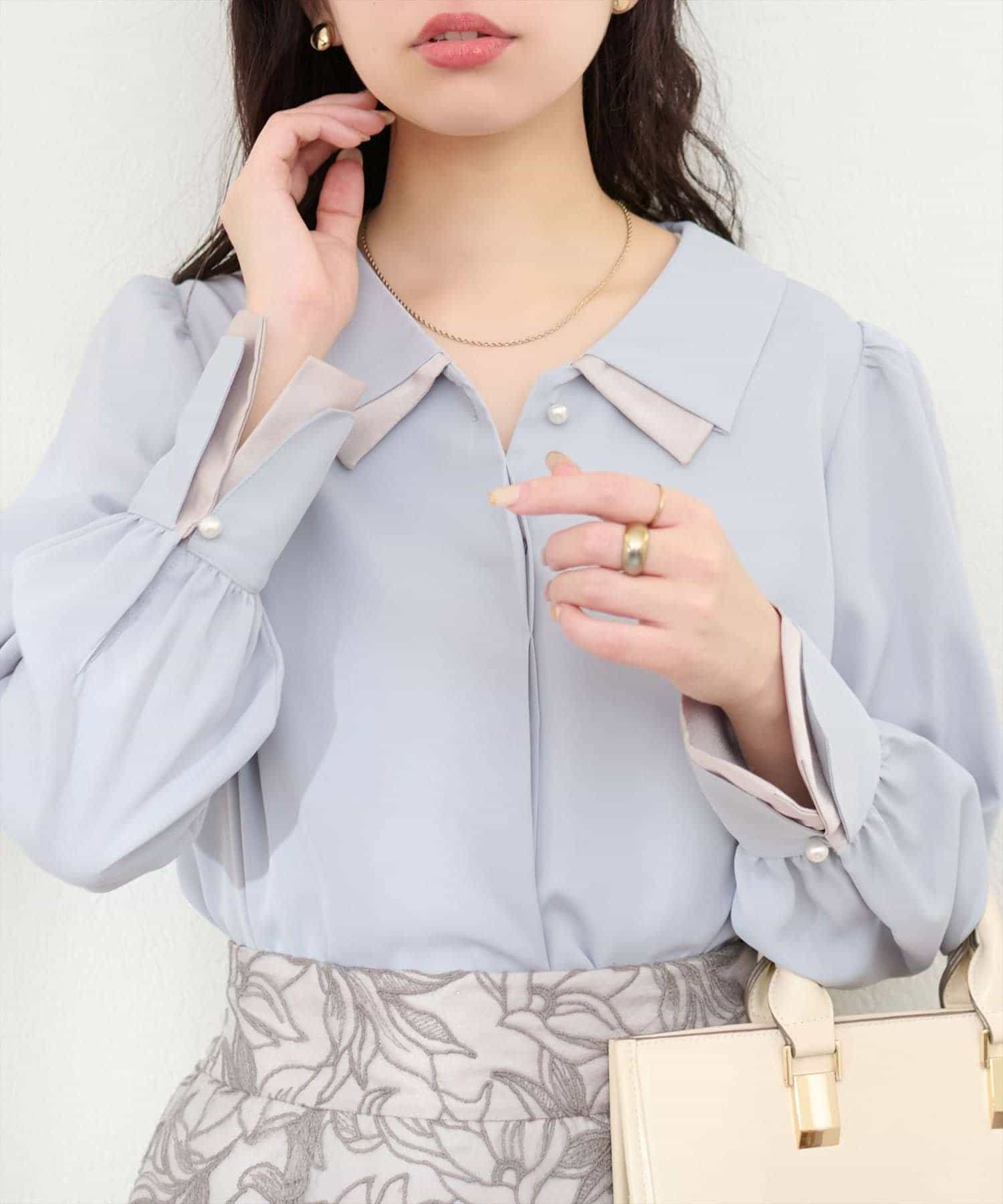 1枚でコーデの主役になること間違いなし!お仕事にも着れる、衿・袖に重なっている