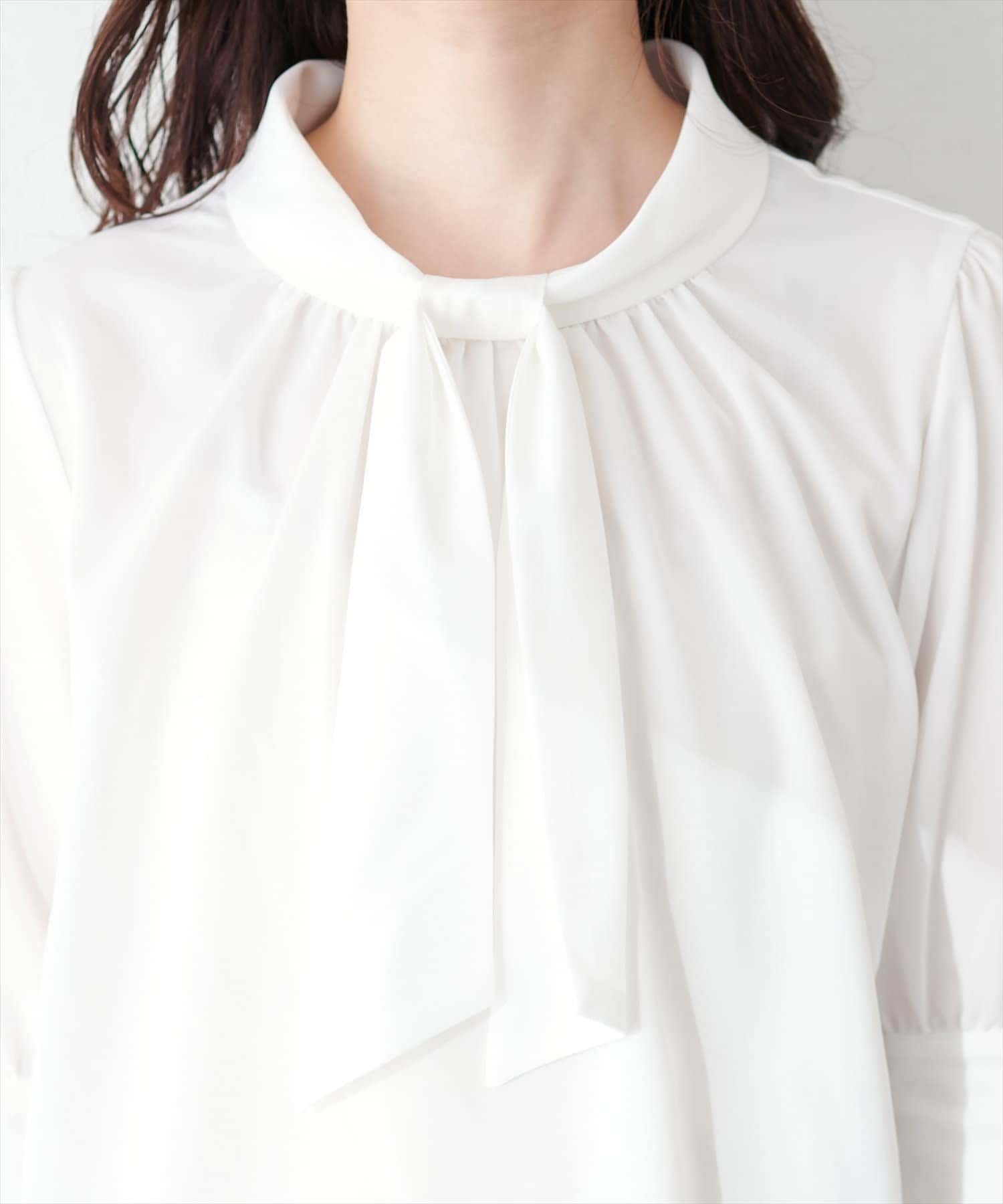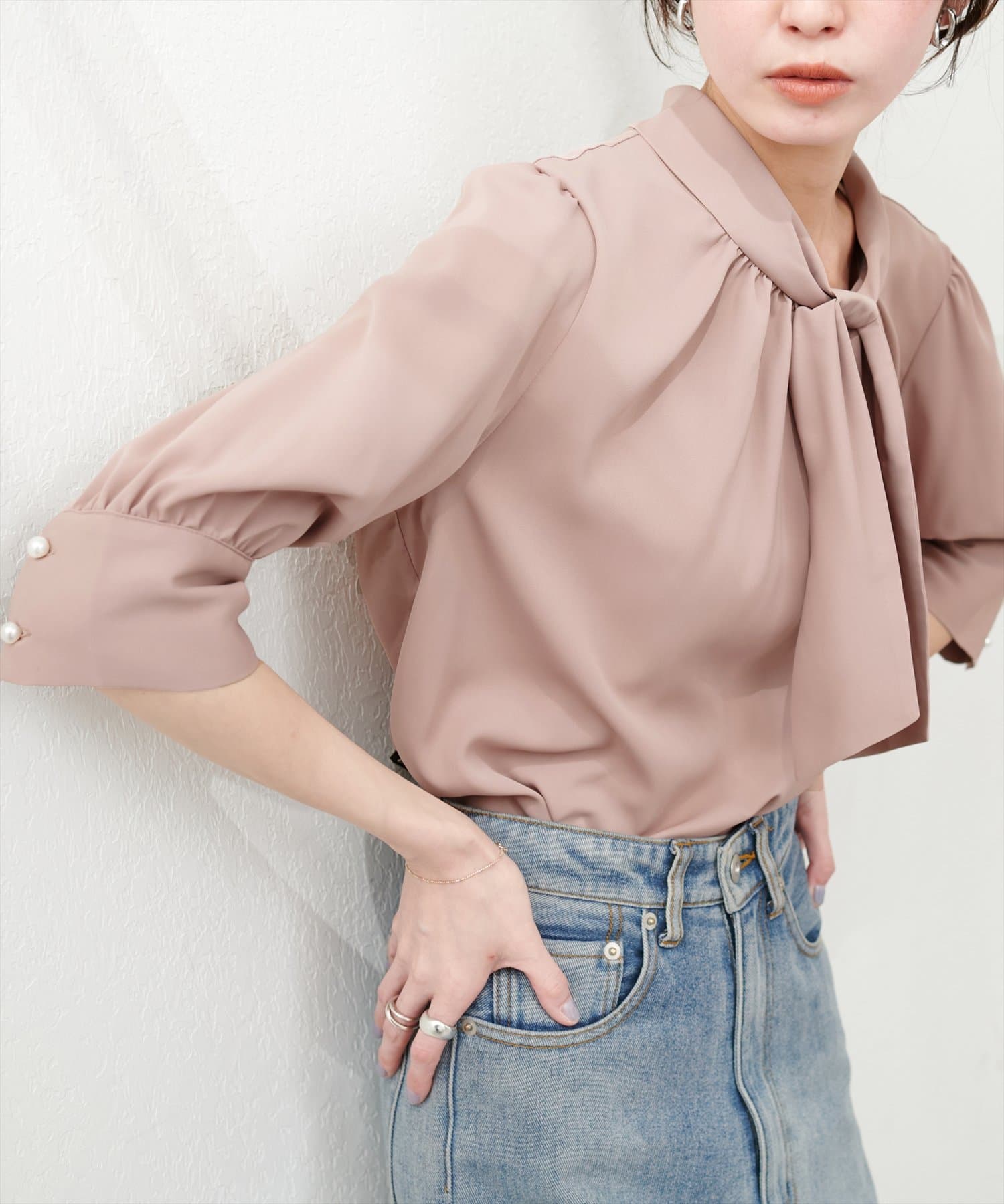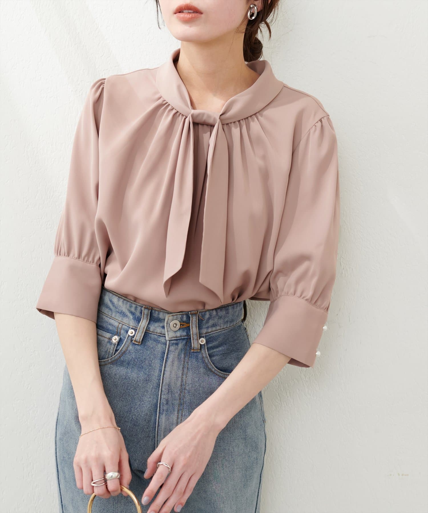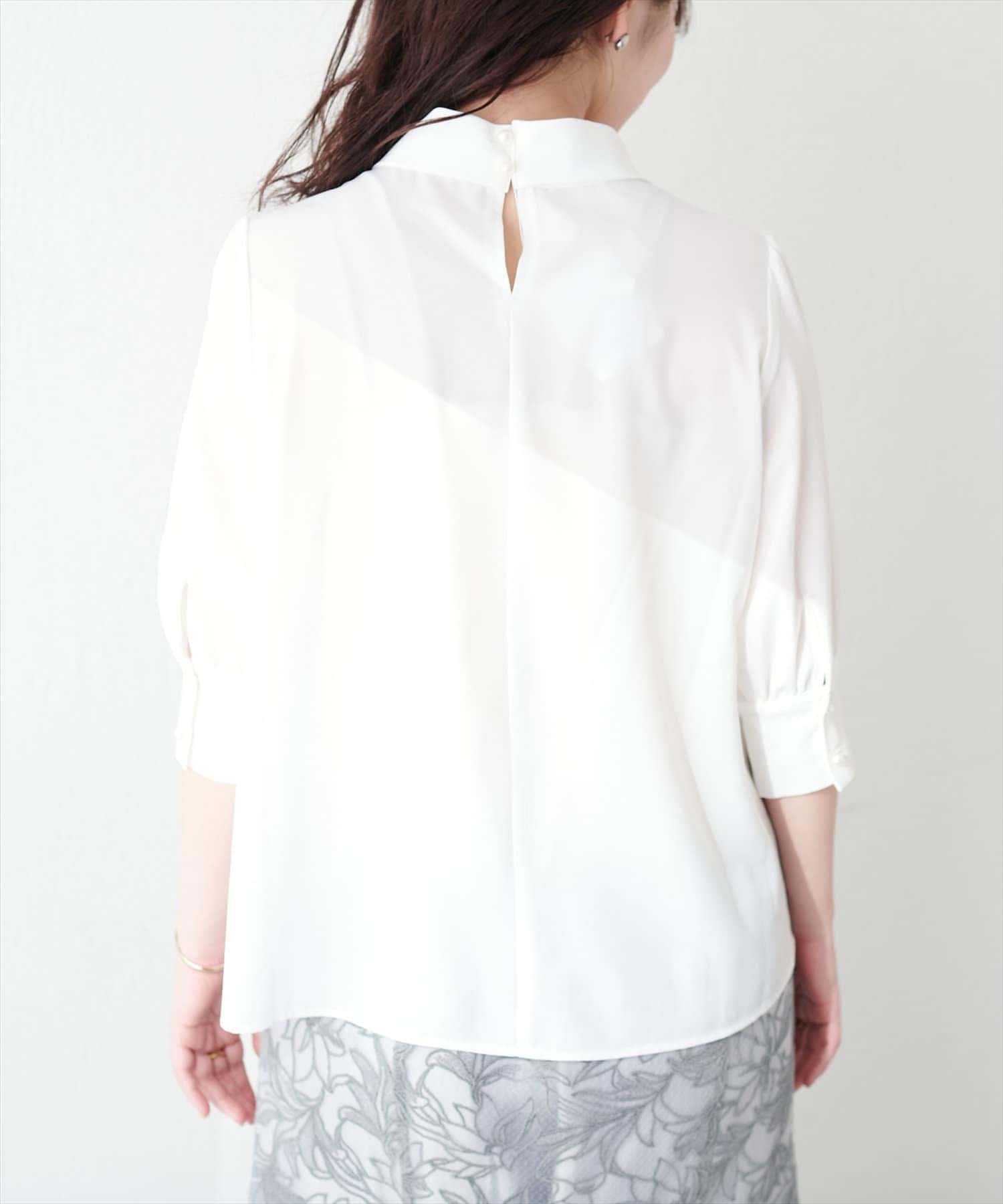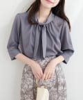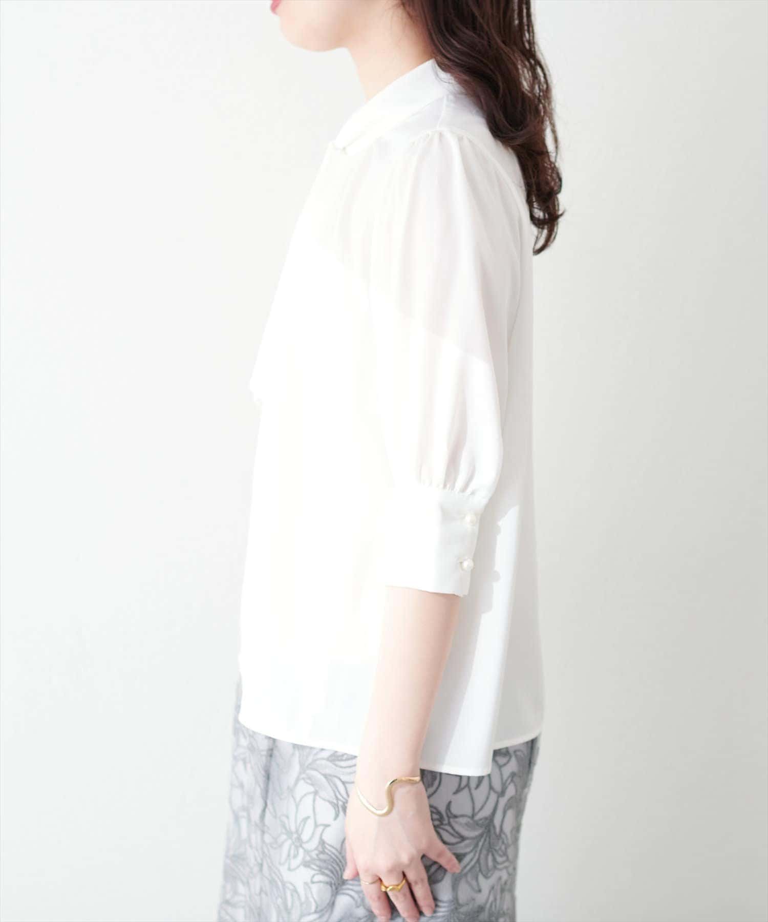袖口パールノット結び6分袖ブラウス