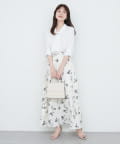 お休みの日は、カラーや柄のボトムスを持ってきて華やかなスタイルに。