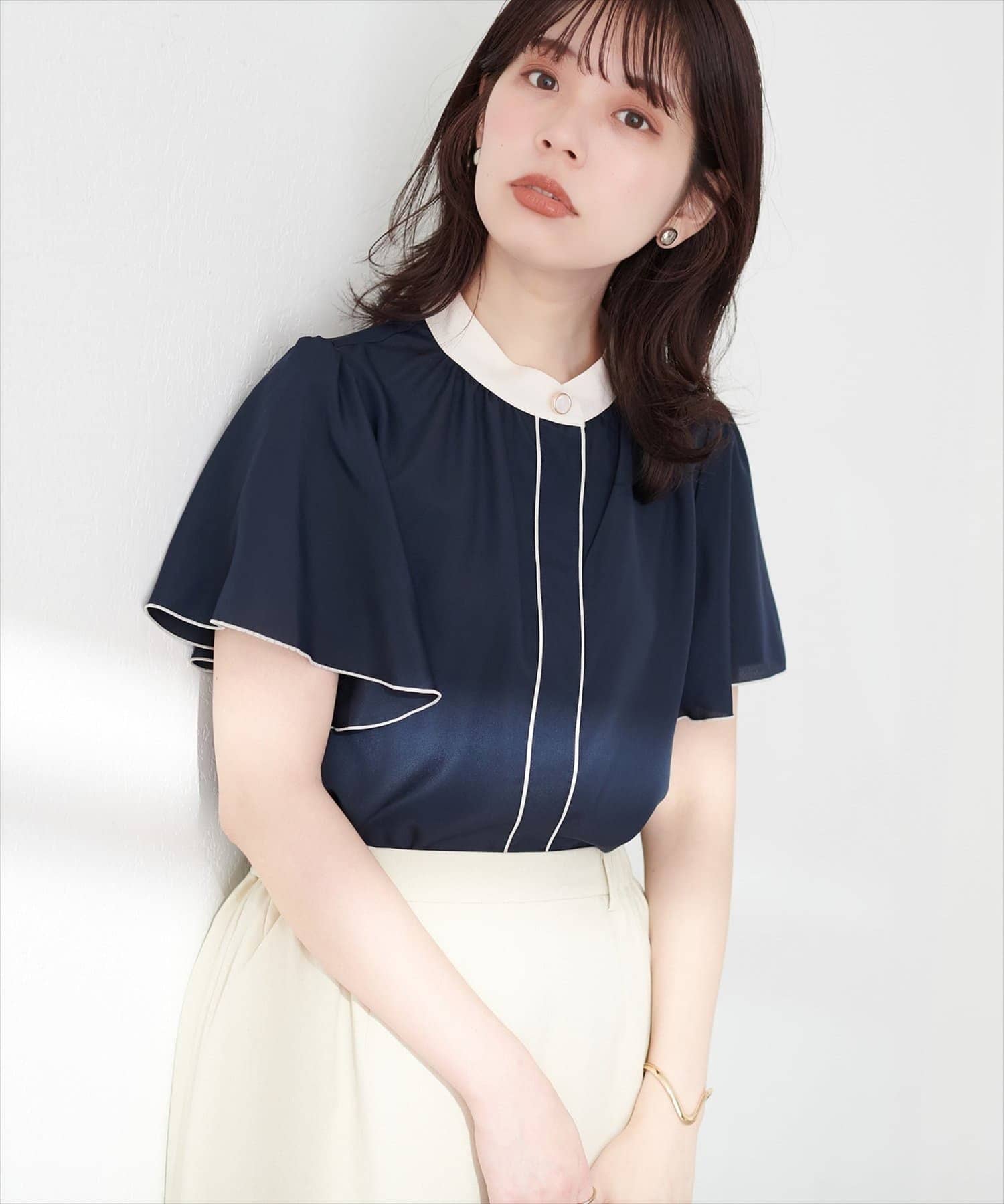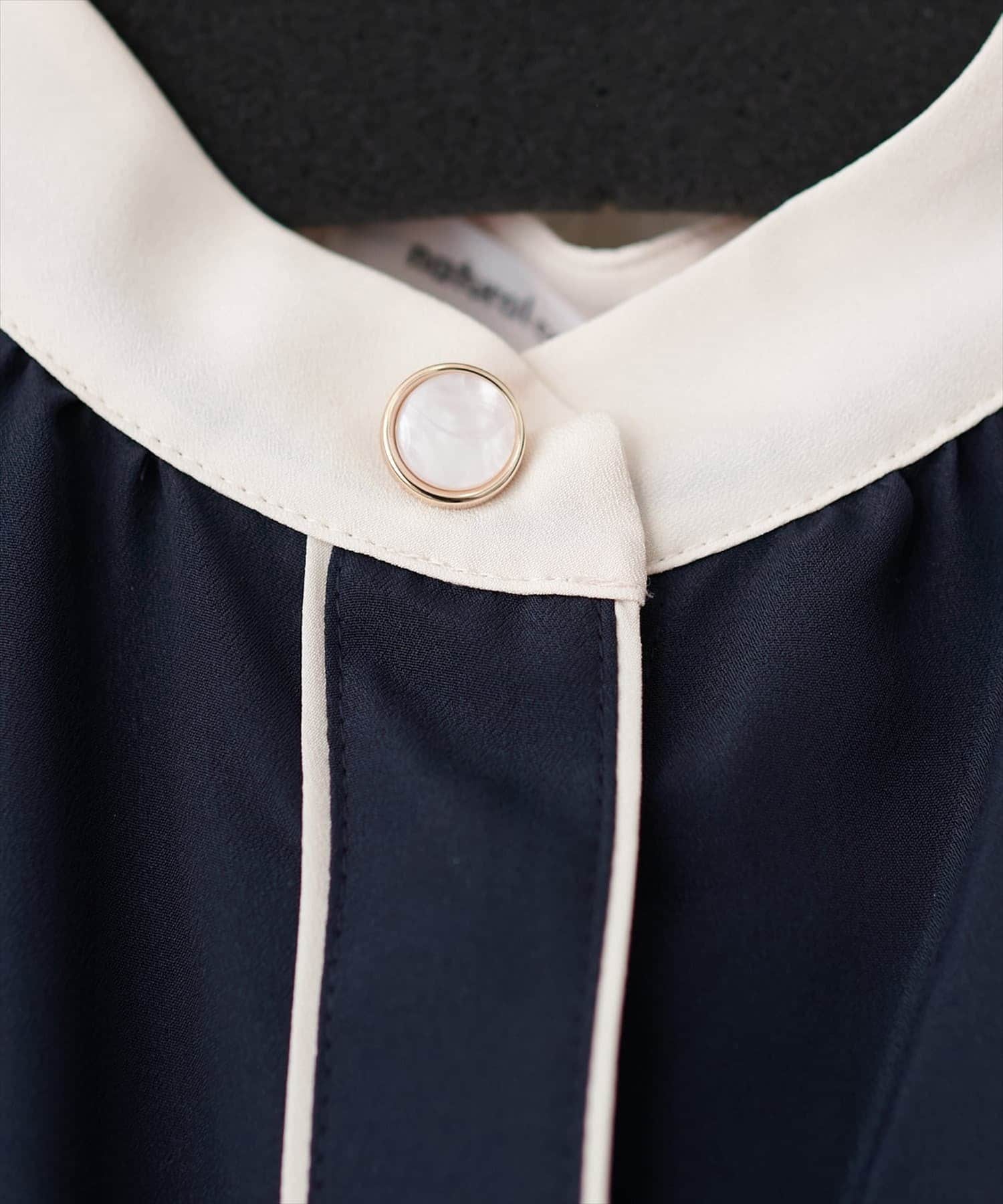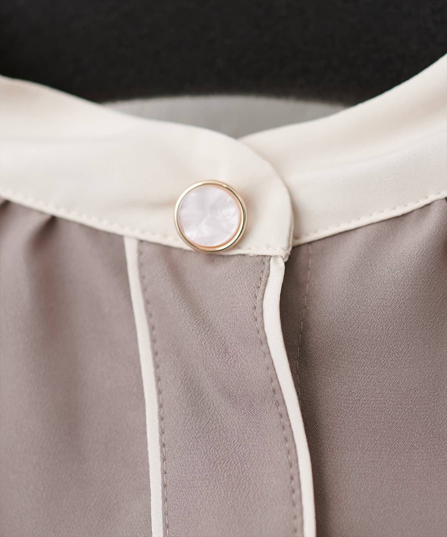 バイカラーと上品な釦使いが目を惹くキレイめブラウス