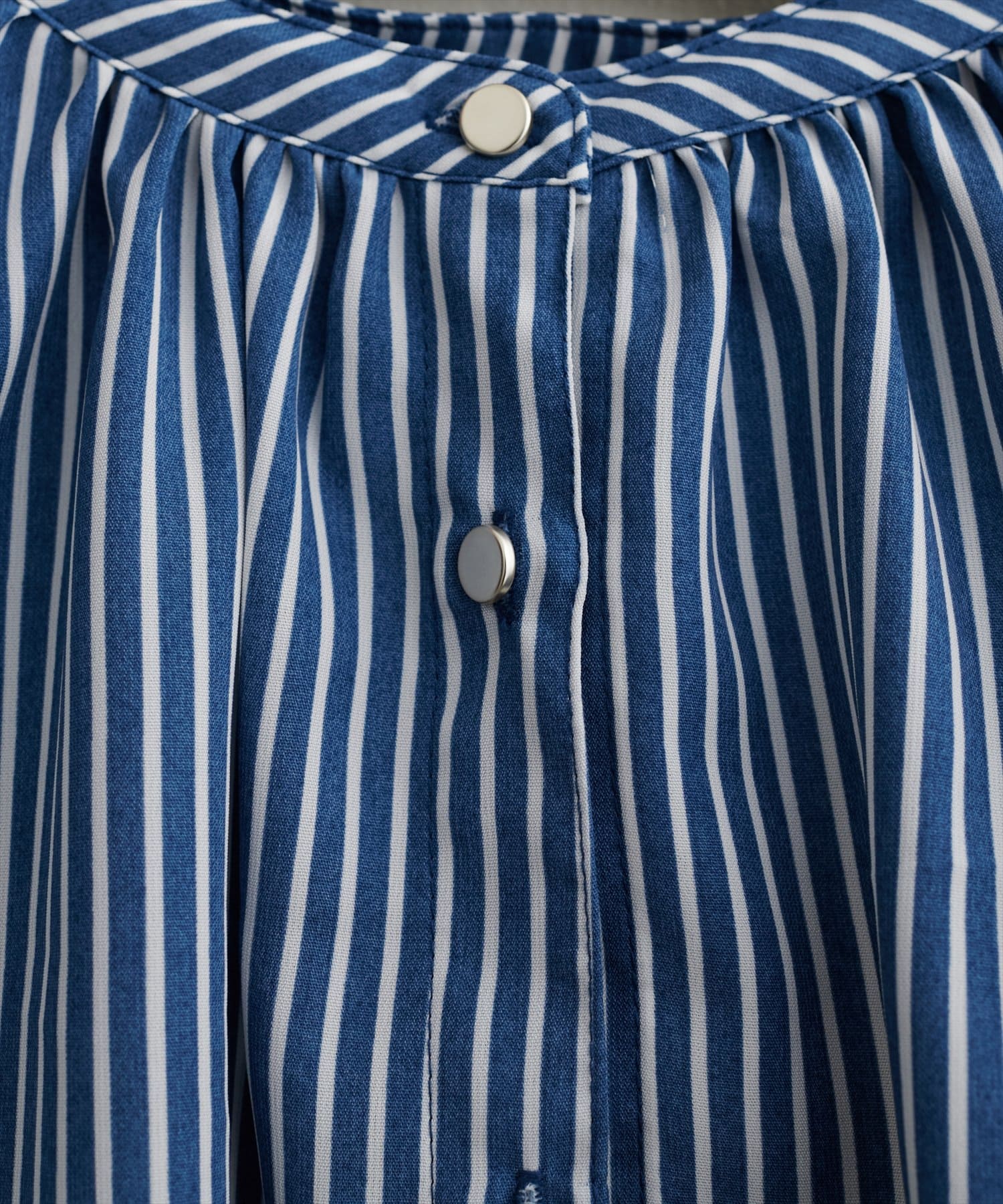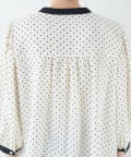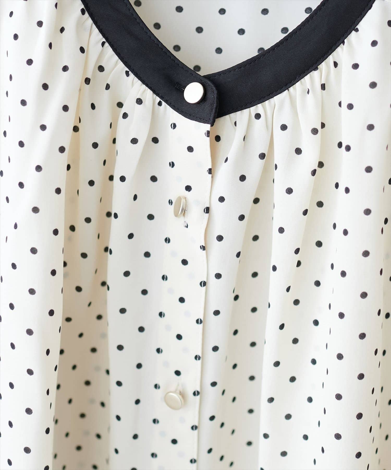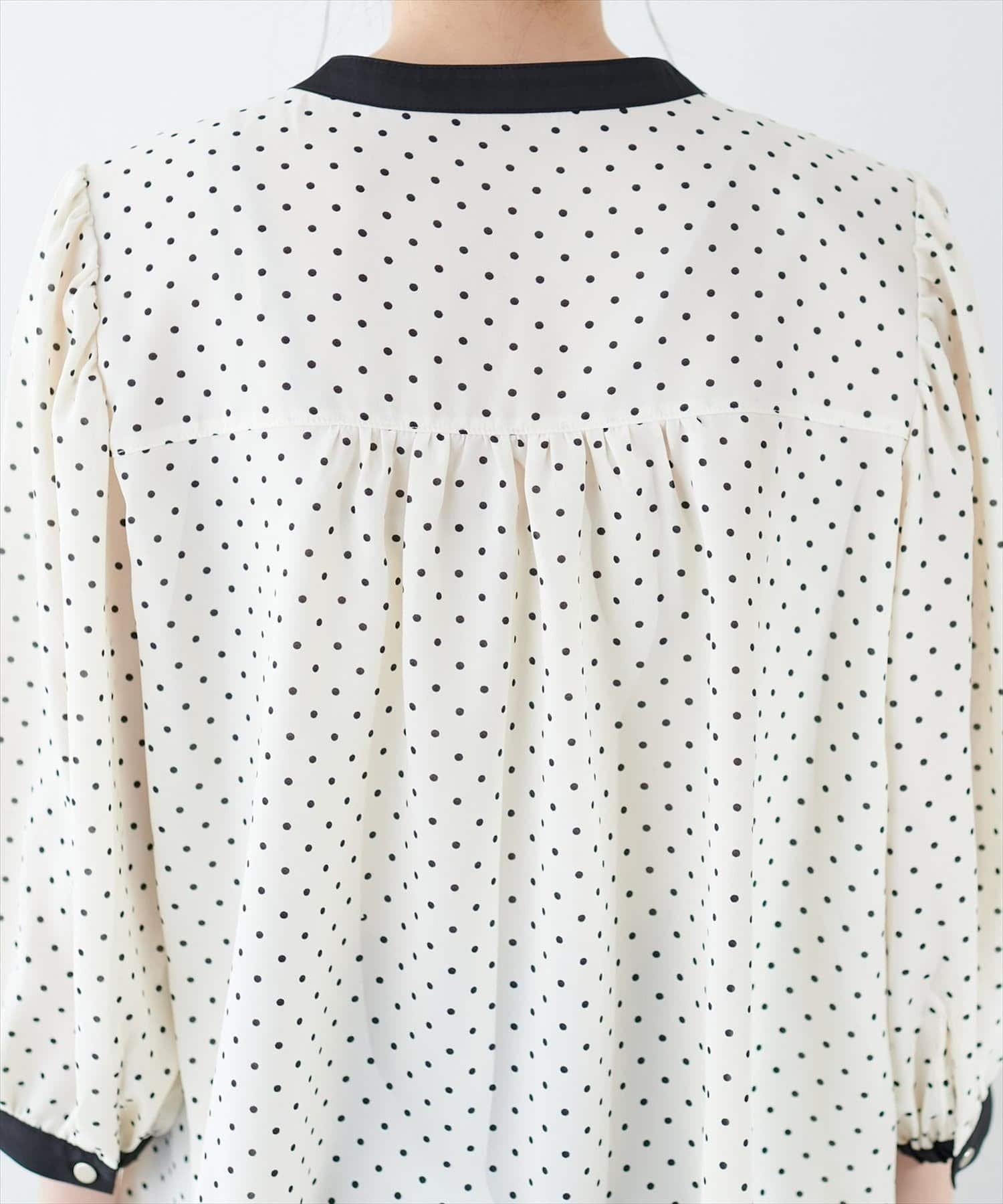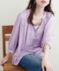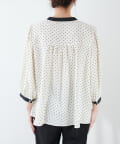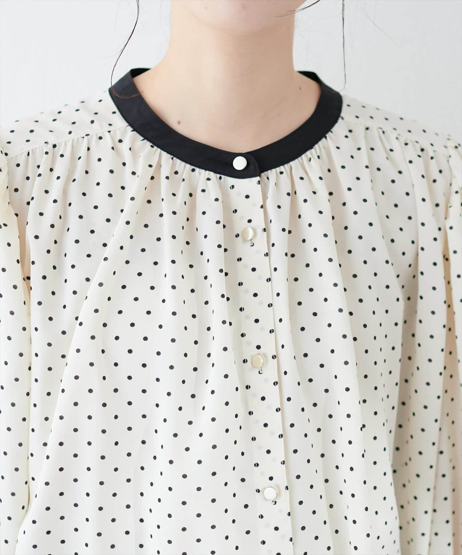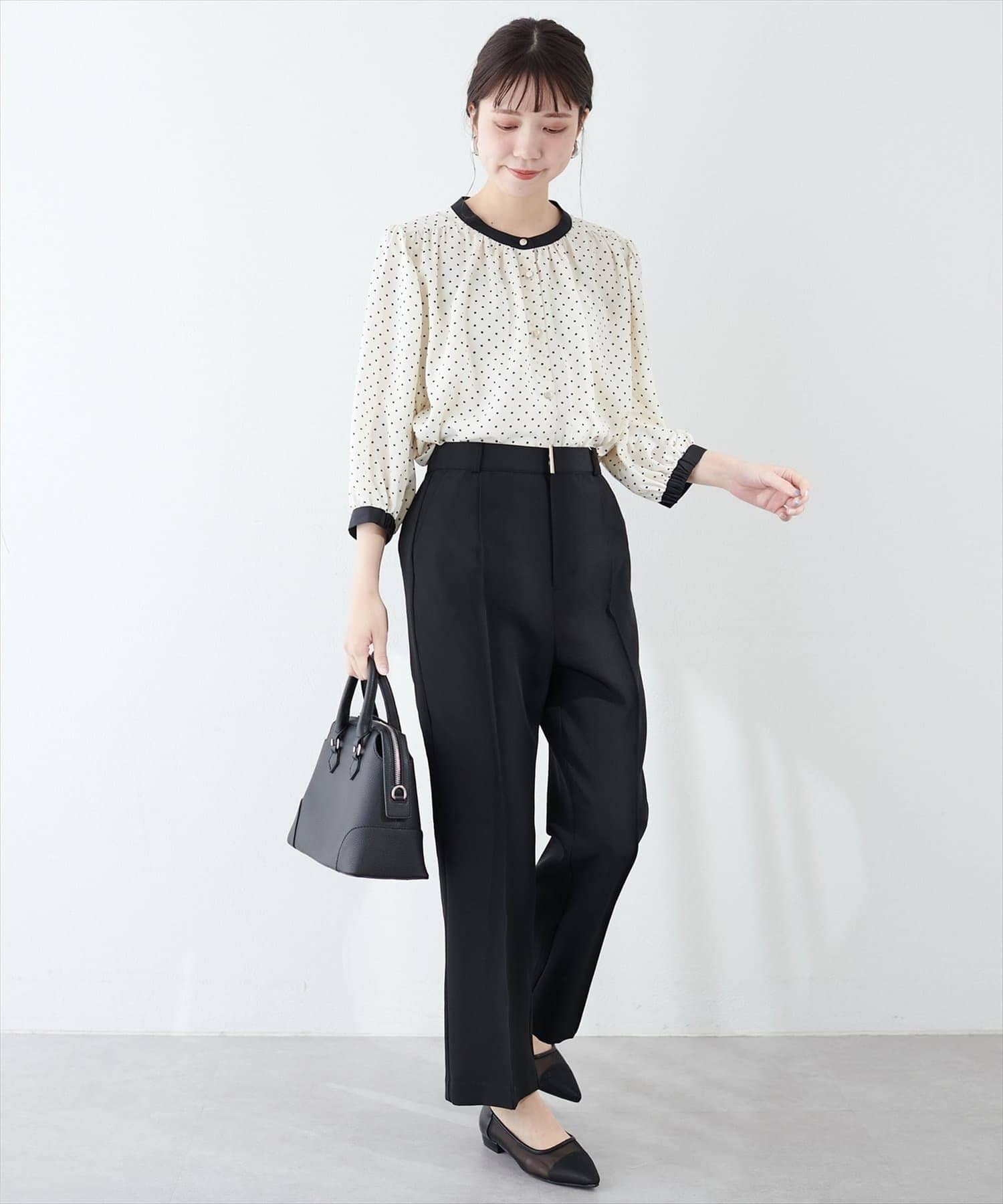 落ち感のあるとろみ素材と、たっぷりと施したギャザーが魅力の7分袖ブラウス。