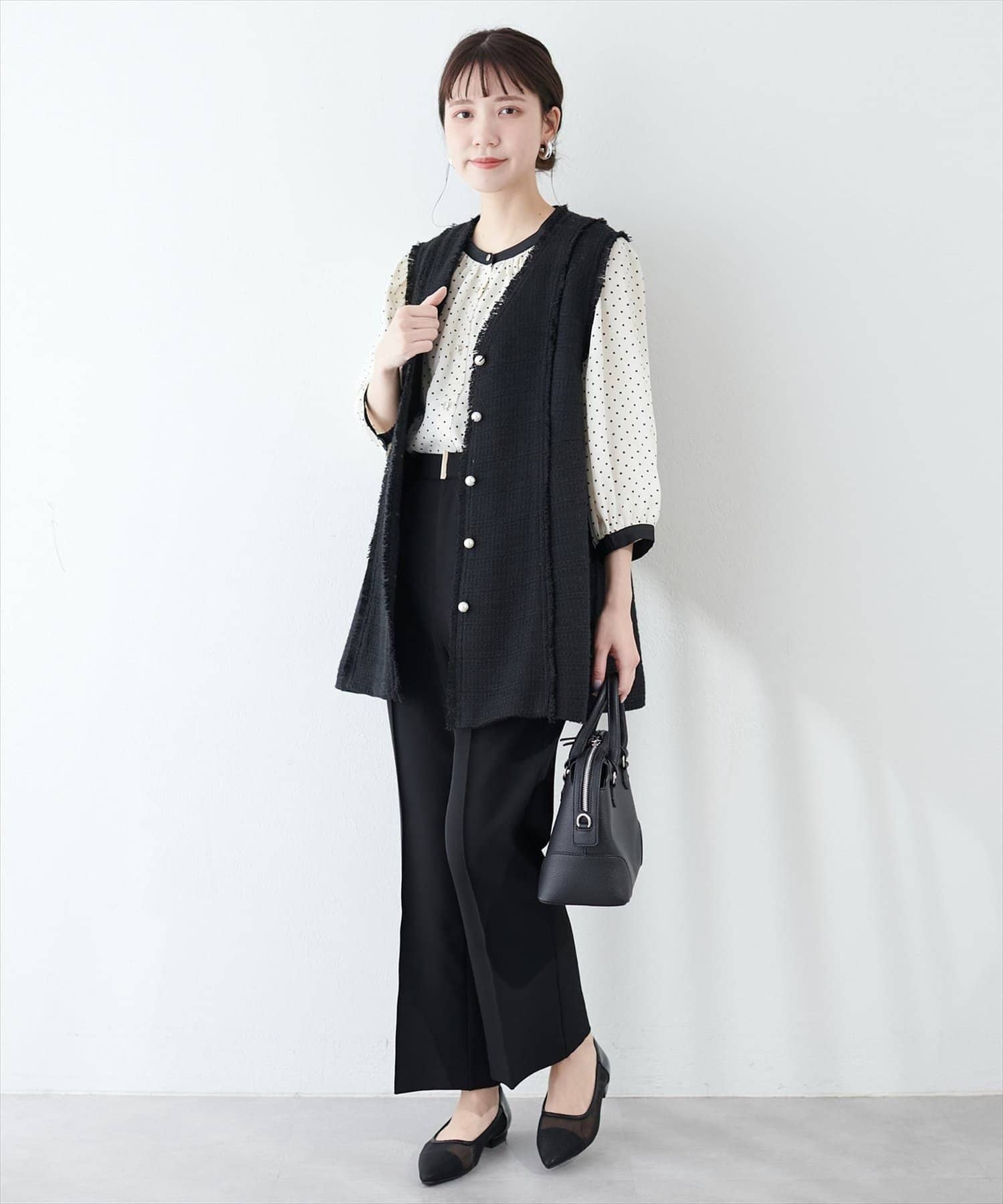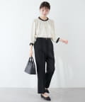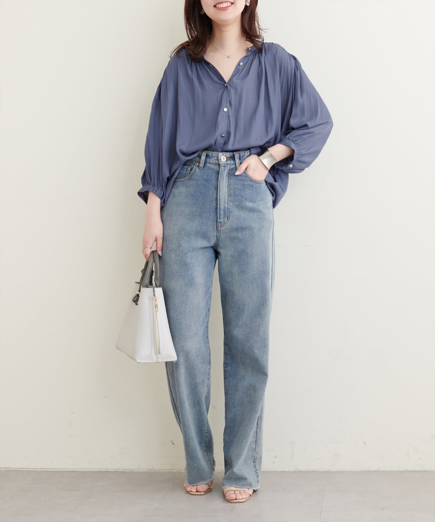 大人レディな印象のスタイリングに仕上げるのはもちろん、デニムにさらっとウエストアウトで合わせて、足元にパンプスを持ってきてもきまります。