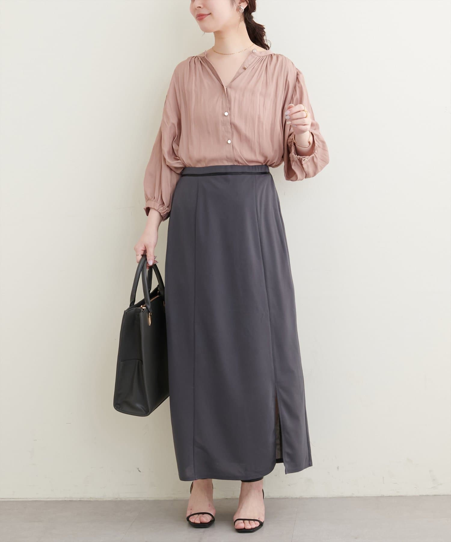 マーメイドシルエットやフレアライン、Iラインのスカートにウエストインして、
