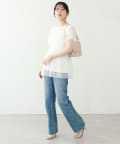 ふんわりとボリュームのあるチュニックなので、ボトムはナロースカートなど落ち感のあるアイテムがおすすめ。