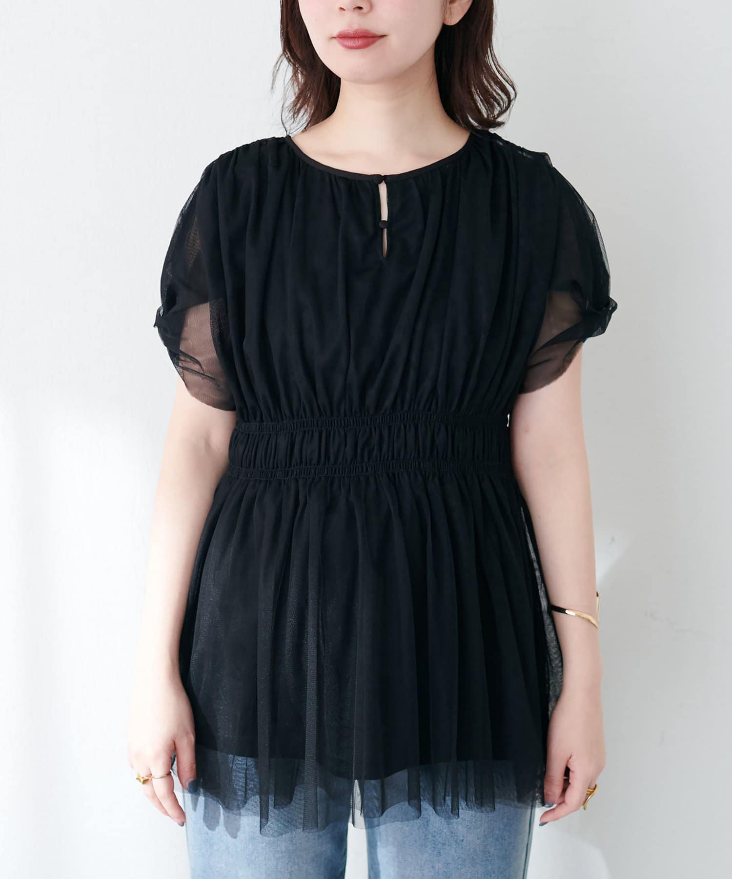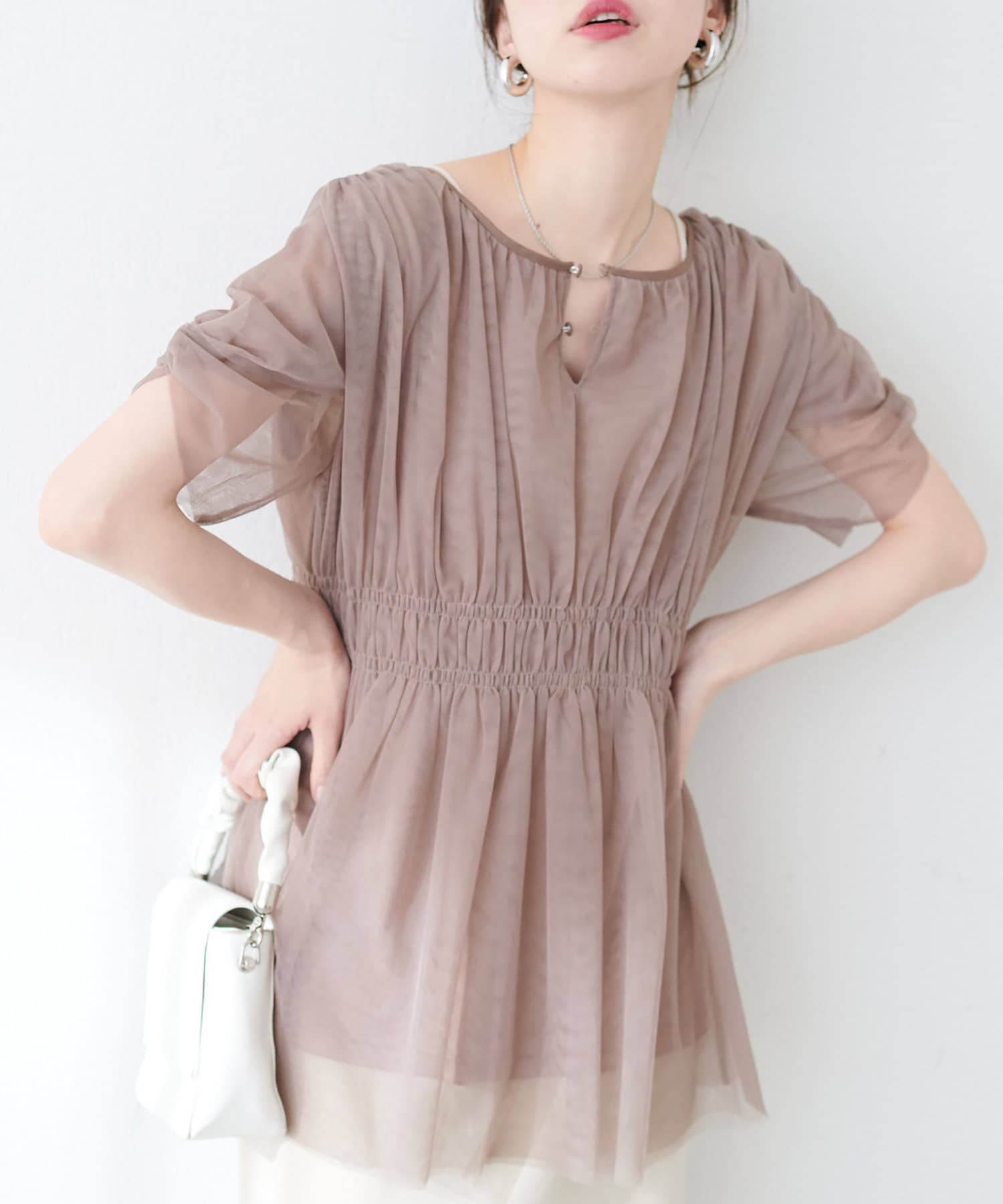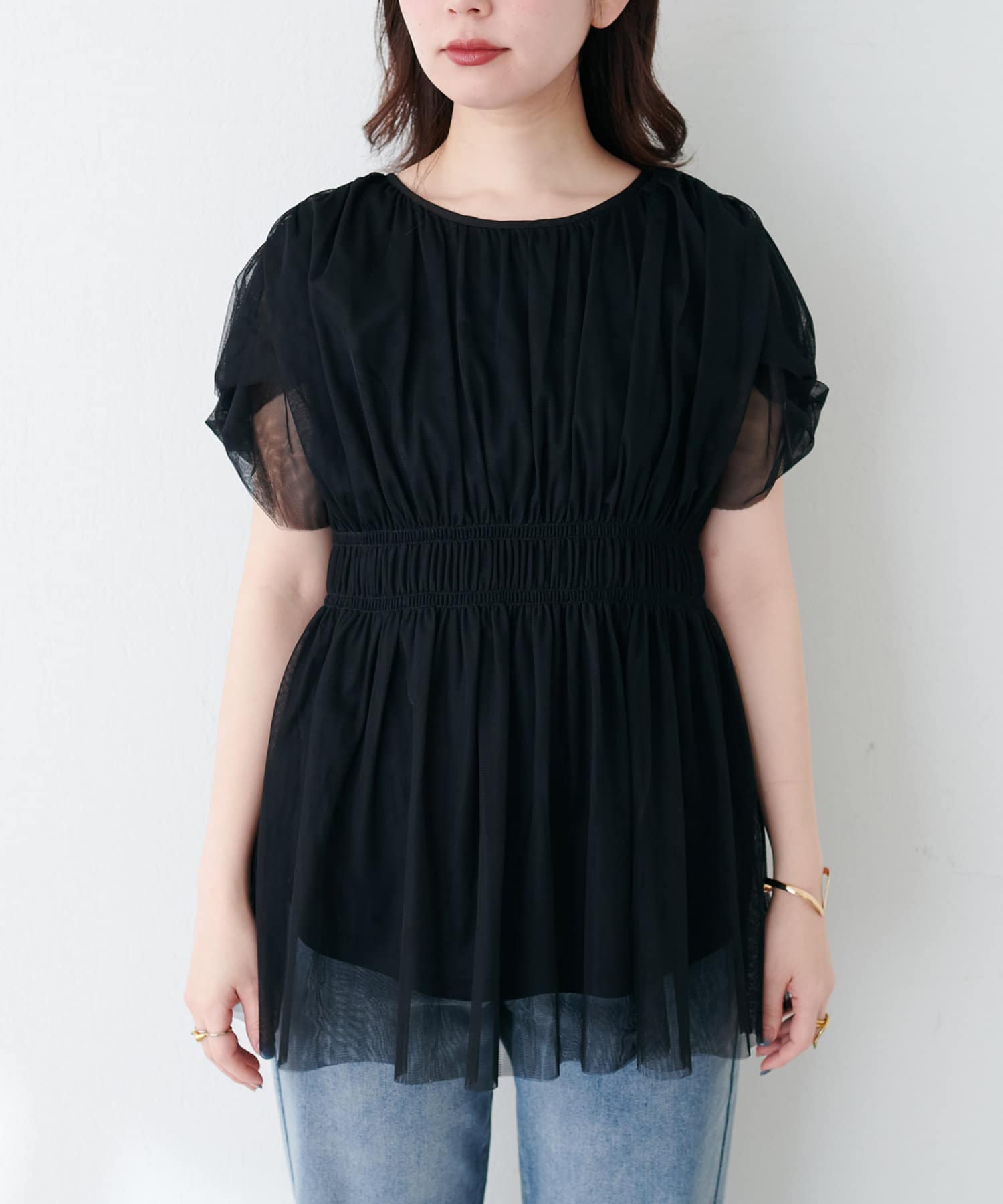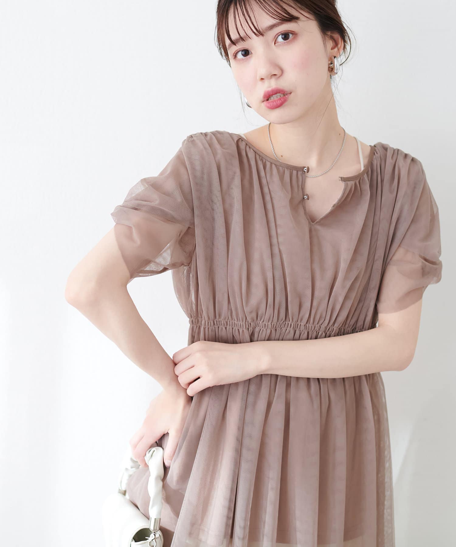 トレンドのチュールを使いつつ、甘すぎず大人が着やすいアイテムに仕上げました。