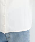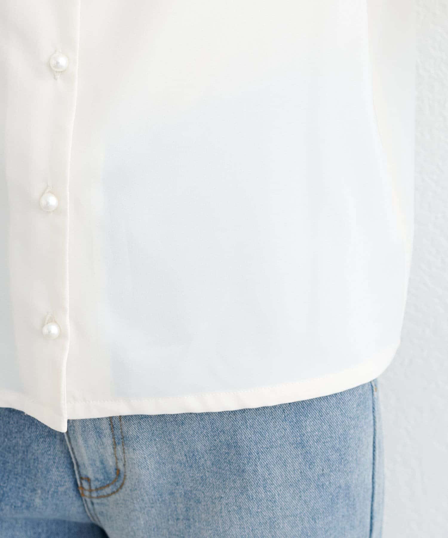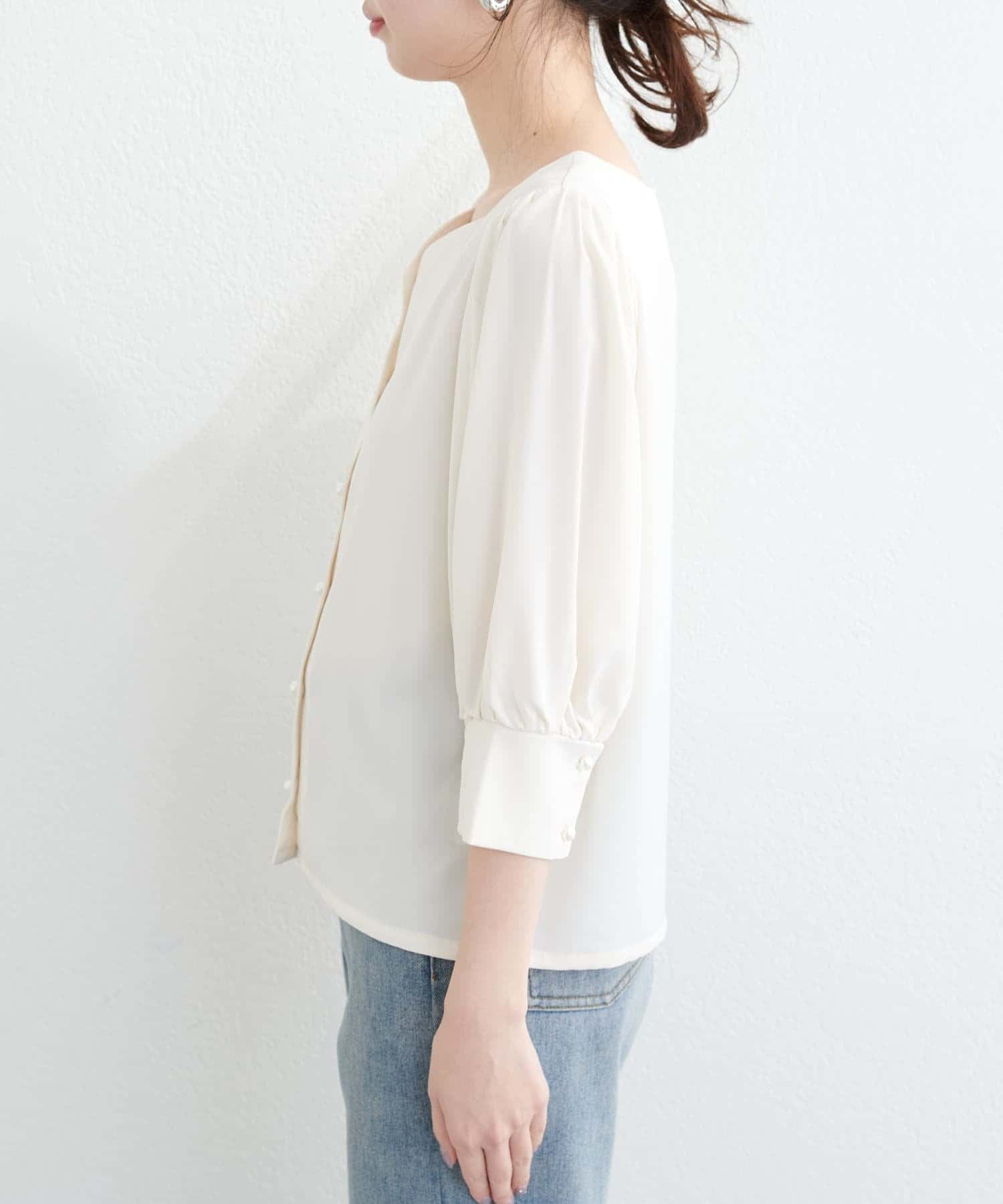 ハートネック、パフスリーブ、パールボタンと盛りだくさんなフェミニンブラウス。