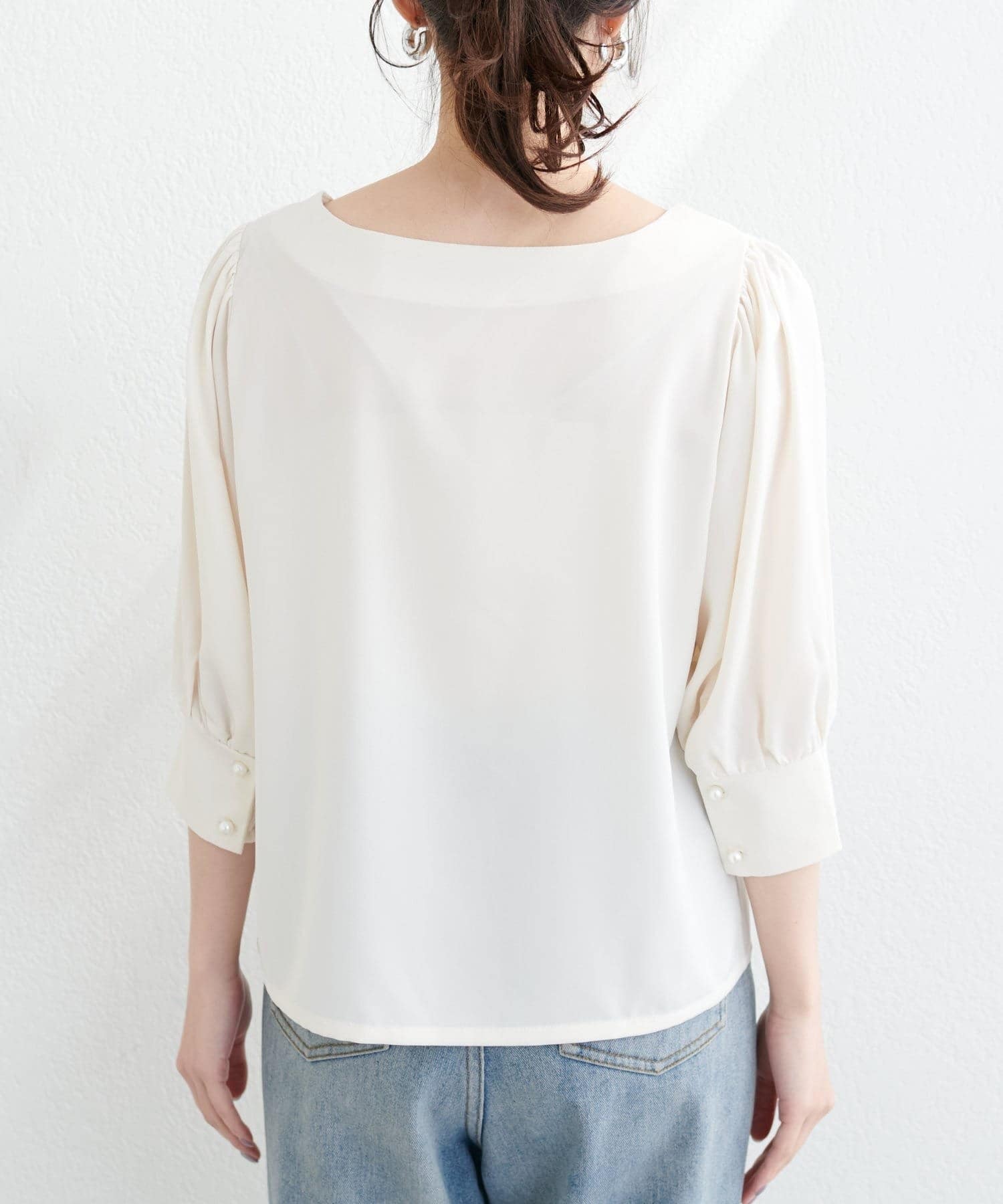 やや長めのパフスリーブで華奢な印象に。