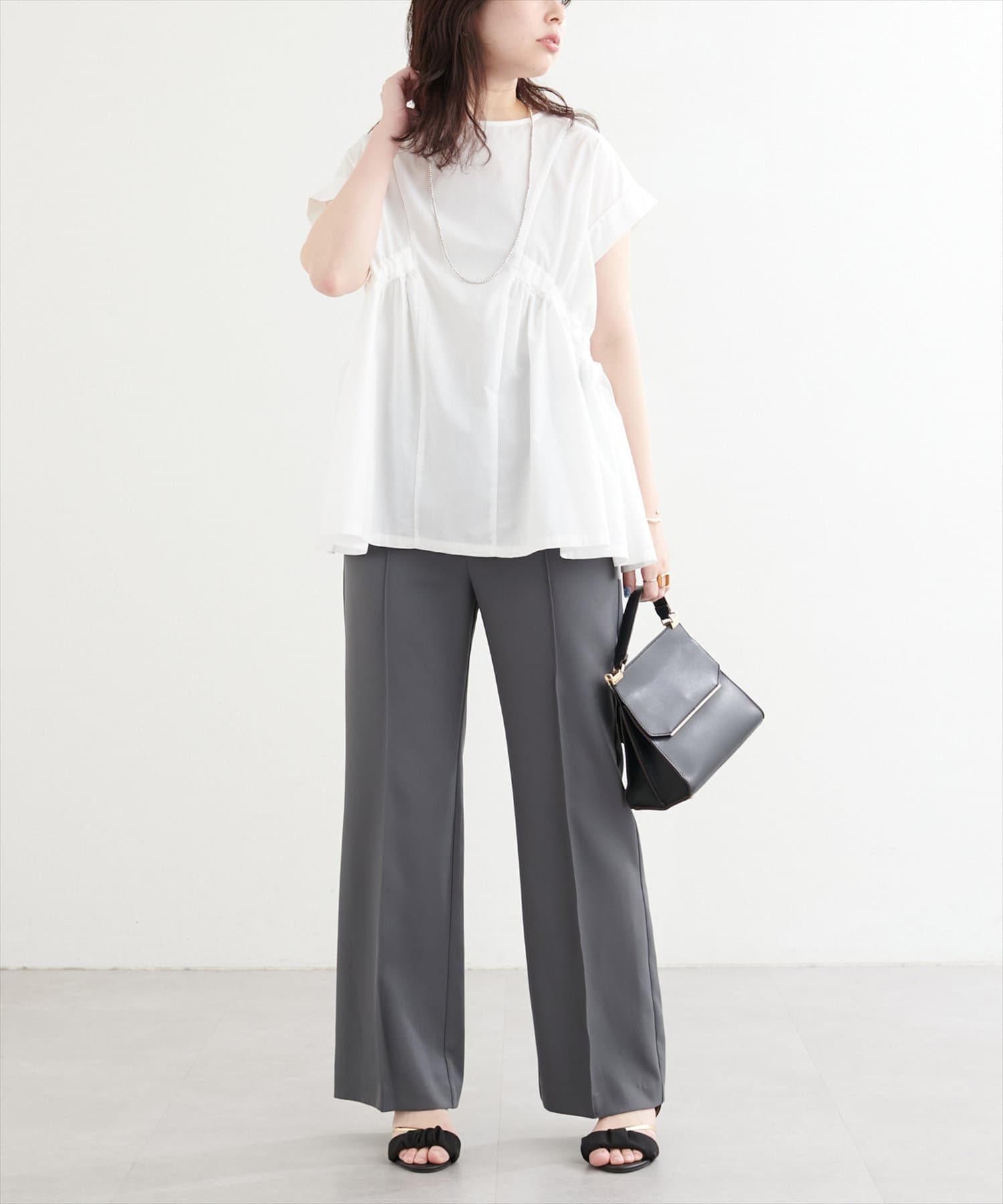 程よくゆとりのあるシルエットは、体型カバーにも効果的で、着心地の良さも抜群です。