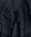前立てや衿あきにラッフルレースを施した、フェミニンなデザインがポイントです。