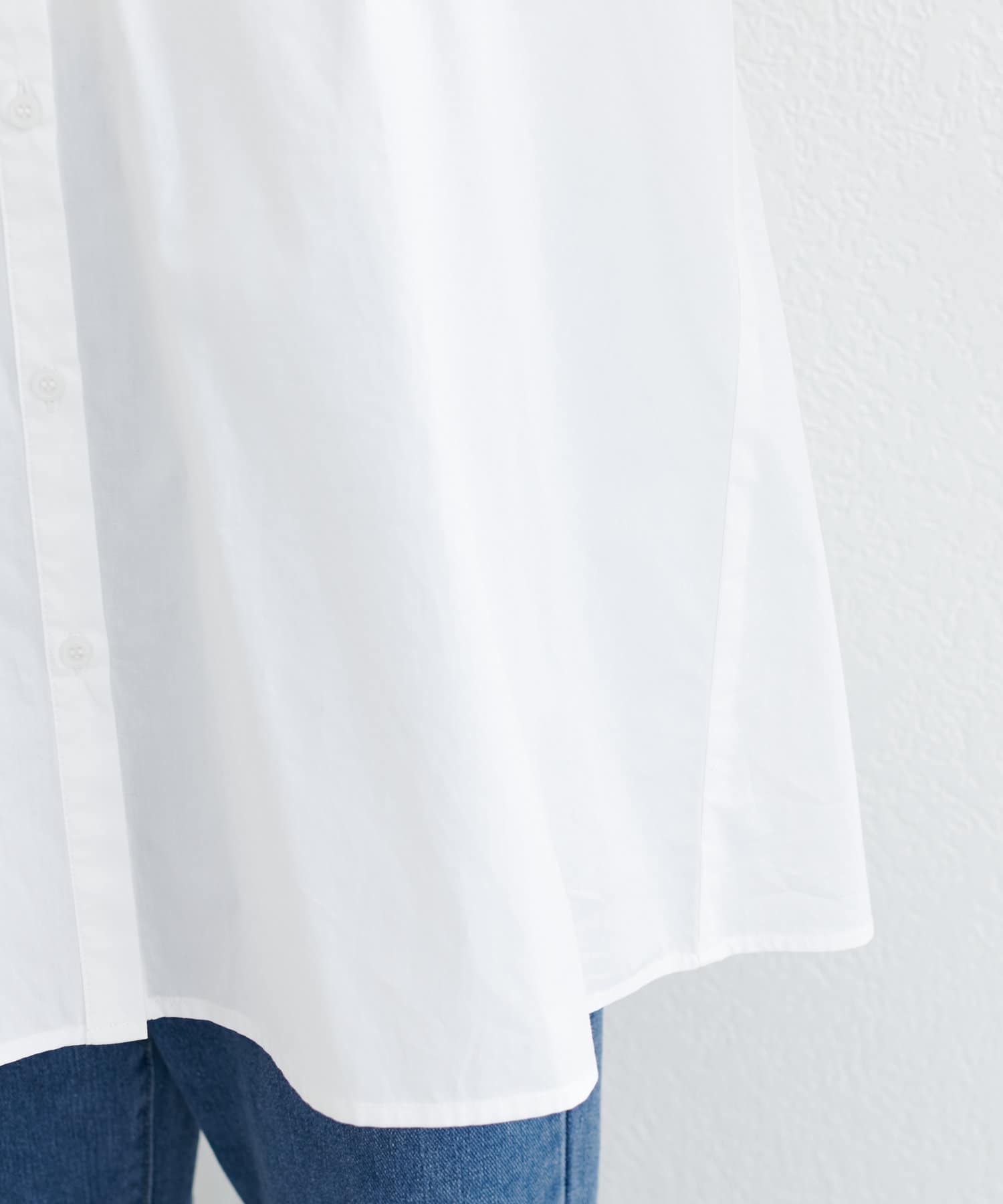 腰回りをカバーしてくれるチュニック丈なので、ミニボトムとの相性も抜群です。