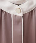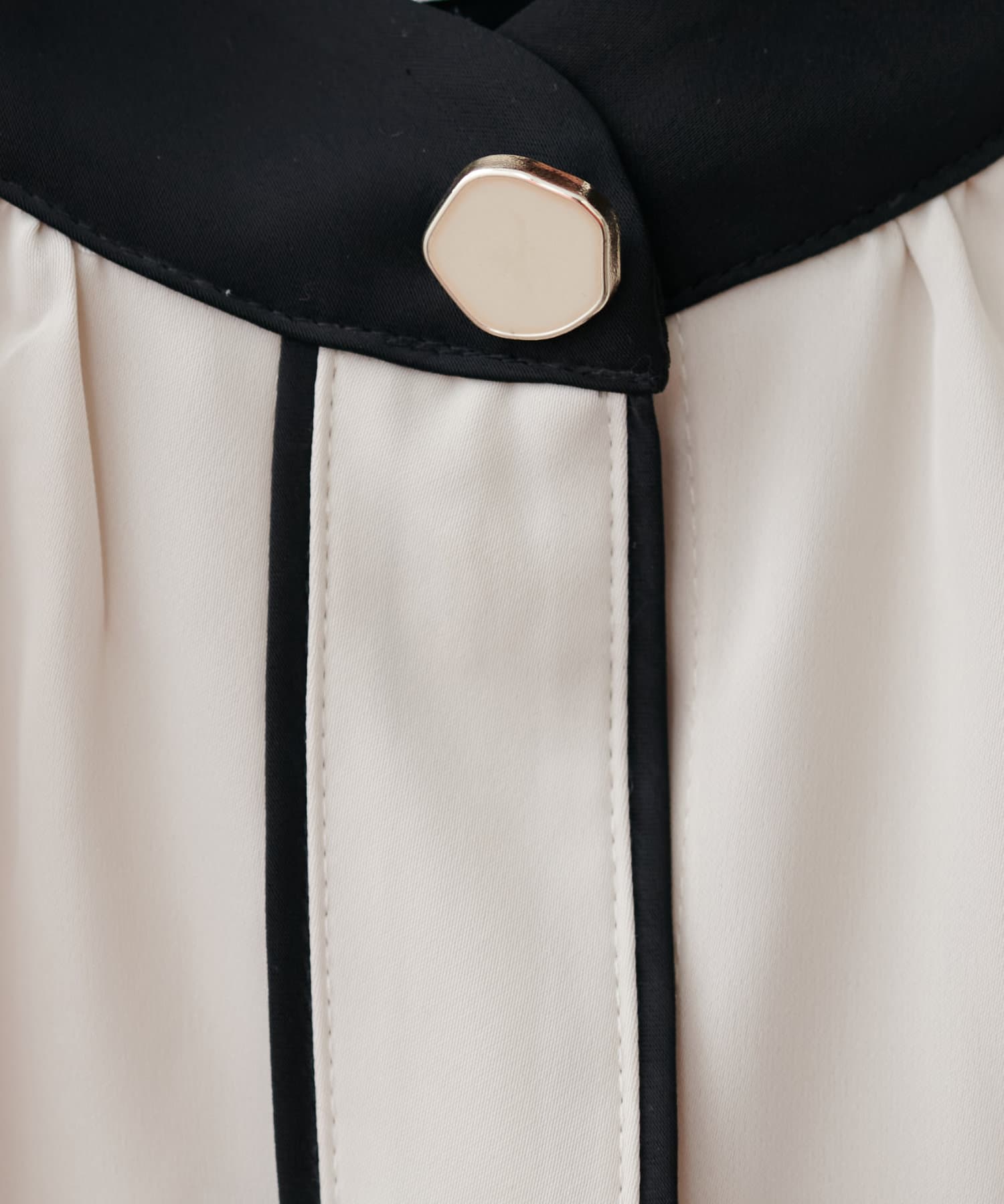 シェル素材とゴールドを組み合わせた上品な印象の釦を襟元に施し、