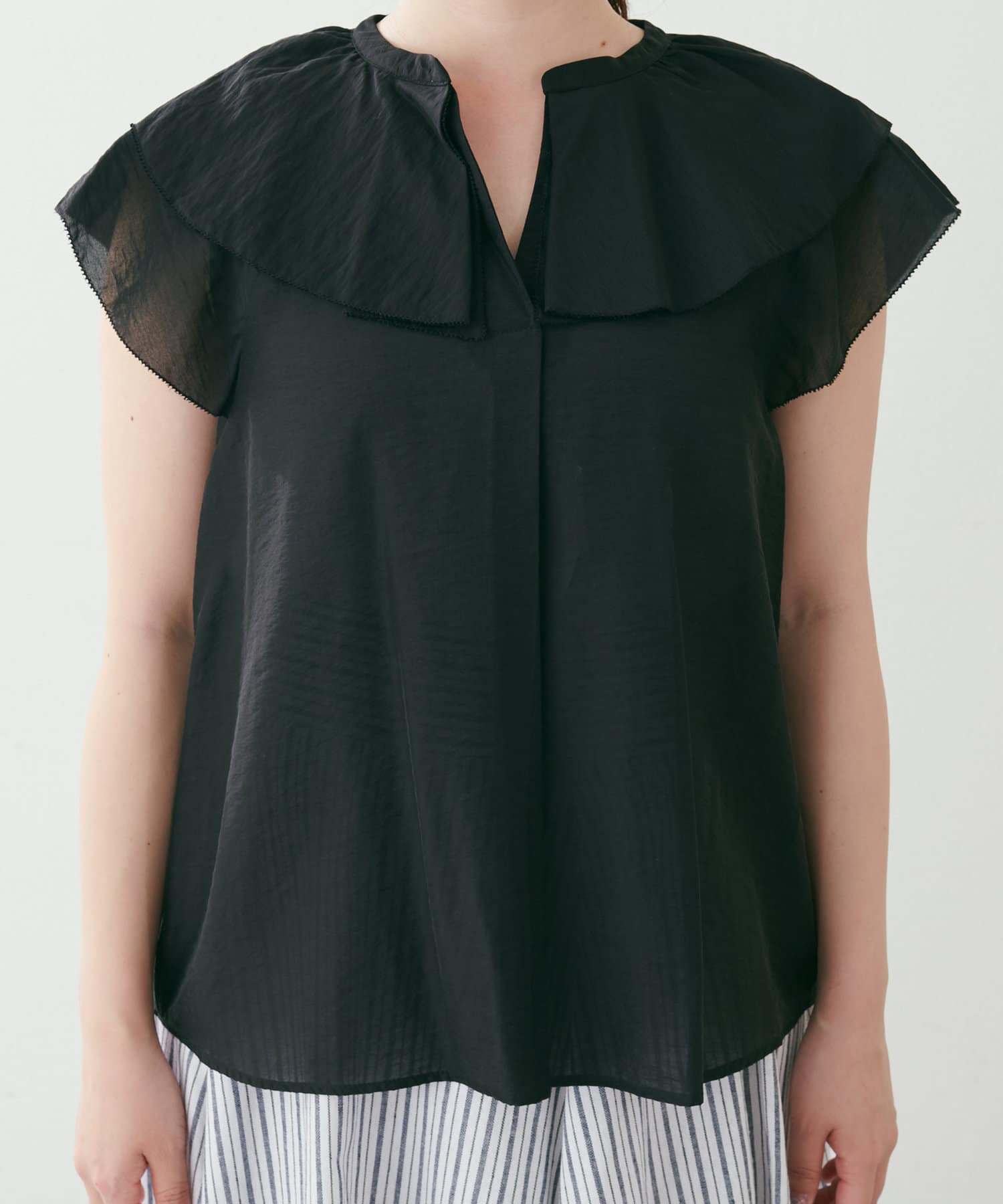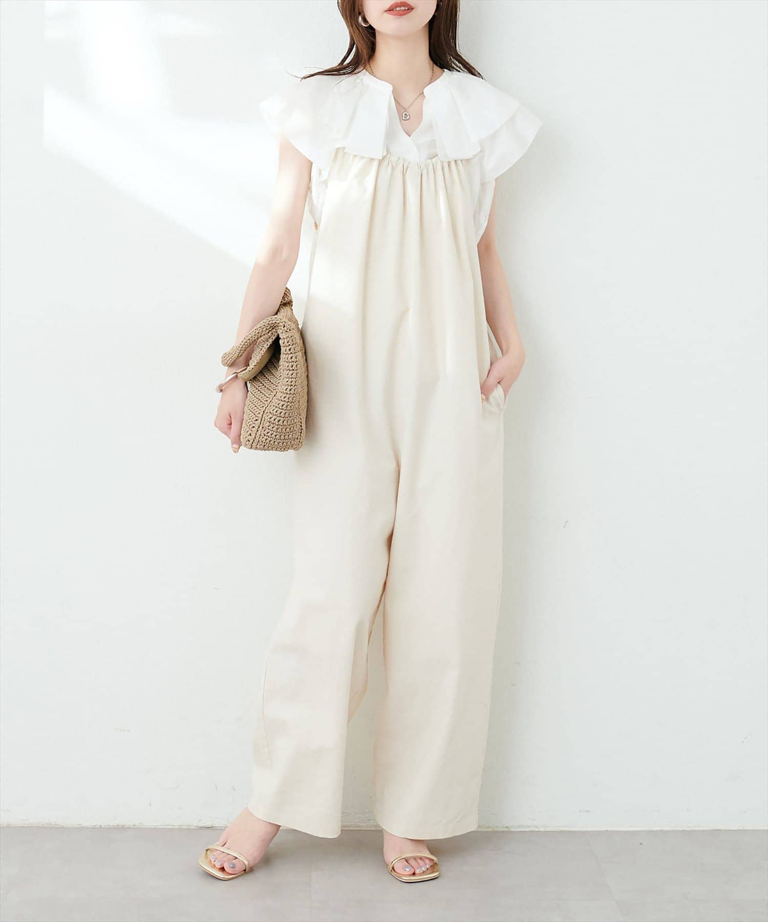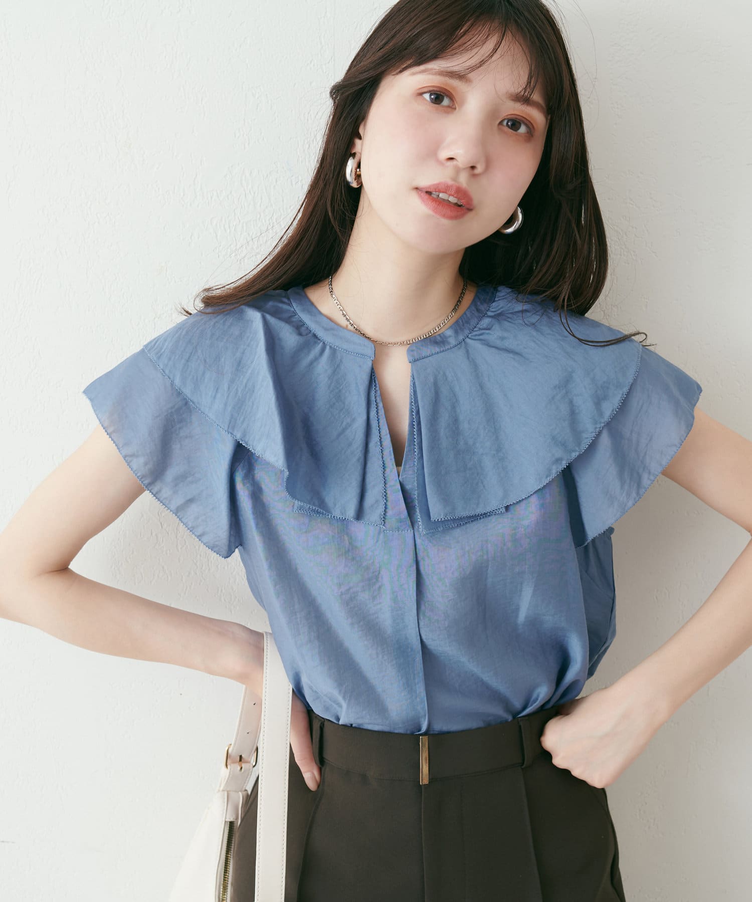 甘すぎない柔らかなフリル使いが、コーデにさりげないポイントをプラスしてくれます。