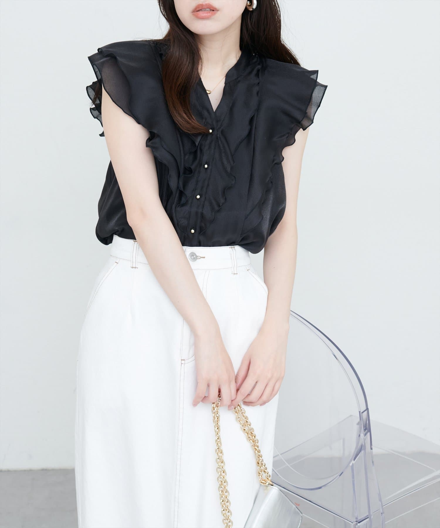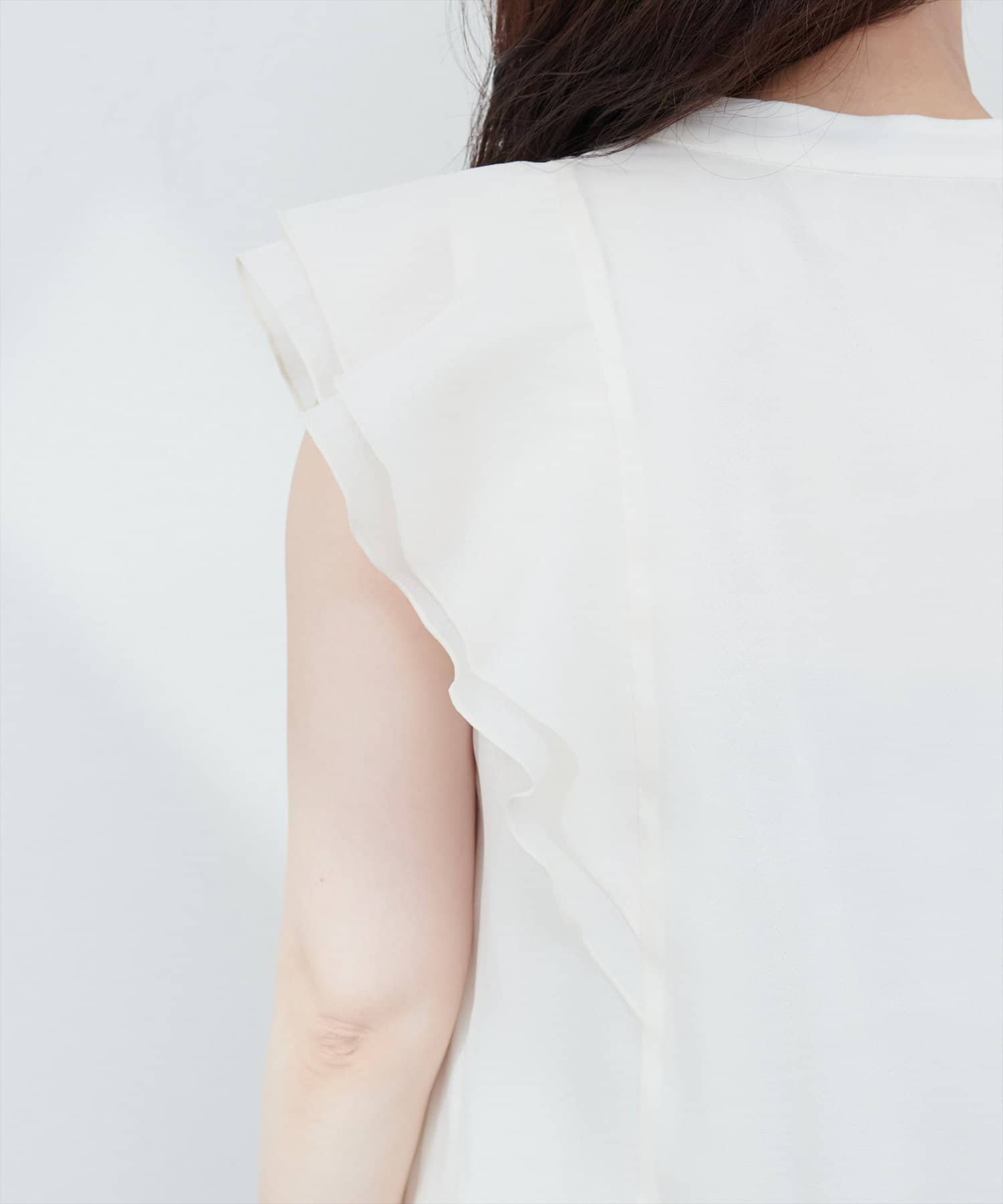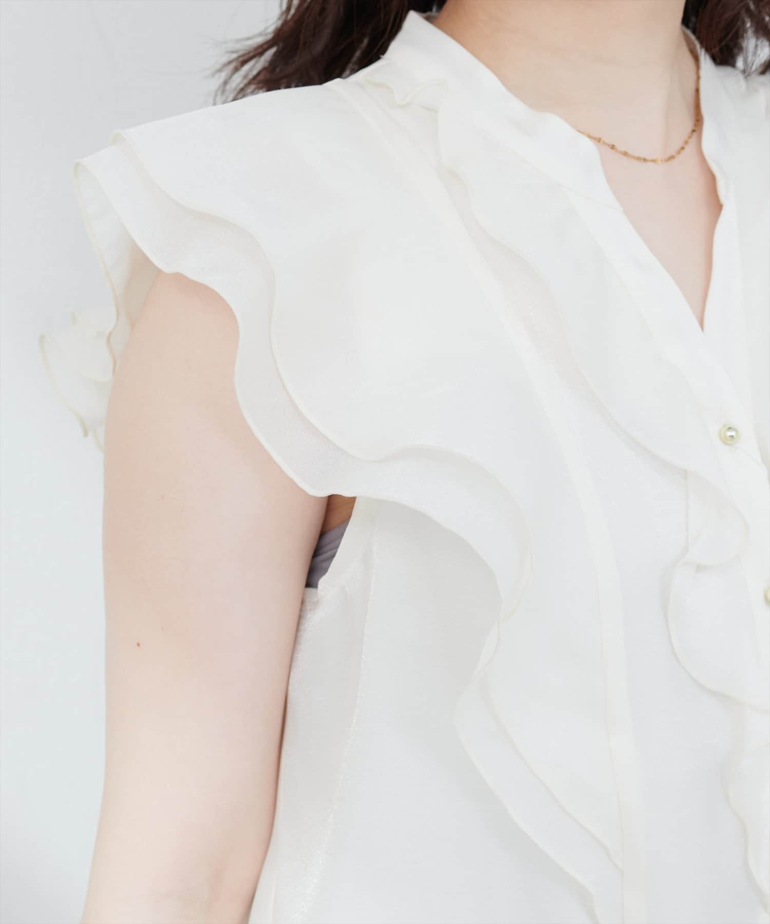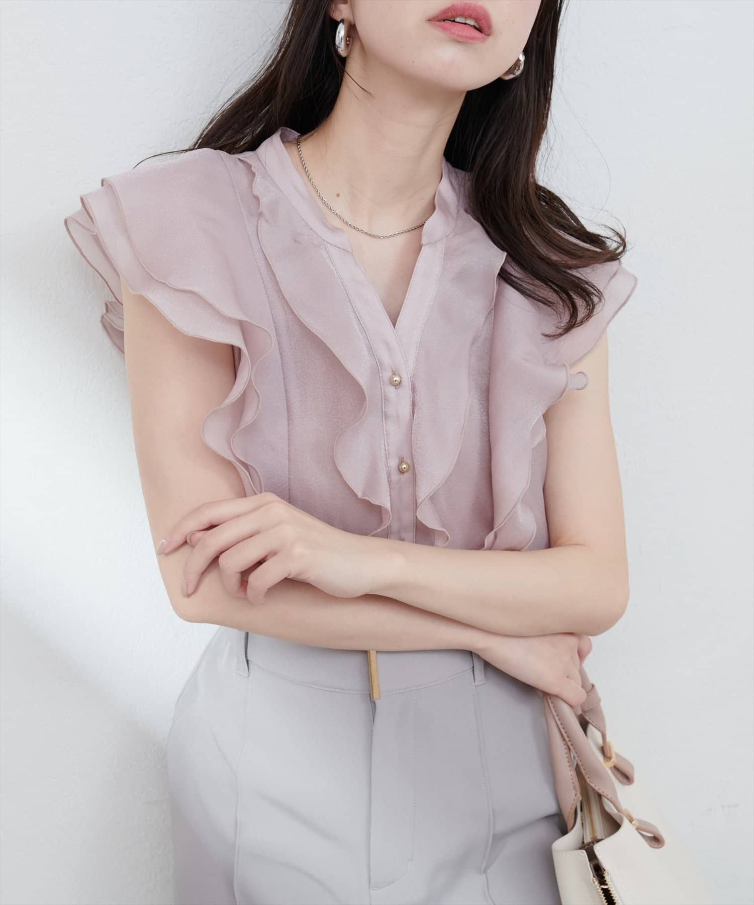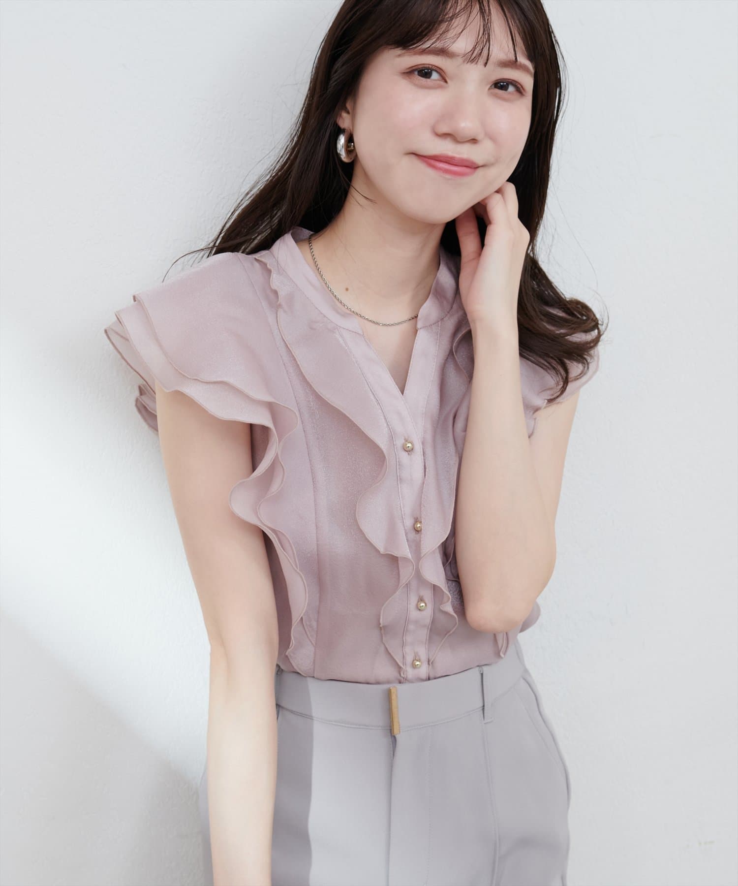 コーデに加えるだけで甘さをプラスしてくれる、ラッフルスリーブデザインが魅力なブラウス。