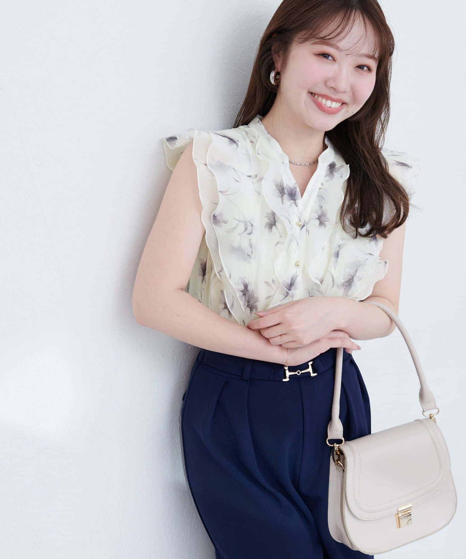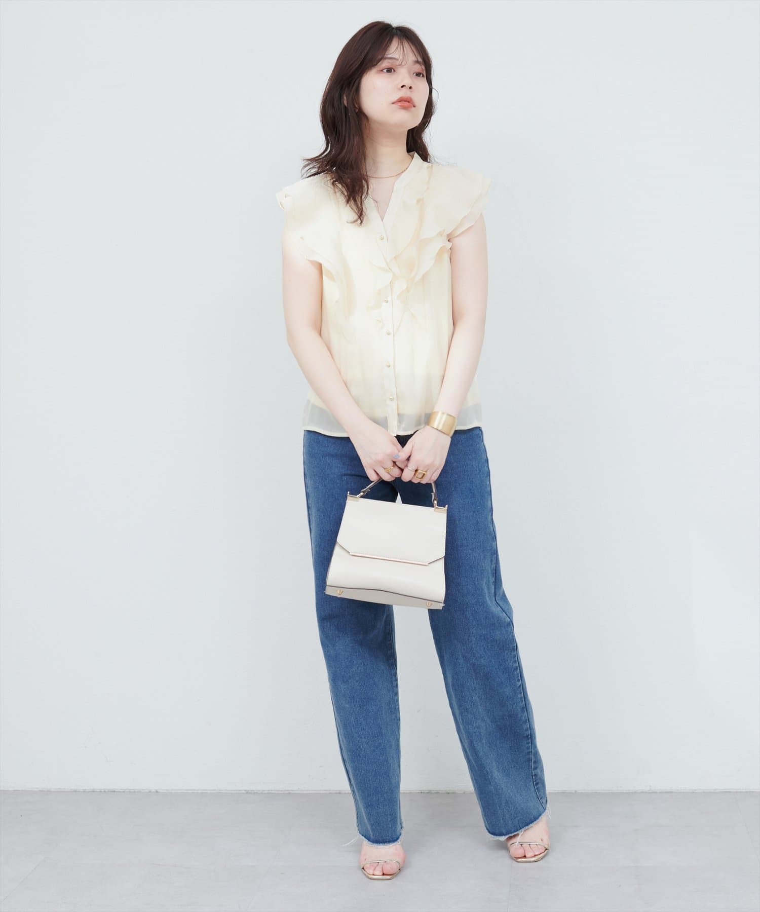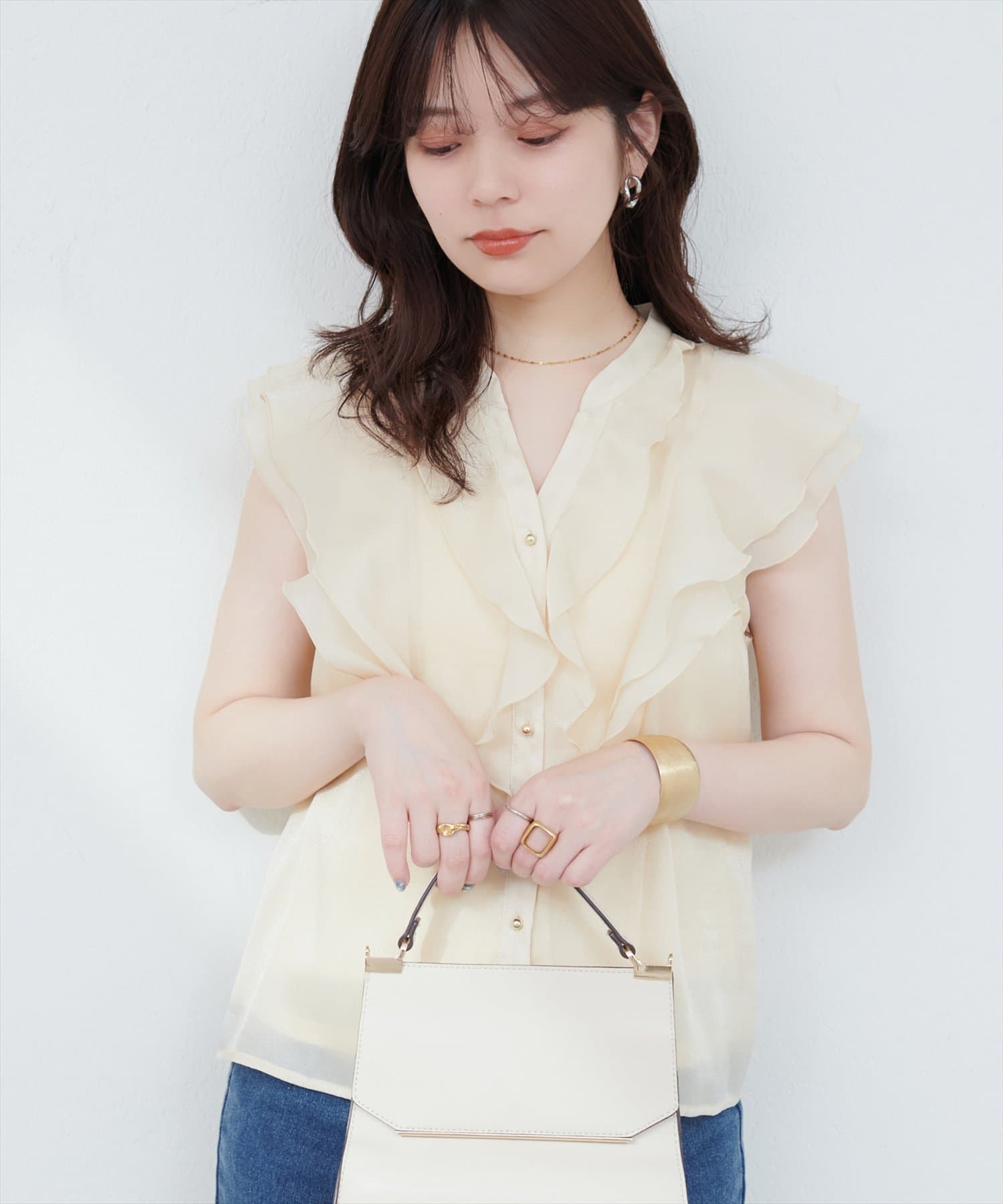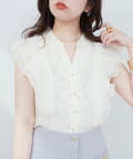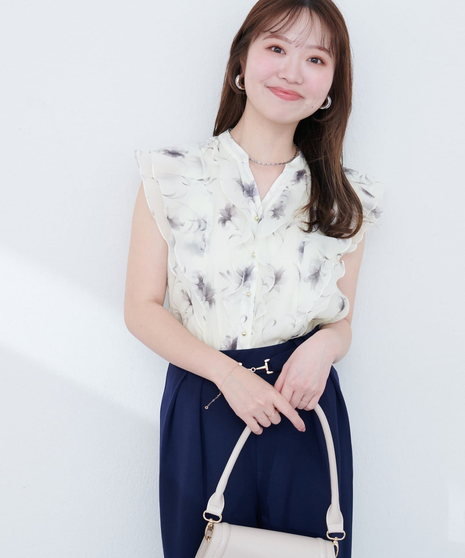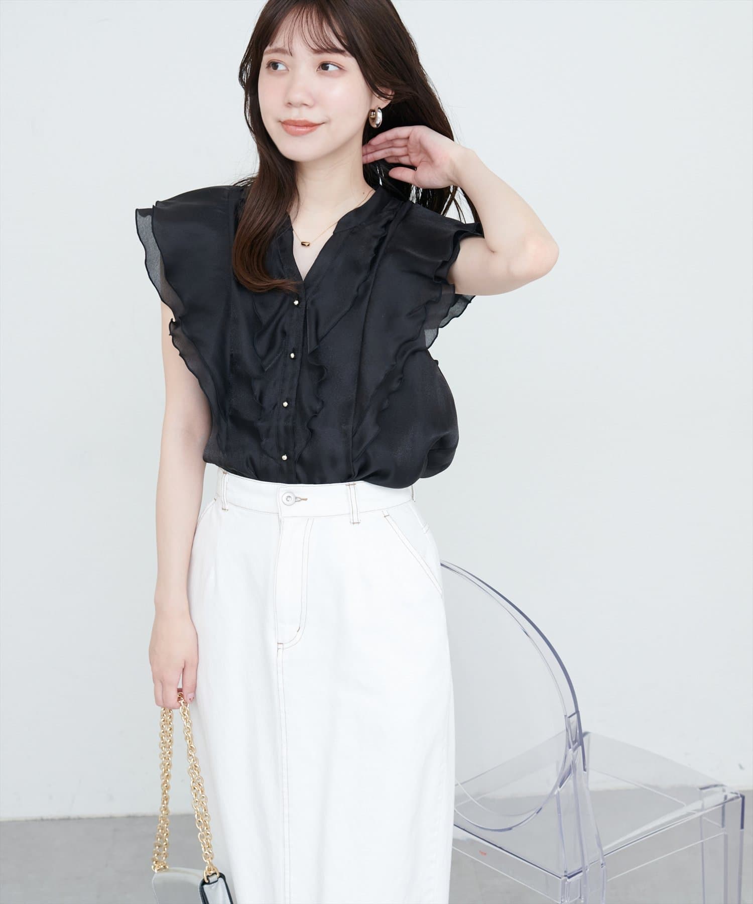 コーデに加えるだけで甘さをプラスしてくれる、ラッフルスリーブデザインが魅力なブラウス。