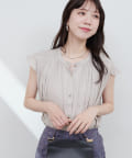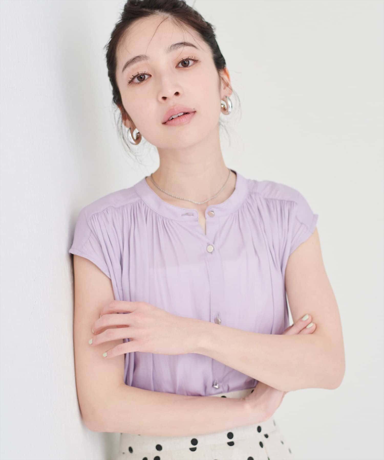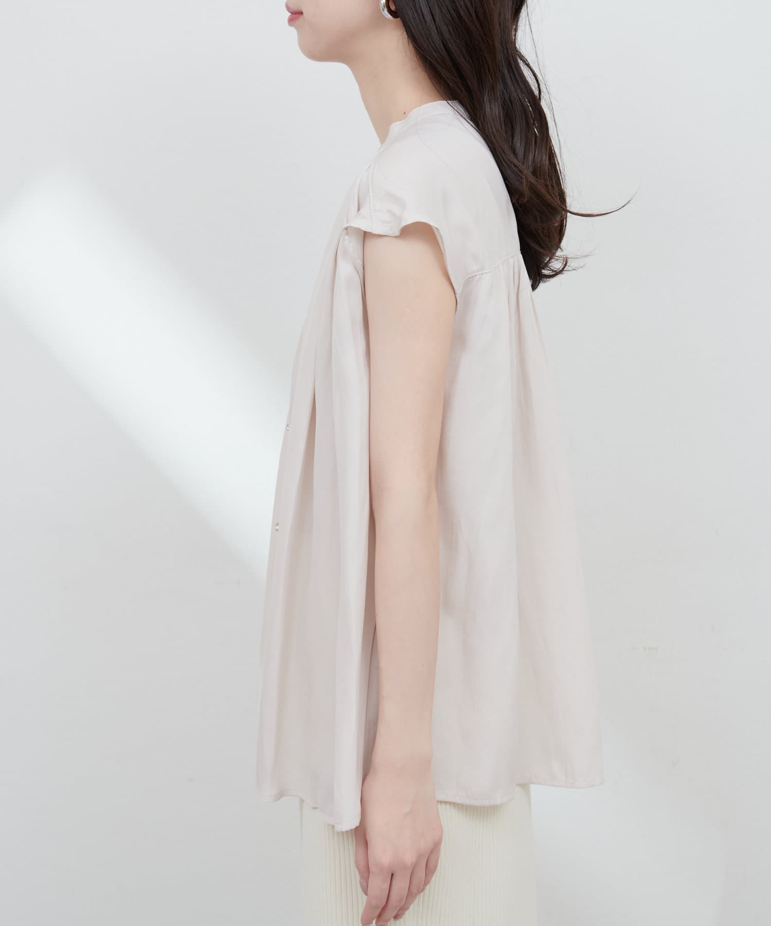 ゆとりを持たせたアームホールとやや肩先にかかるスリーブが、腕周りを華奢見せしてくれる優れもの。