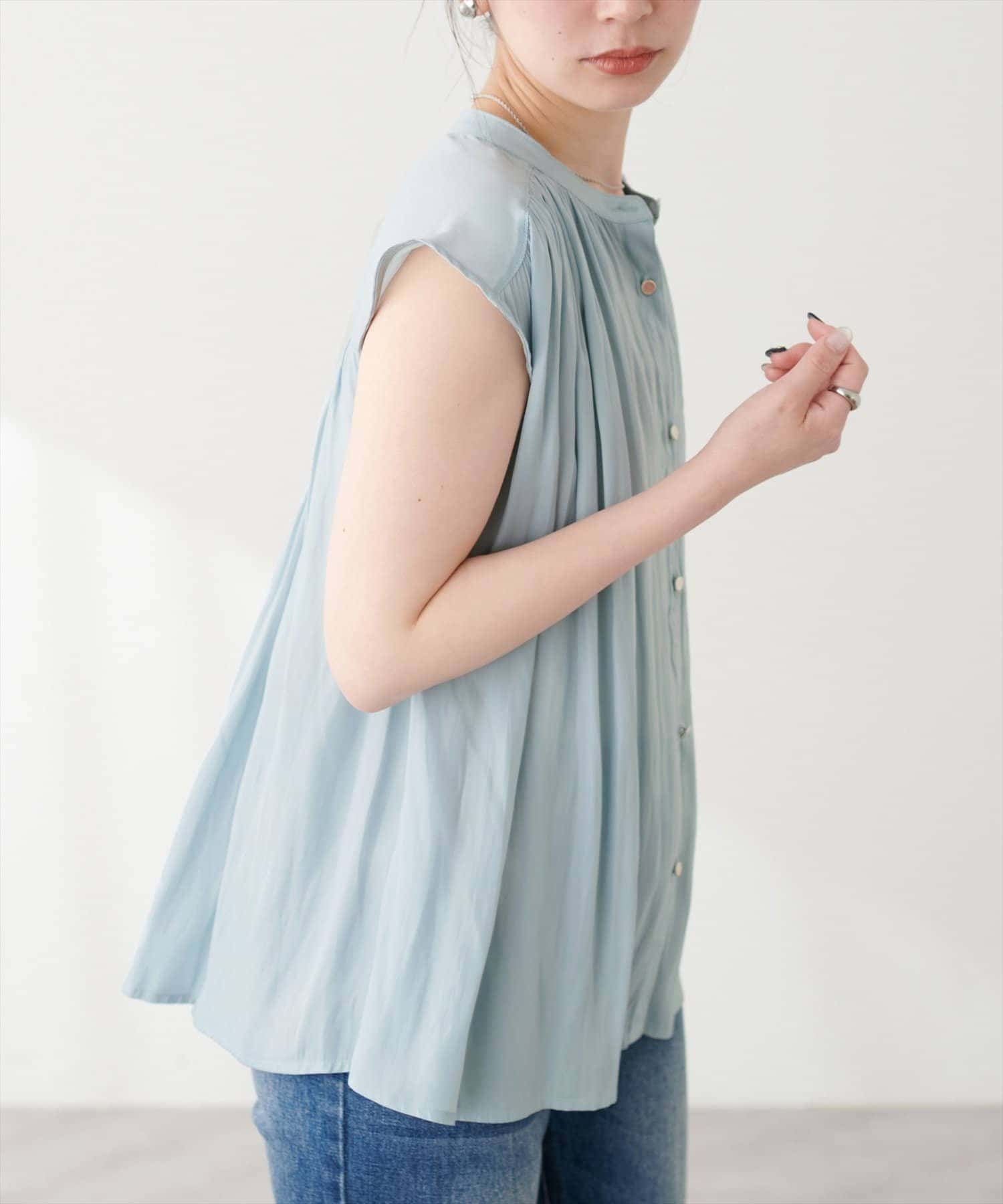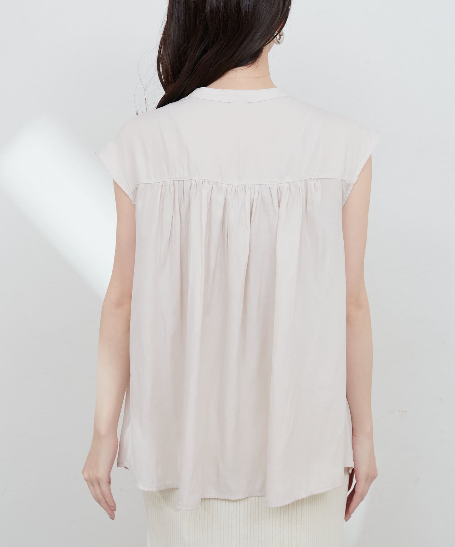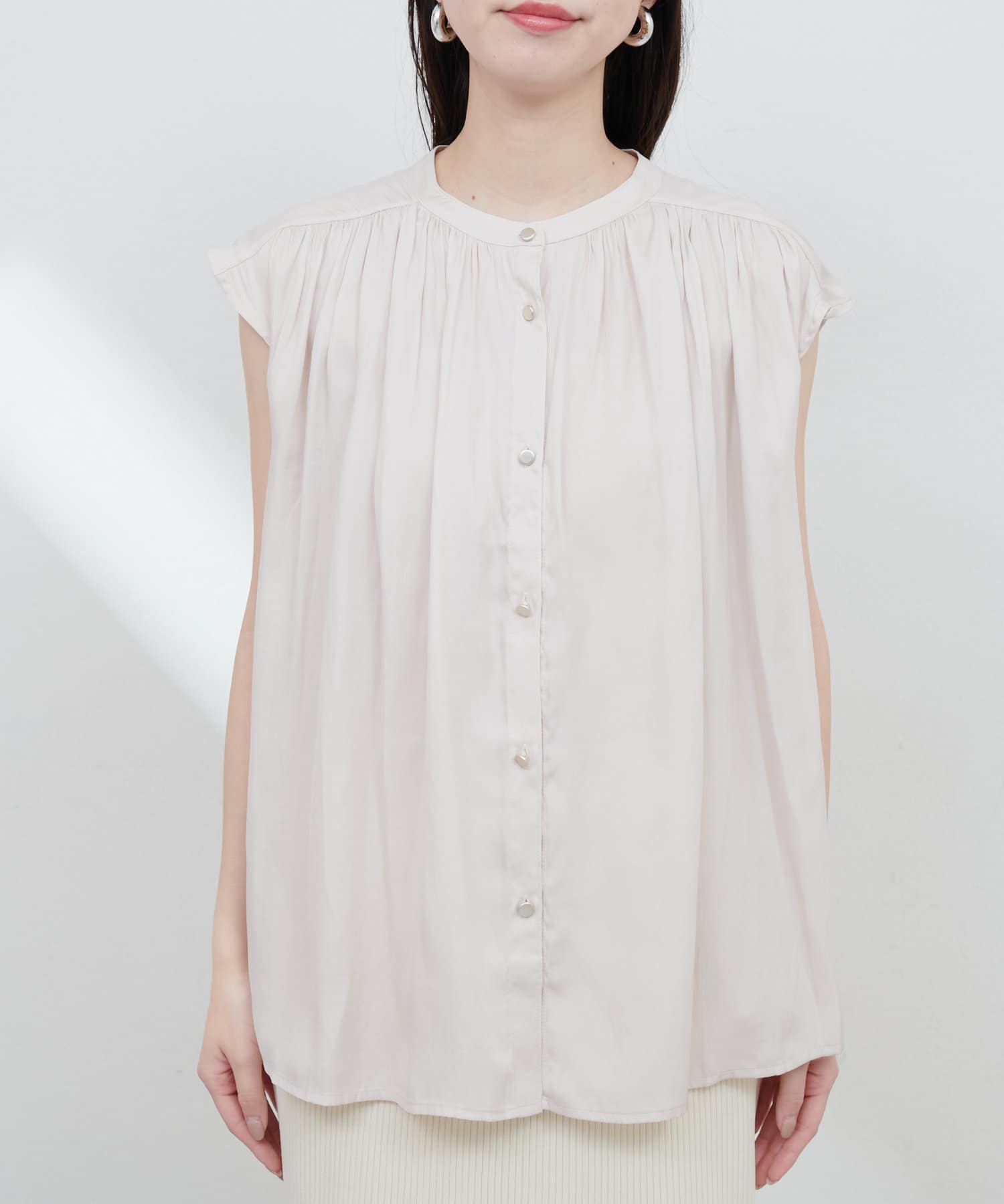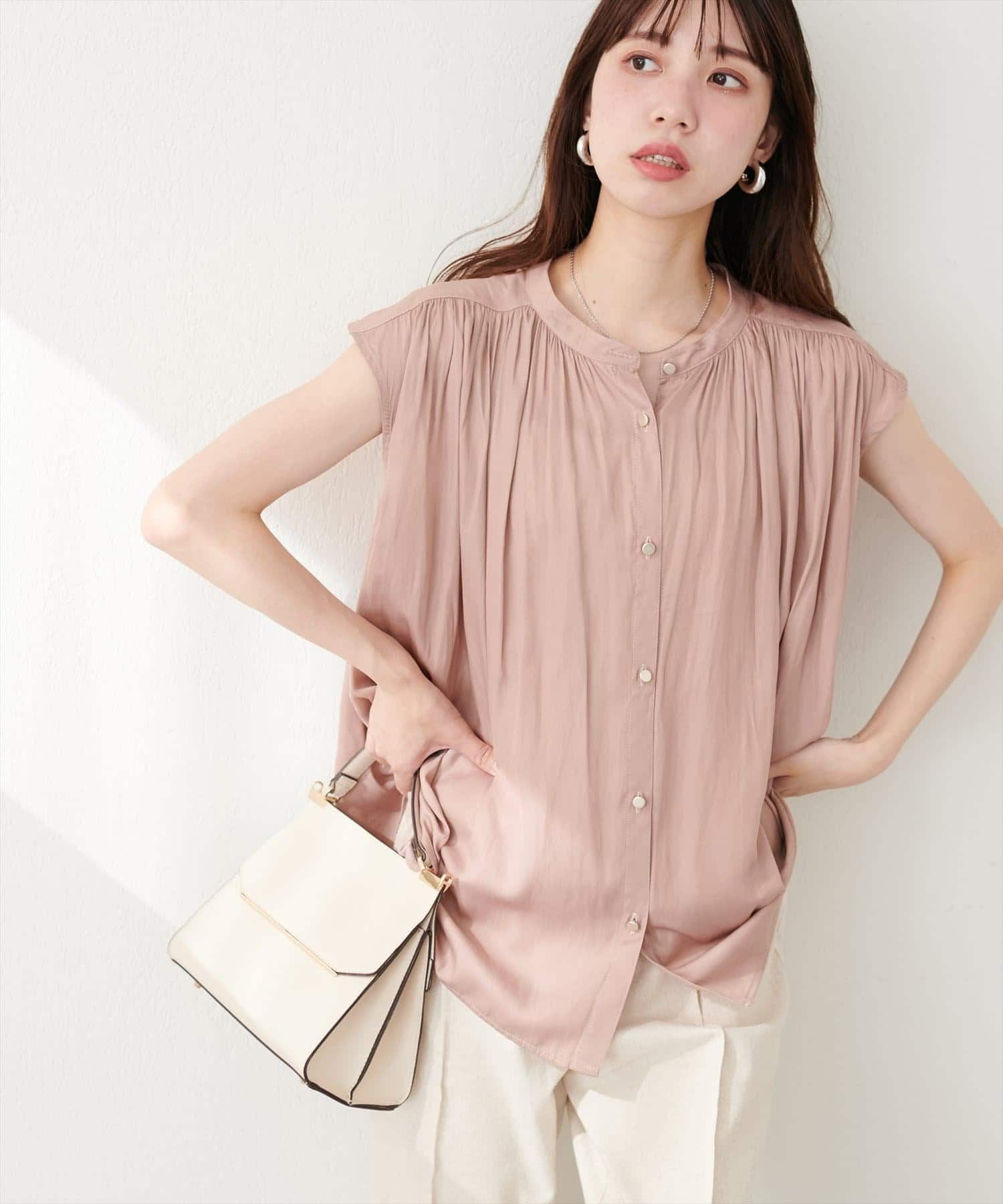 大好評のギャザーブラウスが、ノースリーブになって新たに登場です。