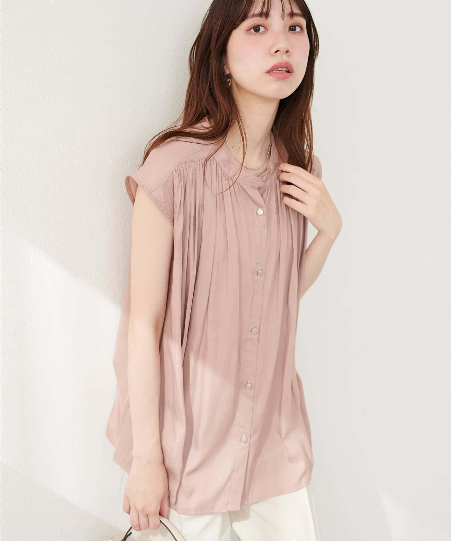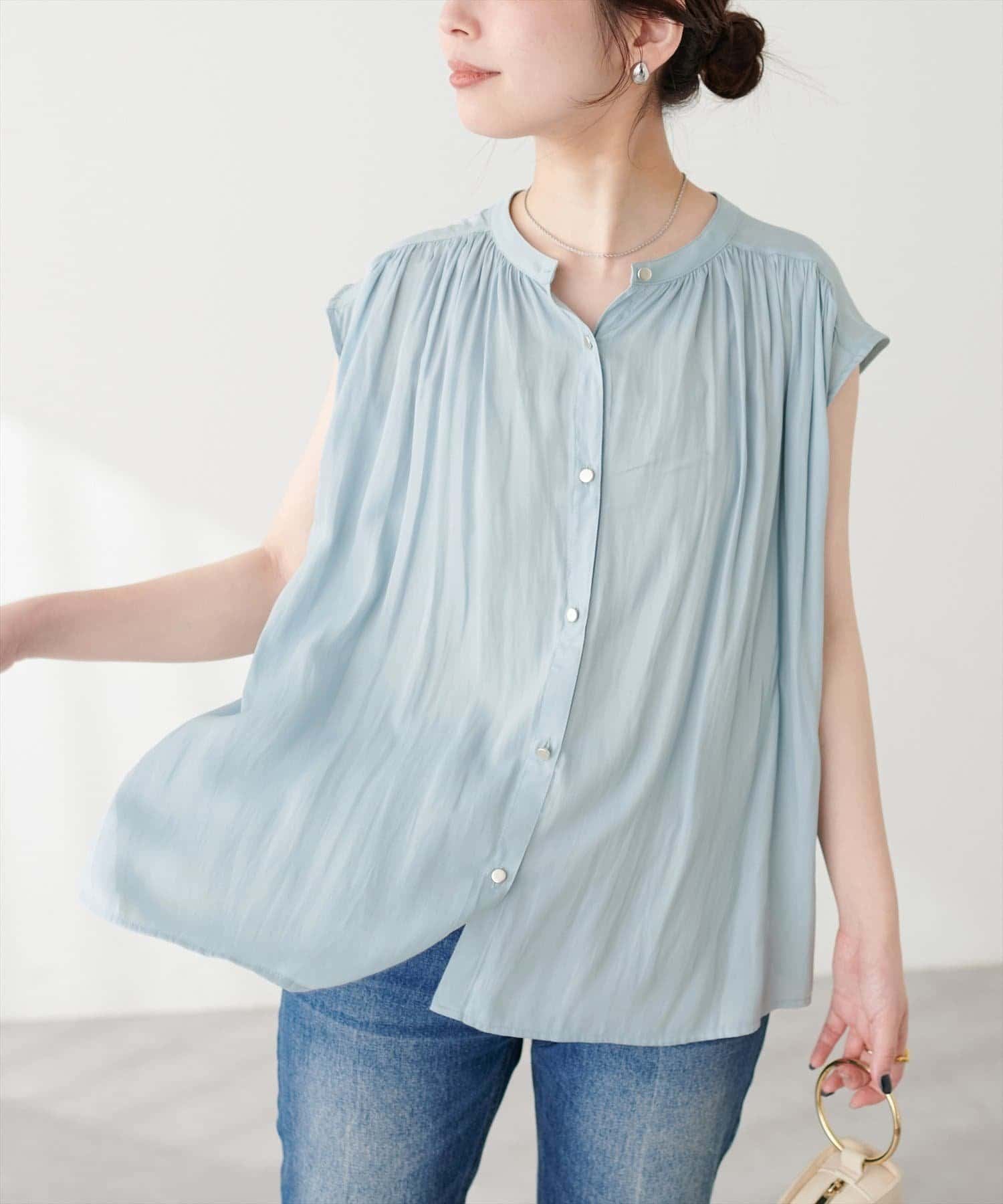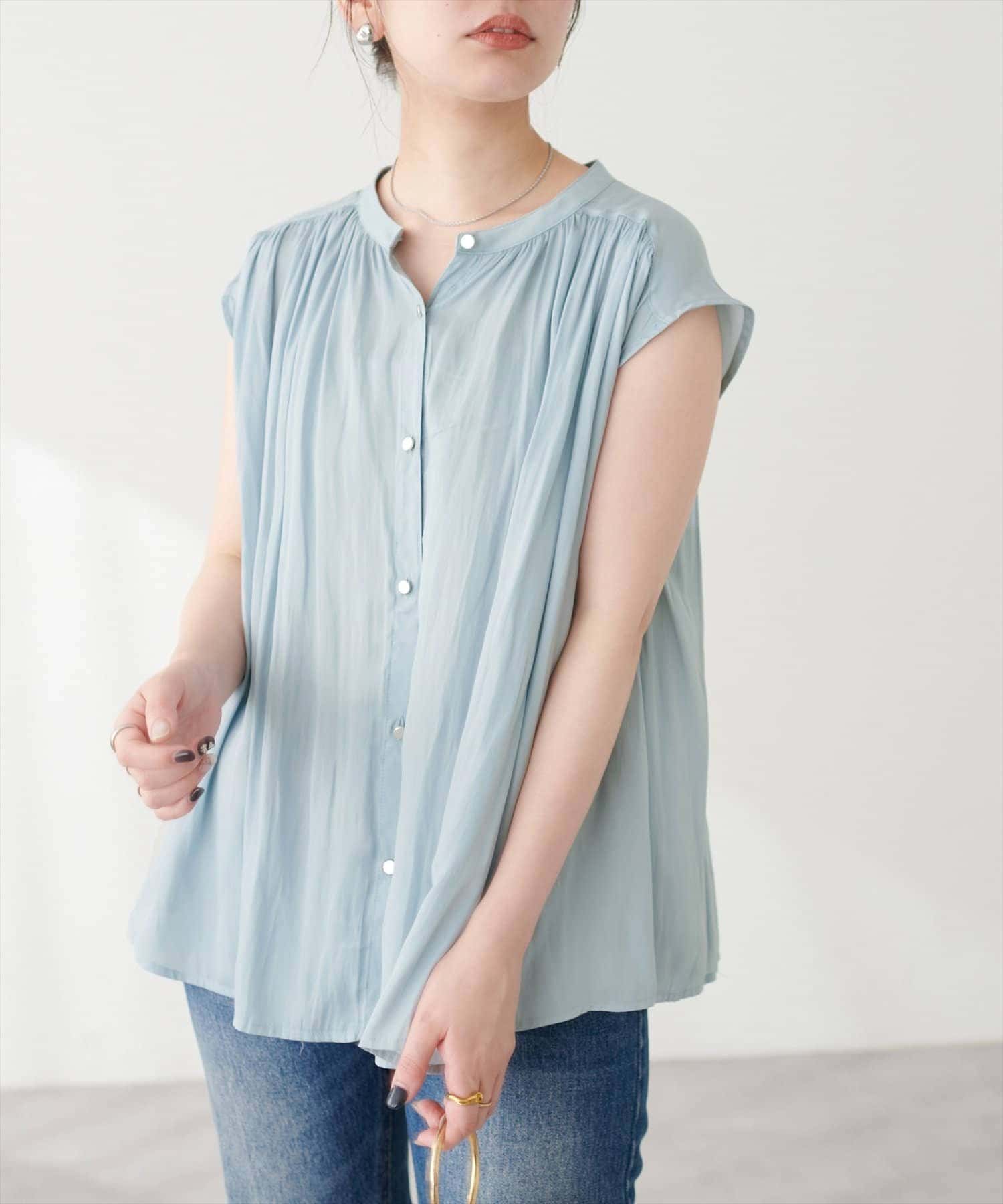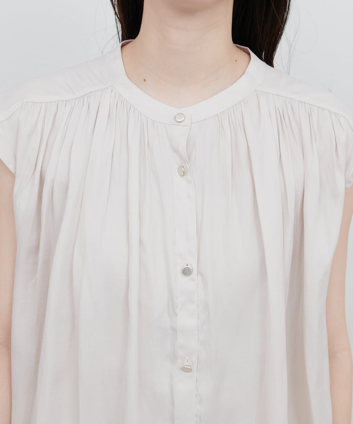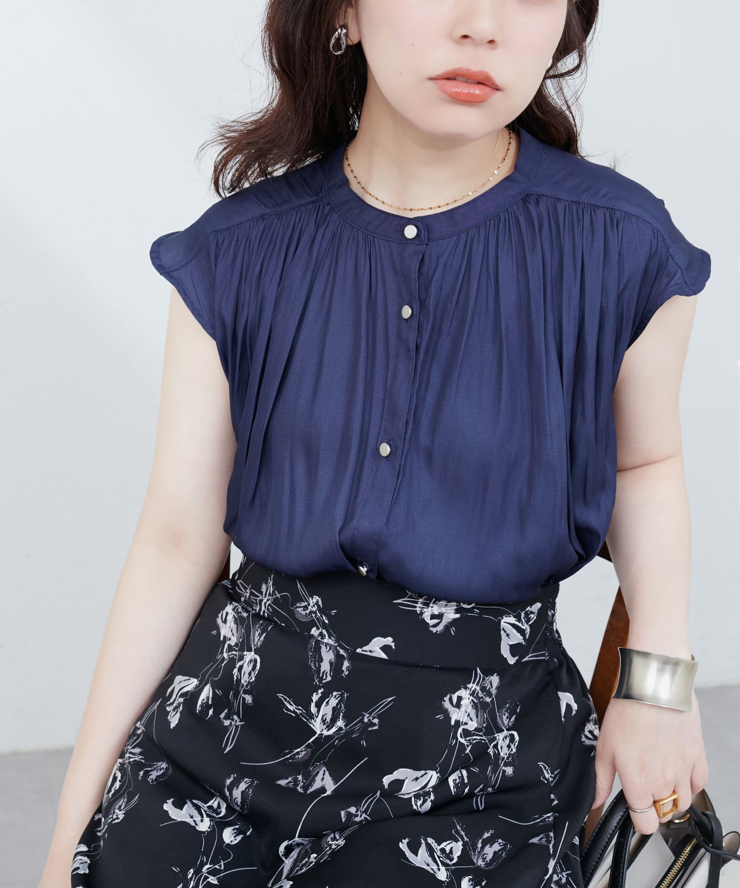大好評のギャザーブラウスが、ノースリーブになって新たに登場です。