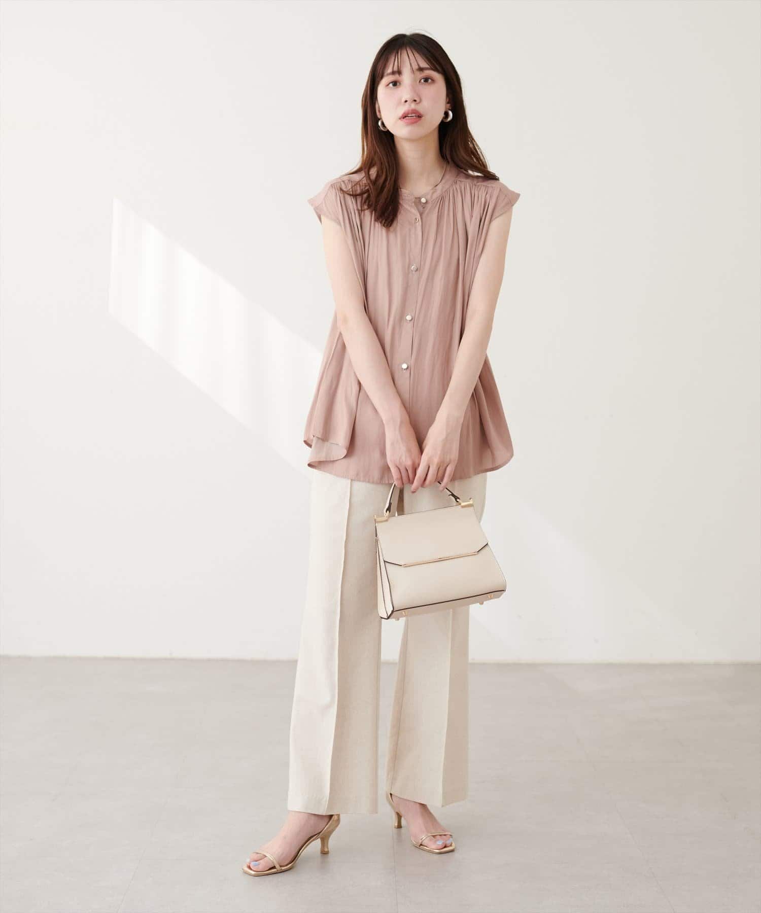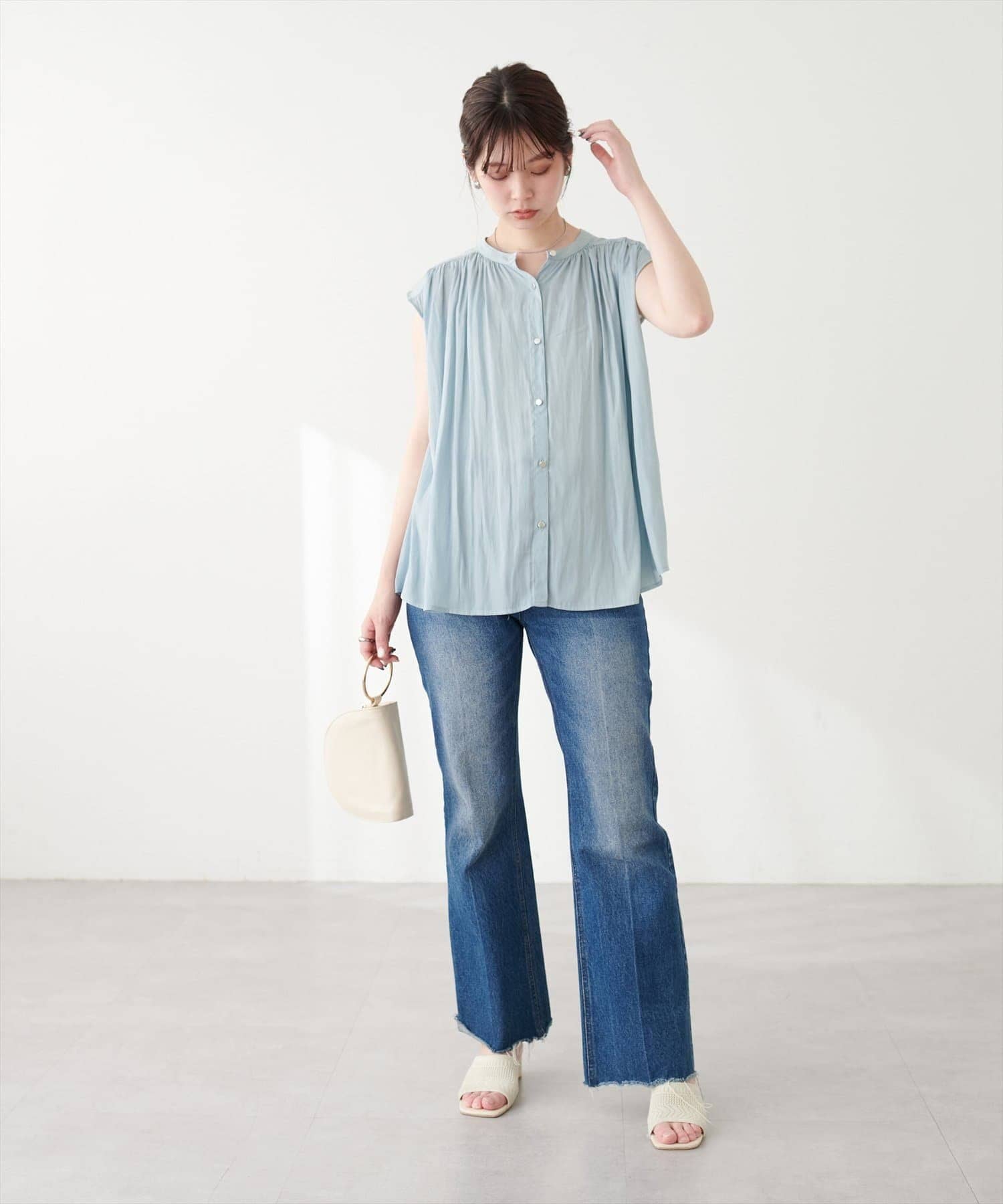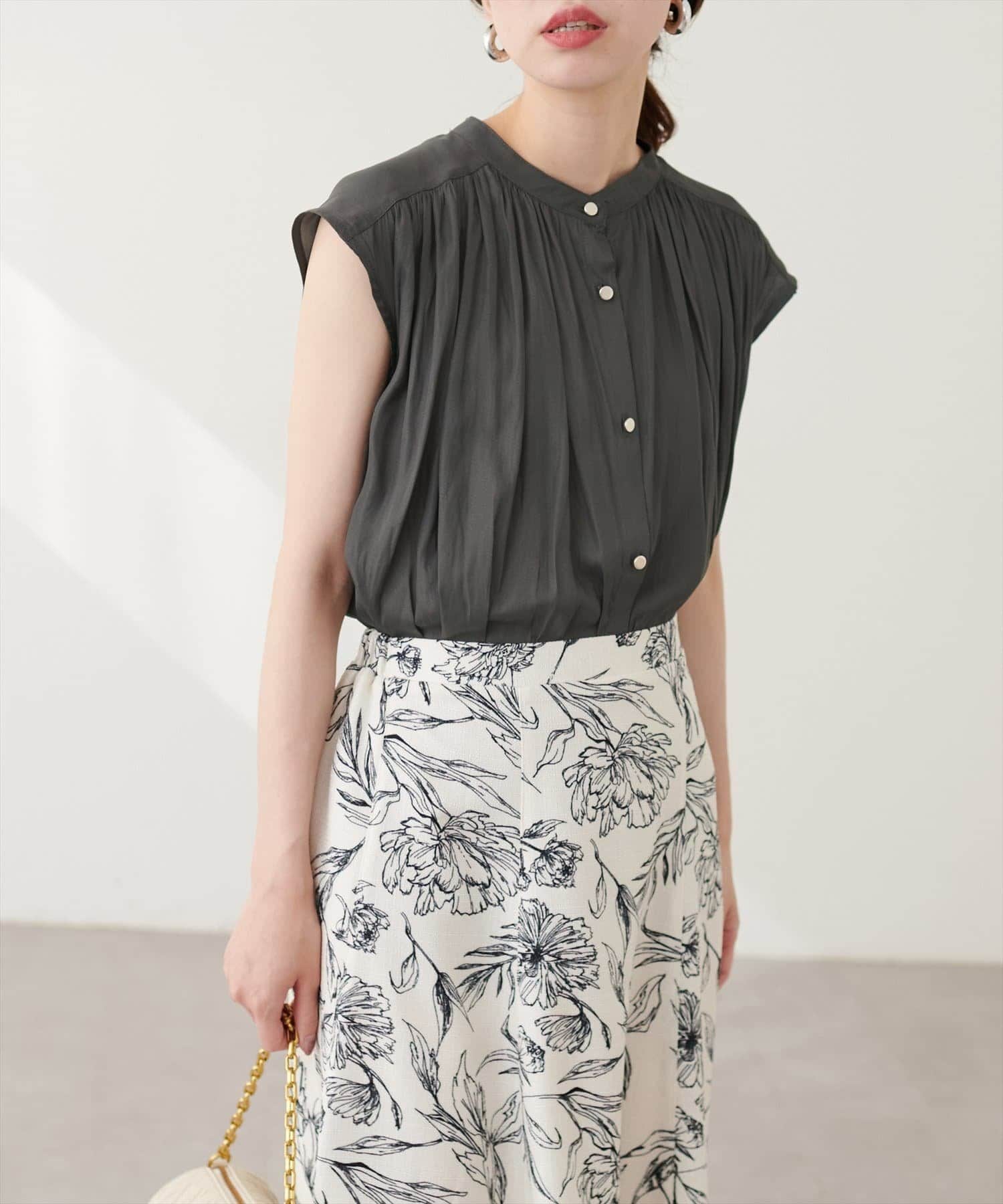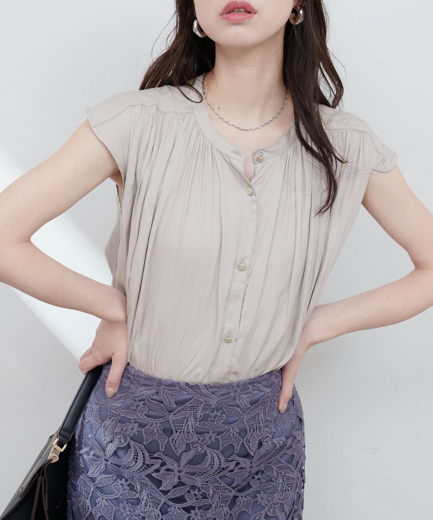 大好評のギャザーブラウスが、ノースリーブになって新たに登場です。