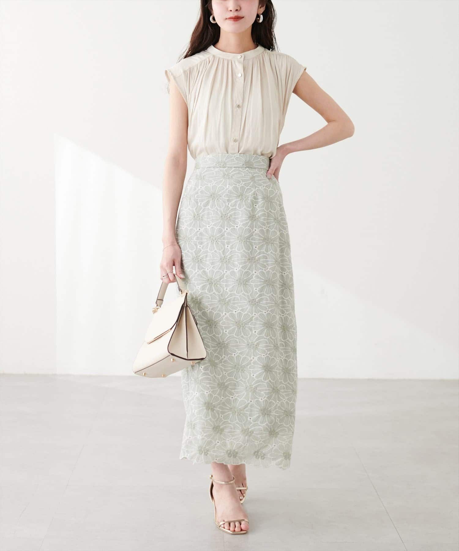 マーメイドシルエットやフレアライン、Iラインのスカートにウエストインして、