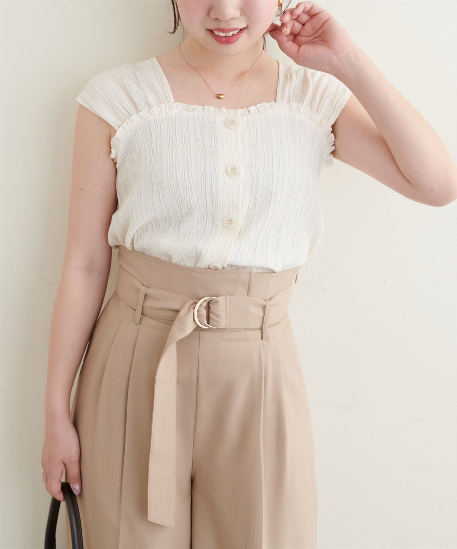 真夏は1枚で涼しく。フェミニンにスカート合わせはもちろん、パンツと合わせるとカジュアルスタイルの中にも