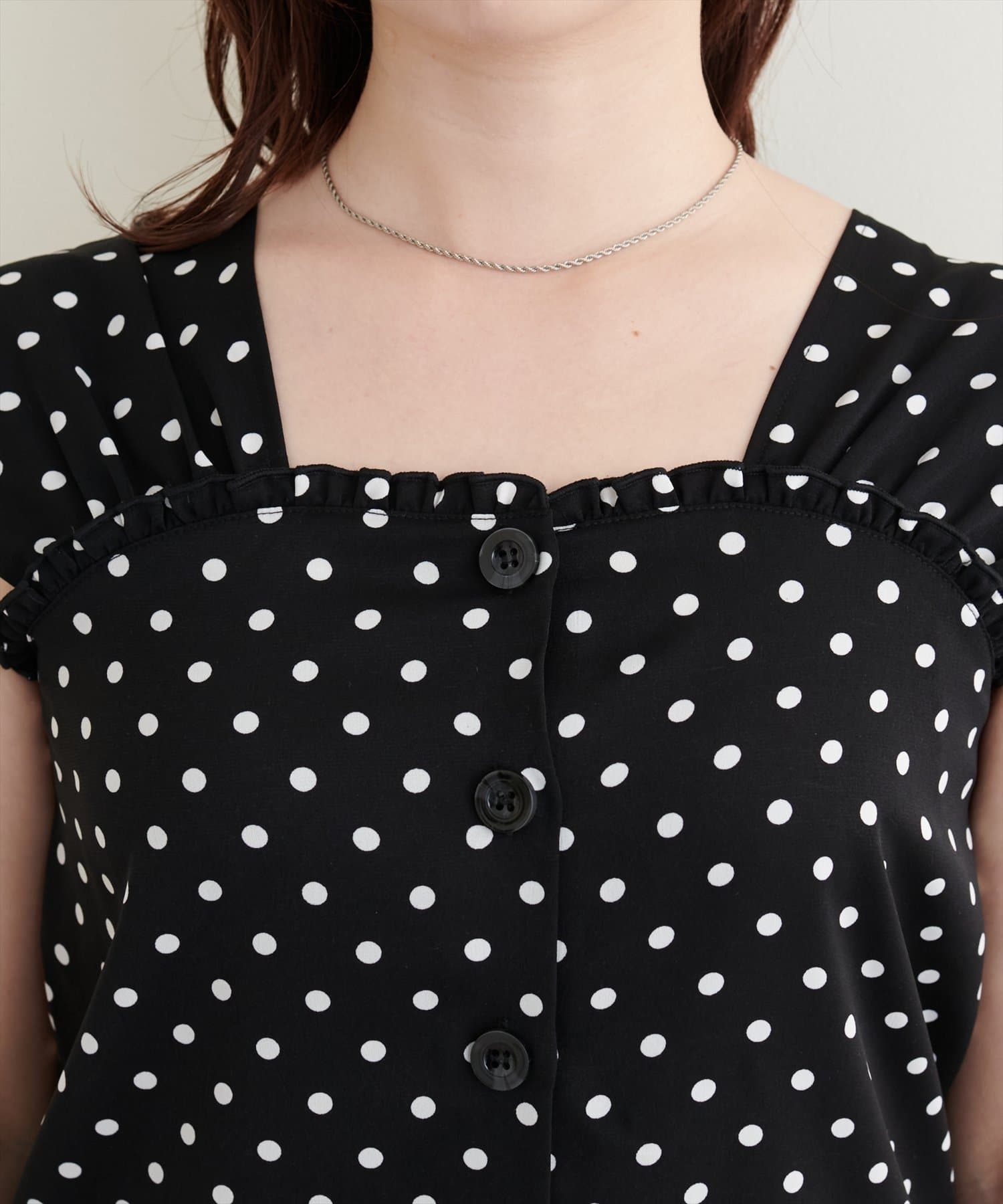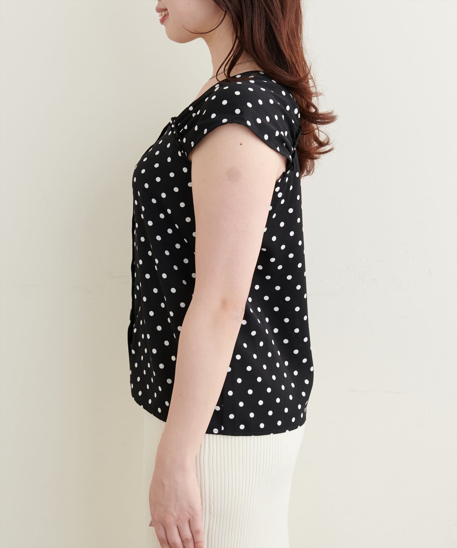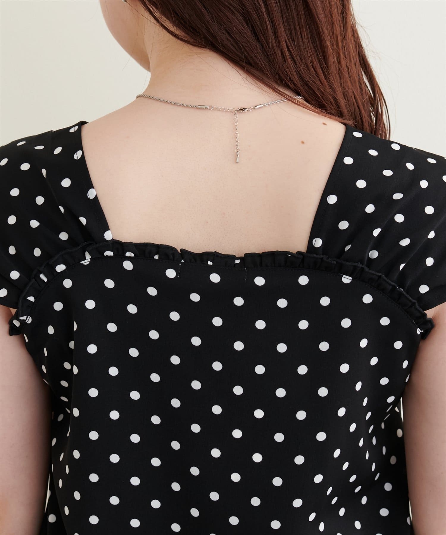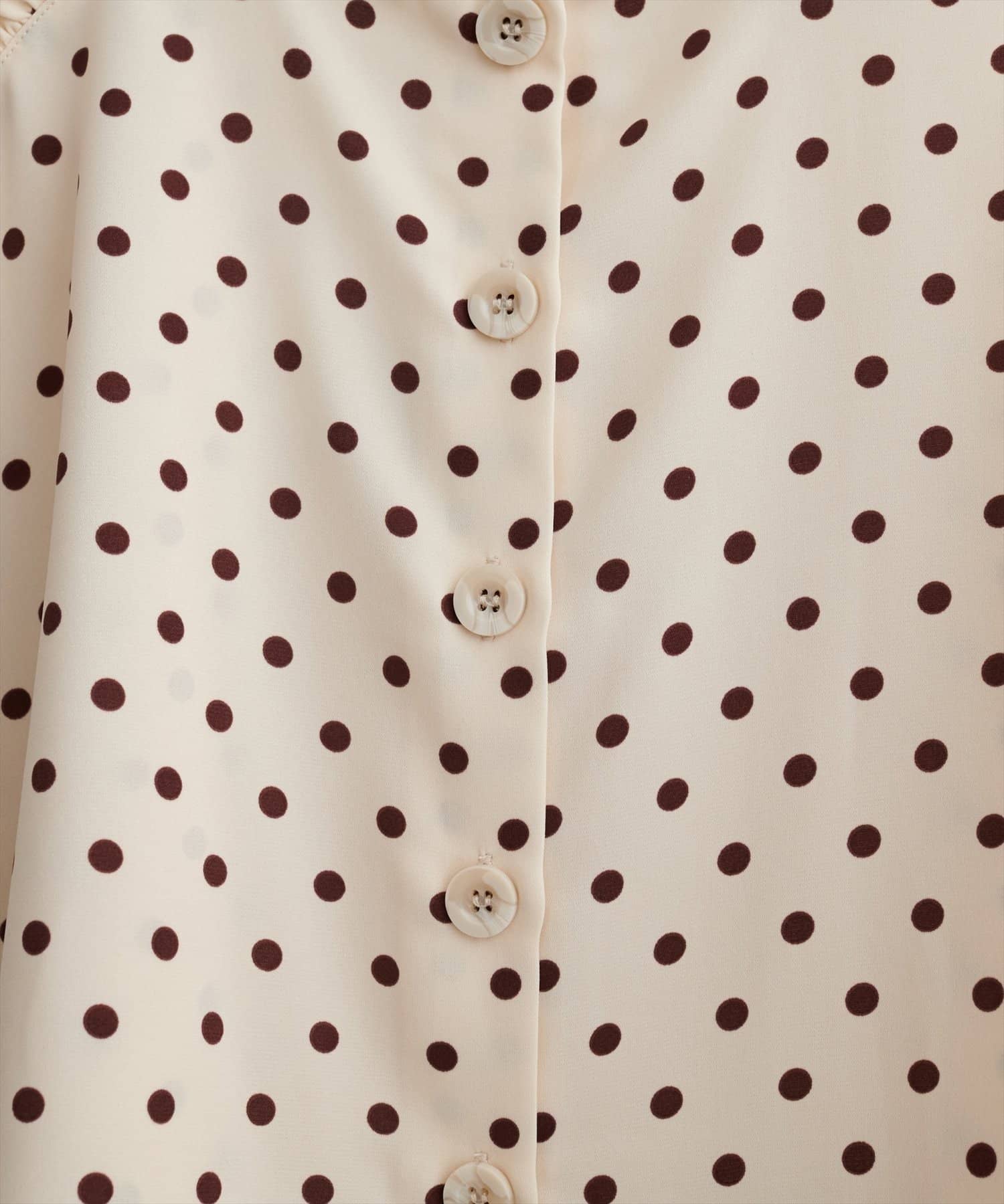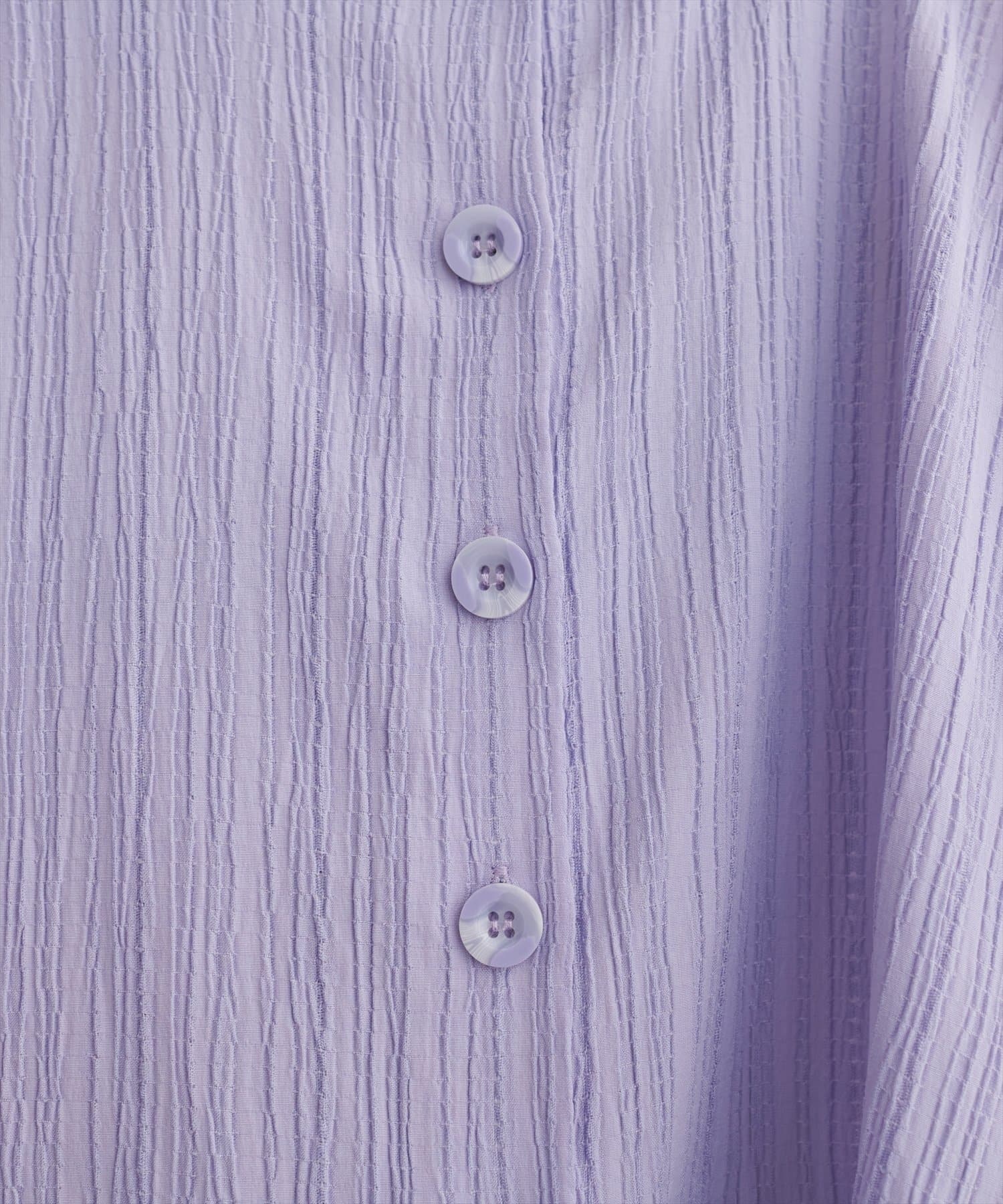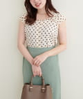 また、胸元のフリルは甘すぎないメロー始末で大人の女性にピッタリの1枚。