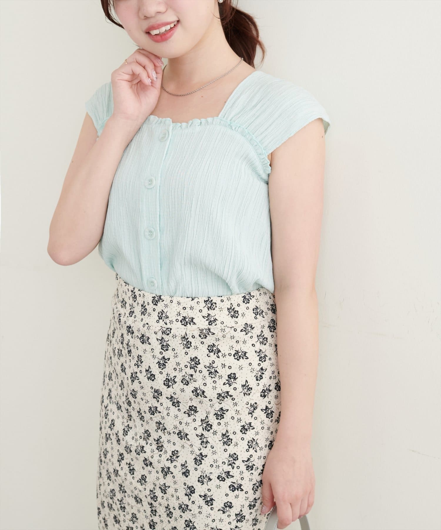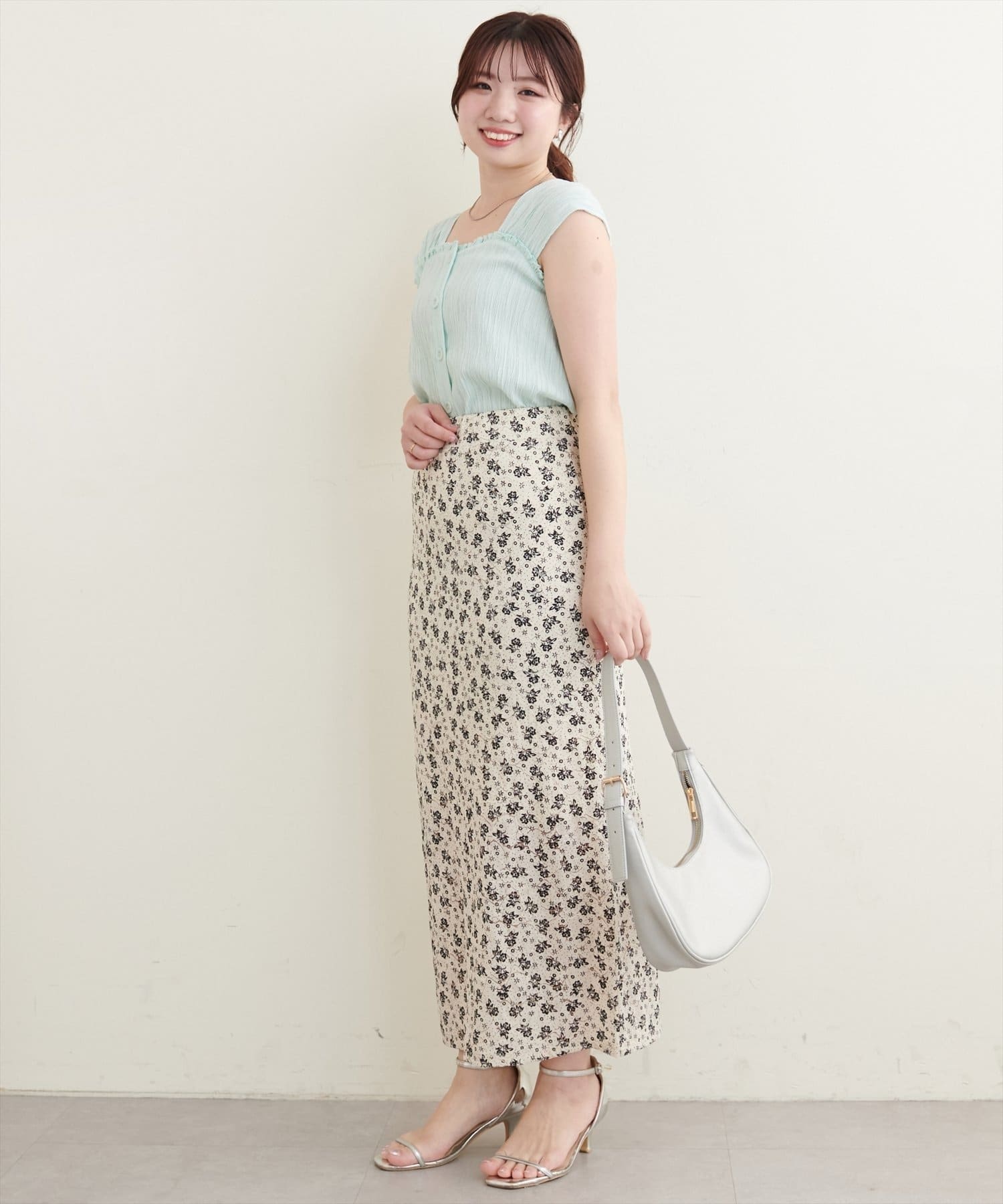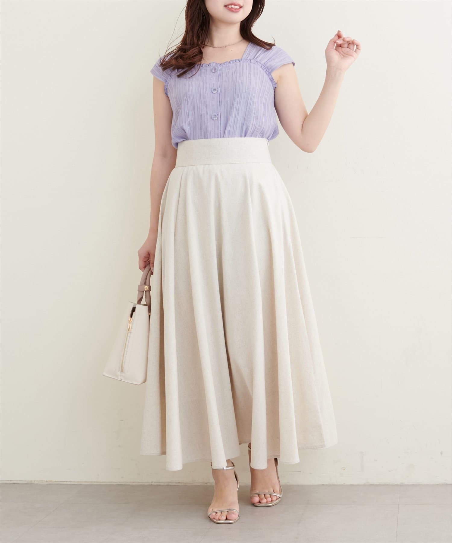 真夏は1枚で涼しく。フェミニンにスカート合わせはもちろん、パンツと合わせるとカジュアルスタイルの中にも