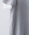 首元はすっきりとしたバンドカラーで、上品さをプラスし、さりげなく輝くボタンもアクセントに。