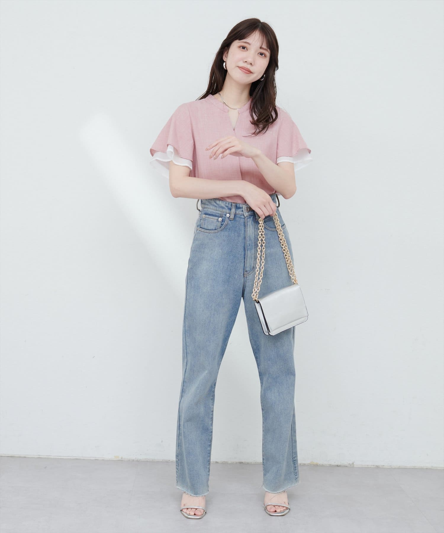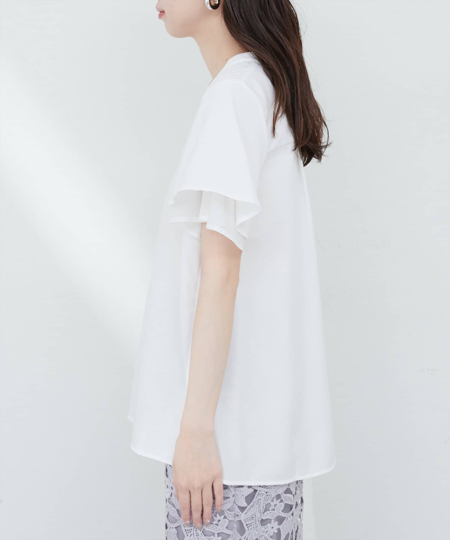 フリルのような袖のシルエットは、甘すぎず、大人可愛い雰囲気を演出。