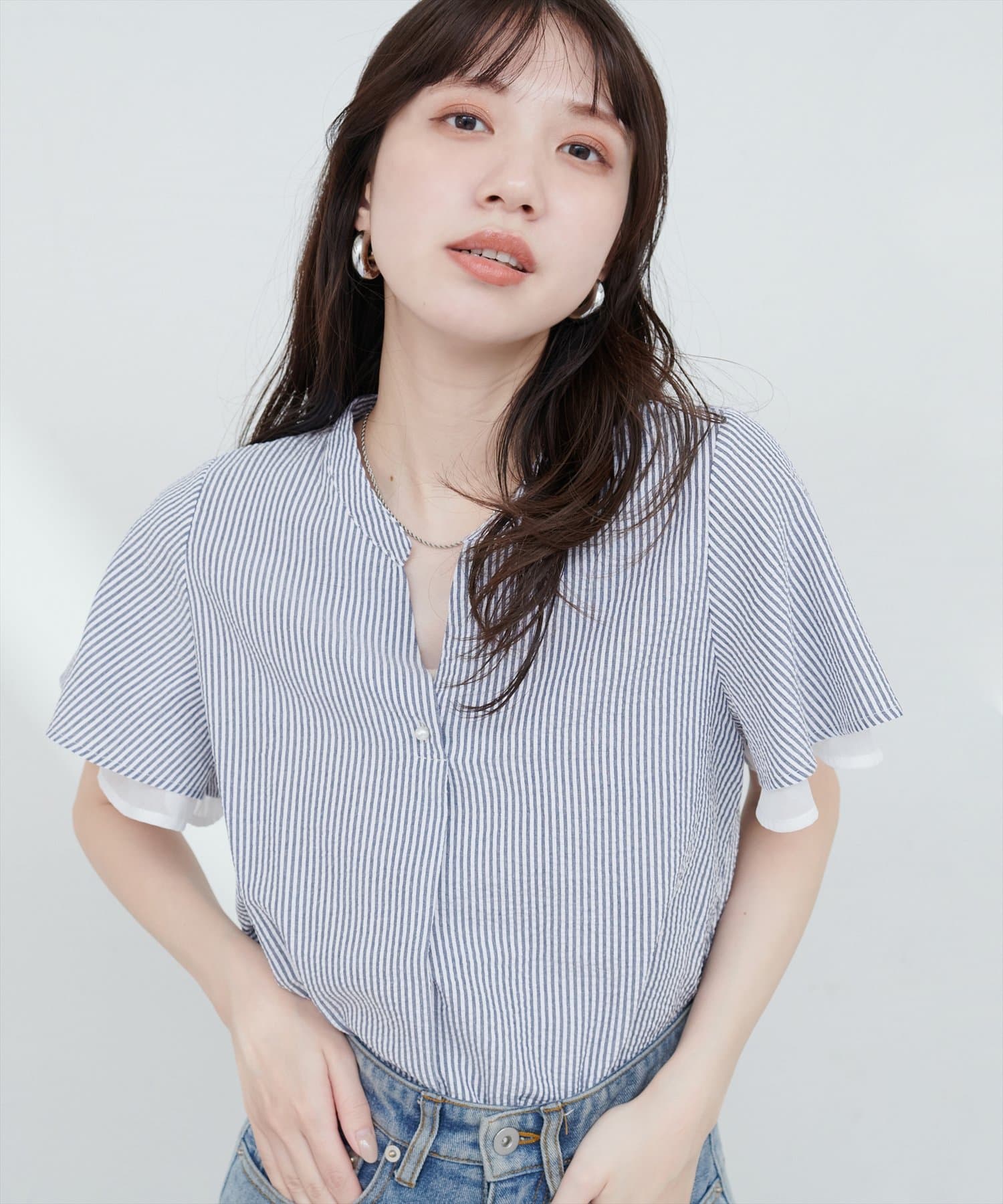 上品な二層の袖が魅力的で軽やかな着心地のブラウス。