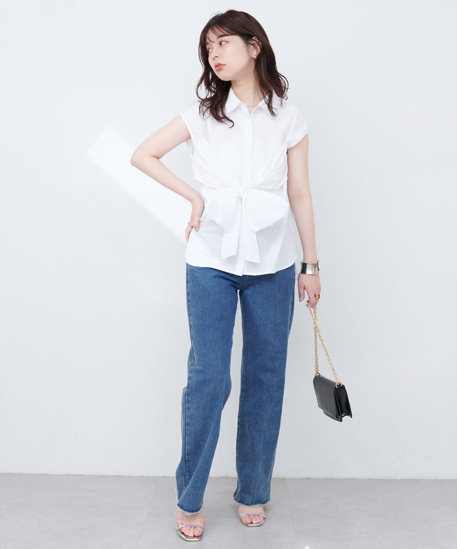 目を引くのは、フロントのリボンデザイン。結び方次第で、様々な表情を演出できます。