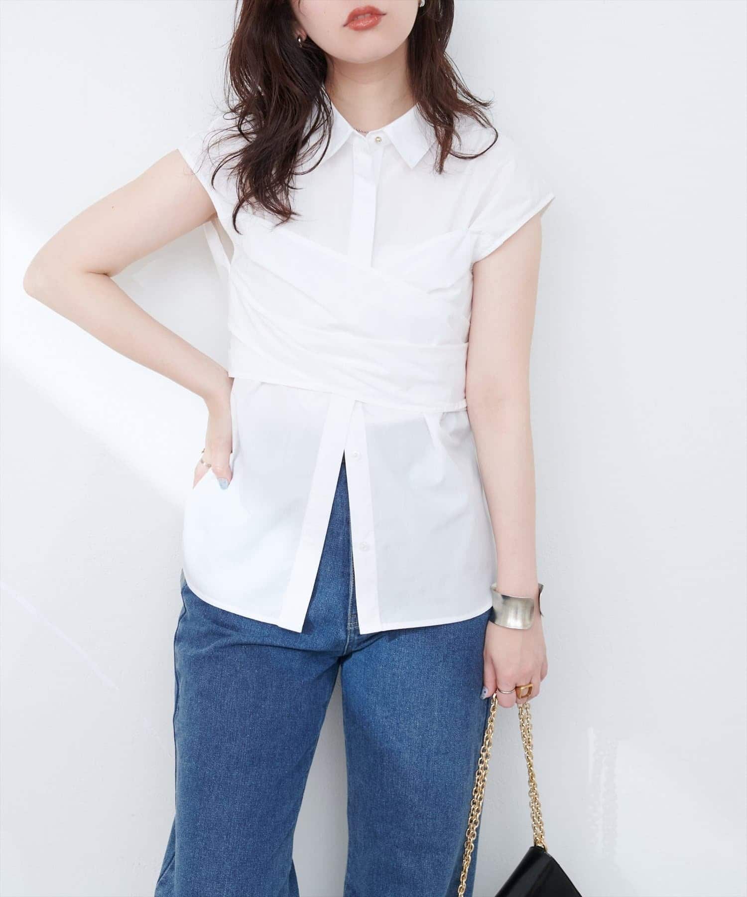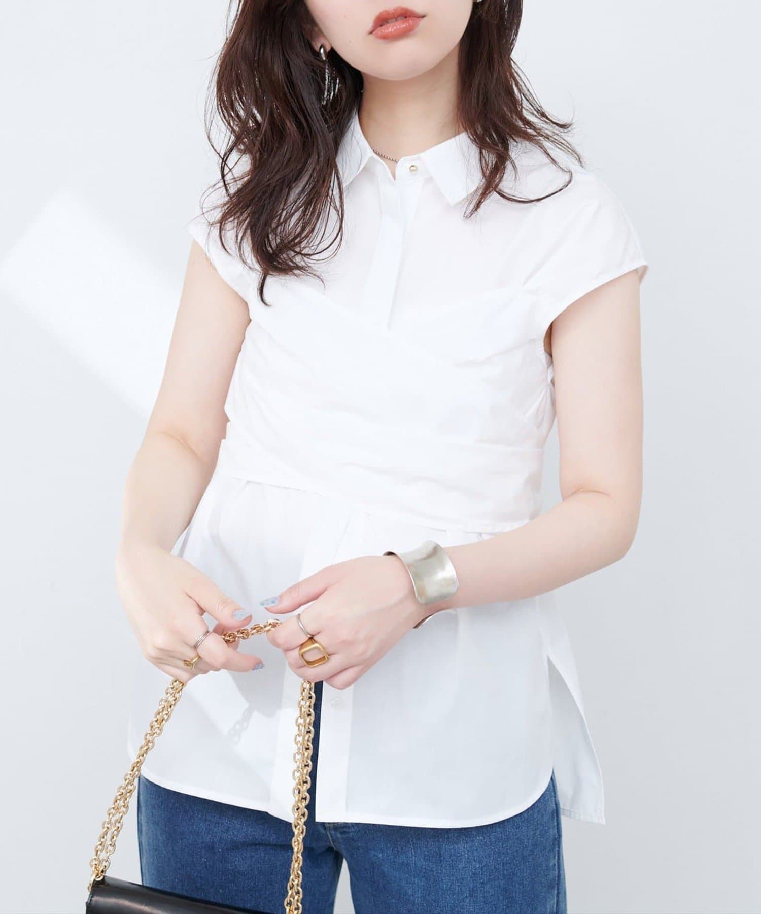 • NICE CLAUP / OLIVE des OLIVE OUTLET(ナイスクラップ  / オリーブ デ オリーブ アウトレット) 【natural couture】フロントクロス2WAYシャツブラウス