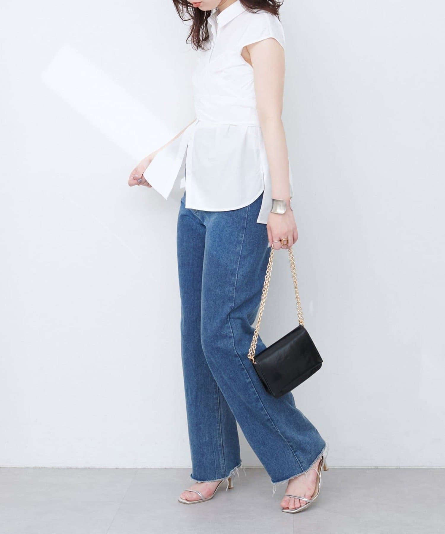 カラーのストライプか白シャツかで悩んで、とりあえず白を購入しました。2WAYで着られて、コーディネートの幅が広がります。