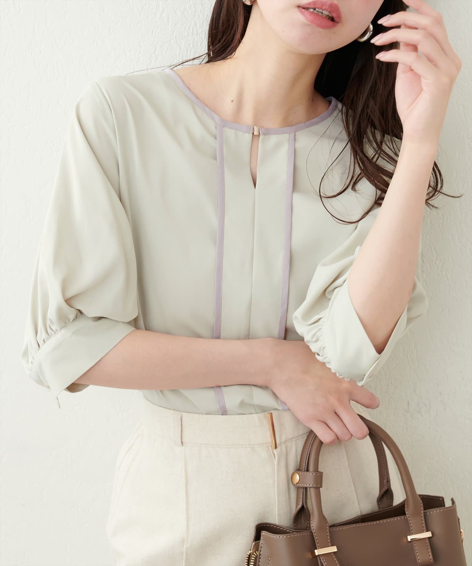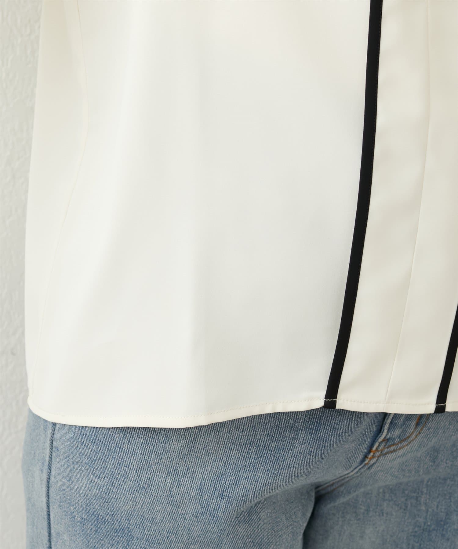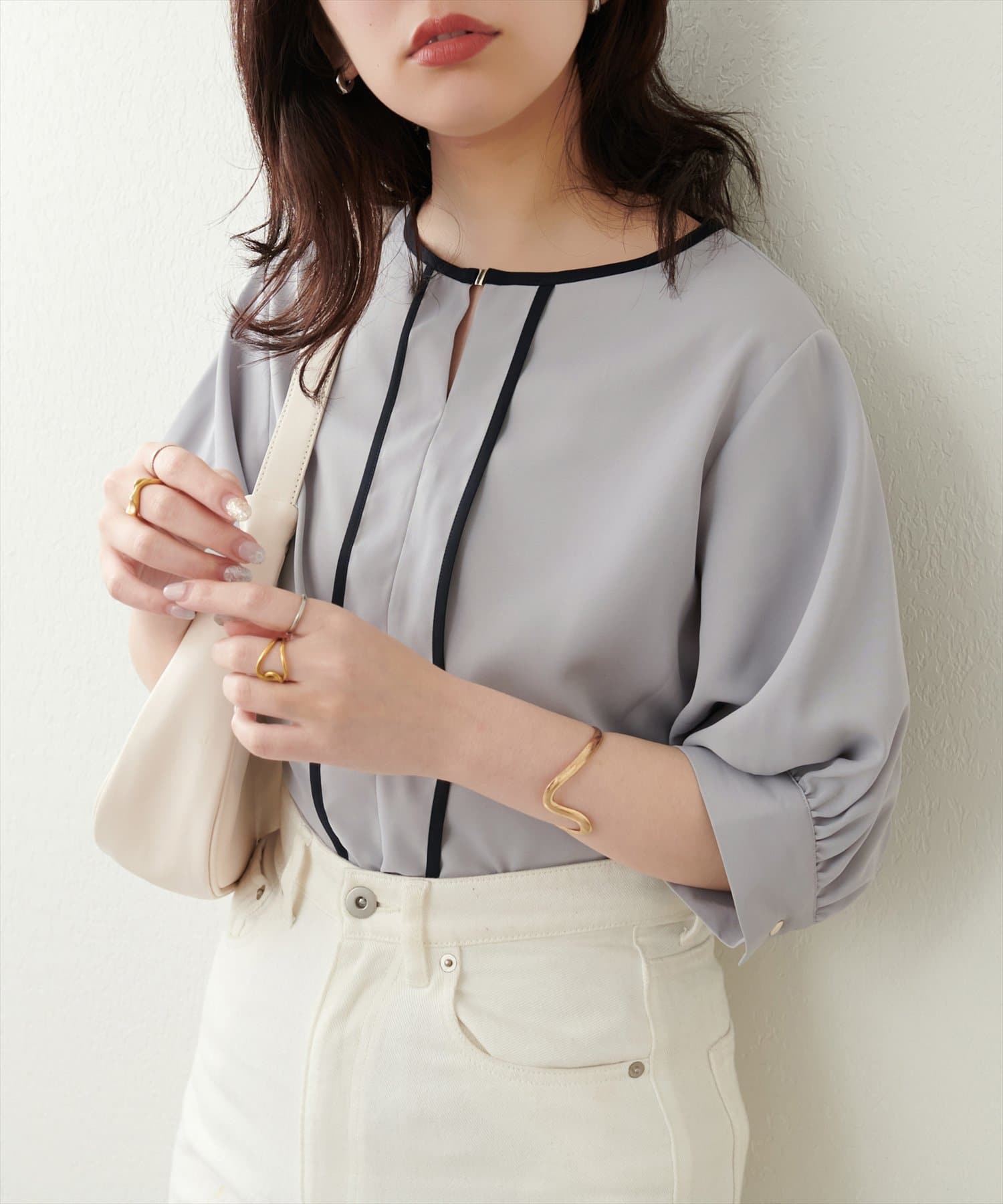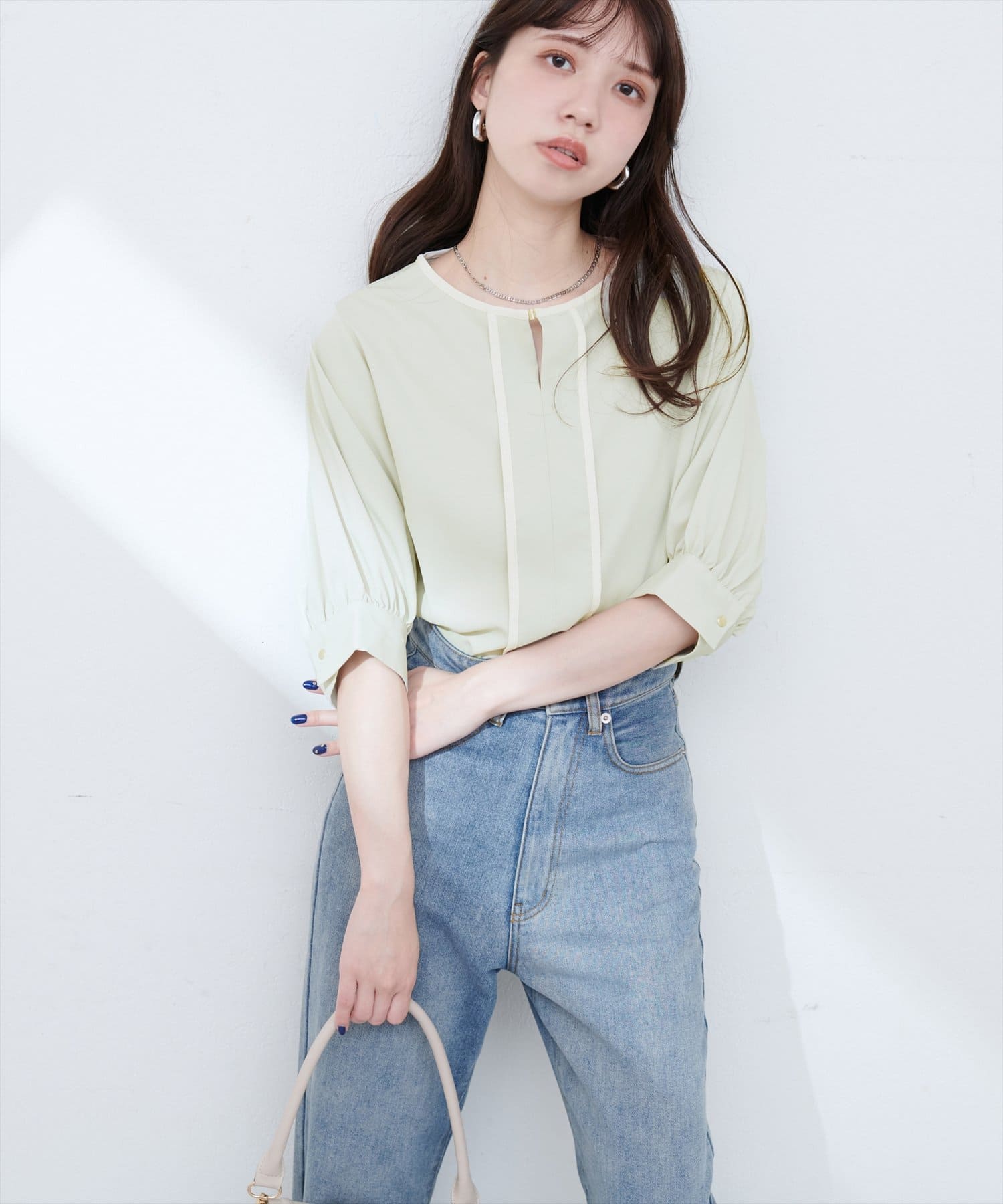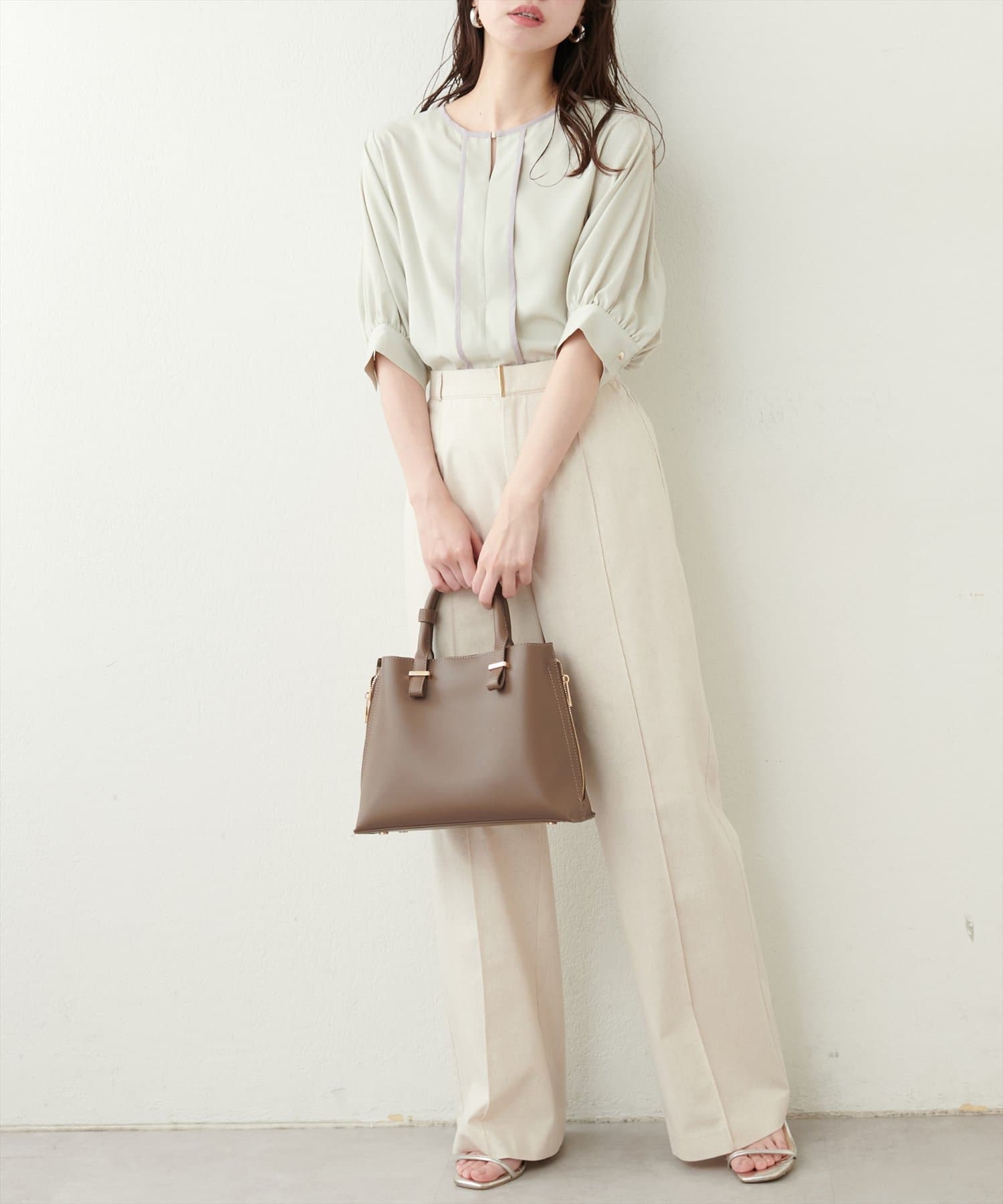 さらっとしたポリエステル素材で落ち感のある生地が、コーデを上品さと女性らしい印象に仕上げてくれます。