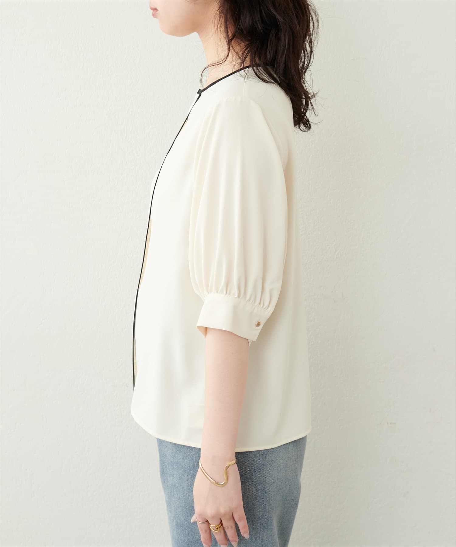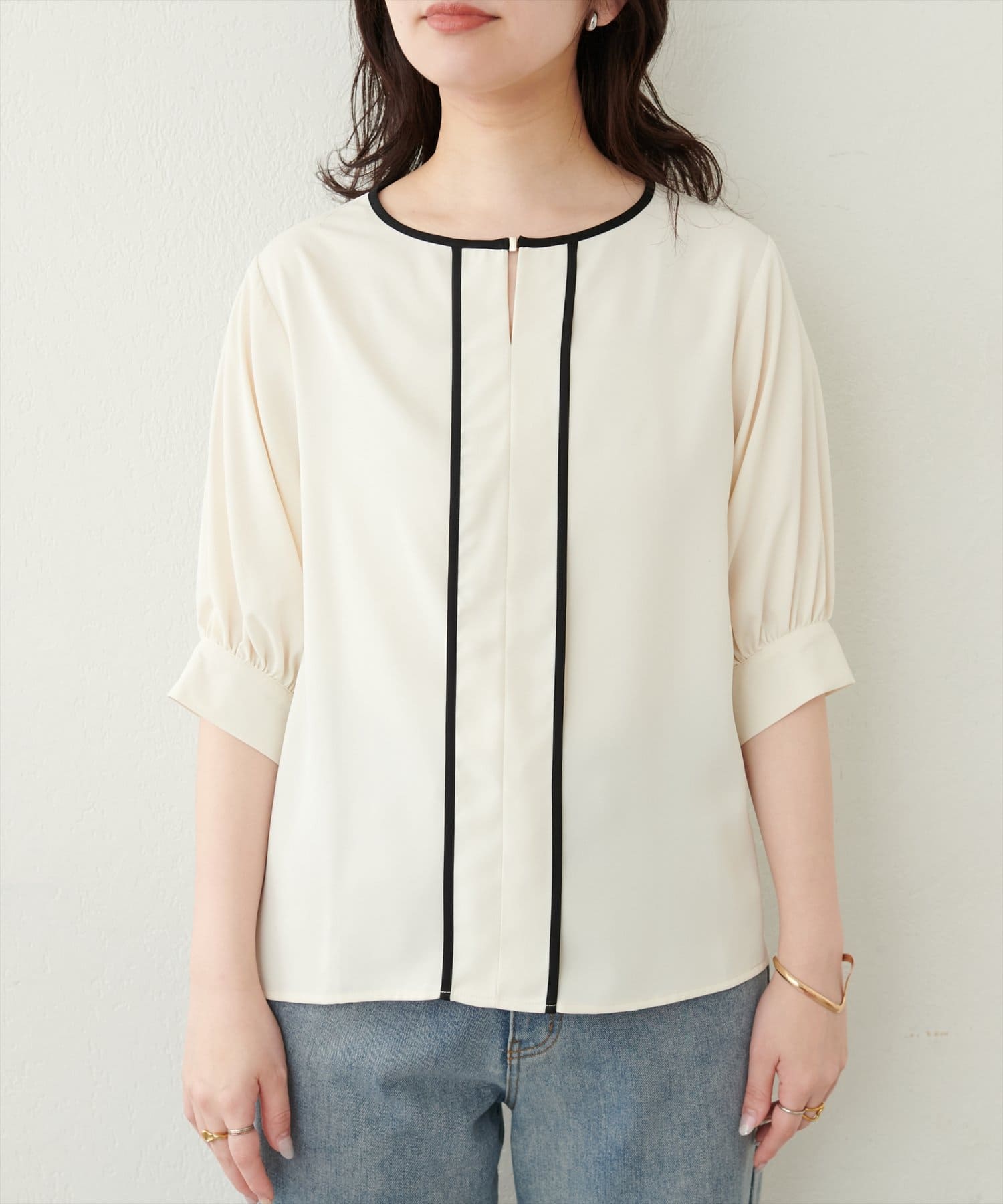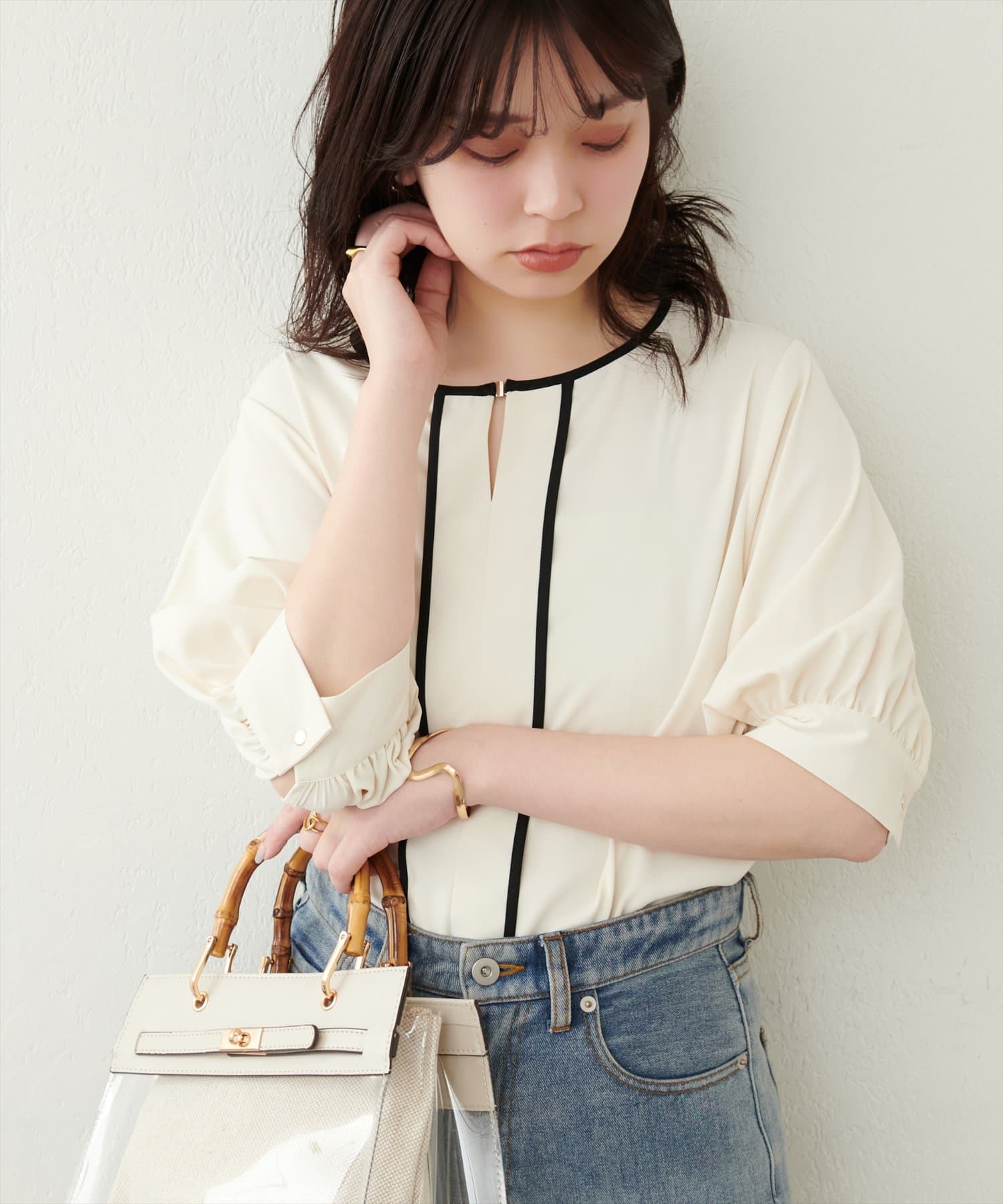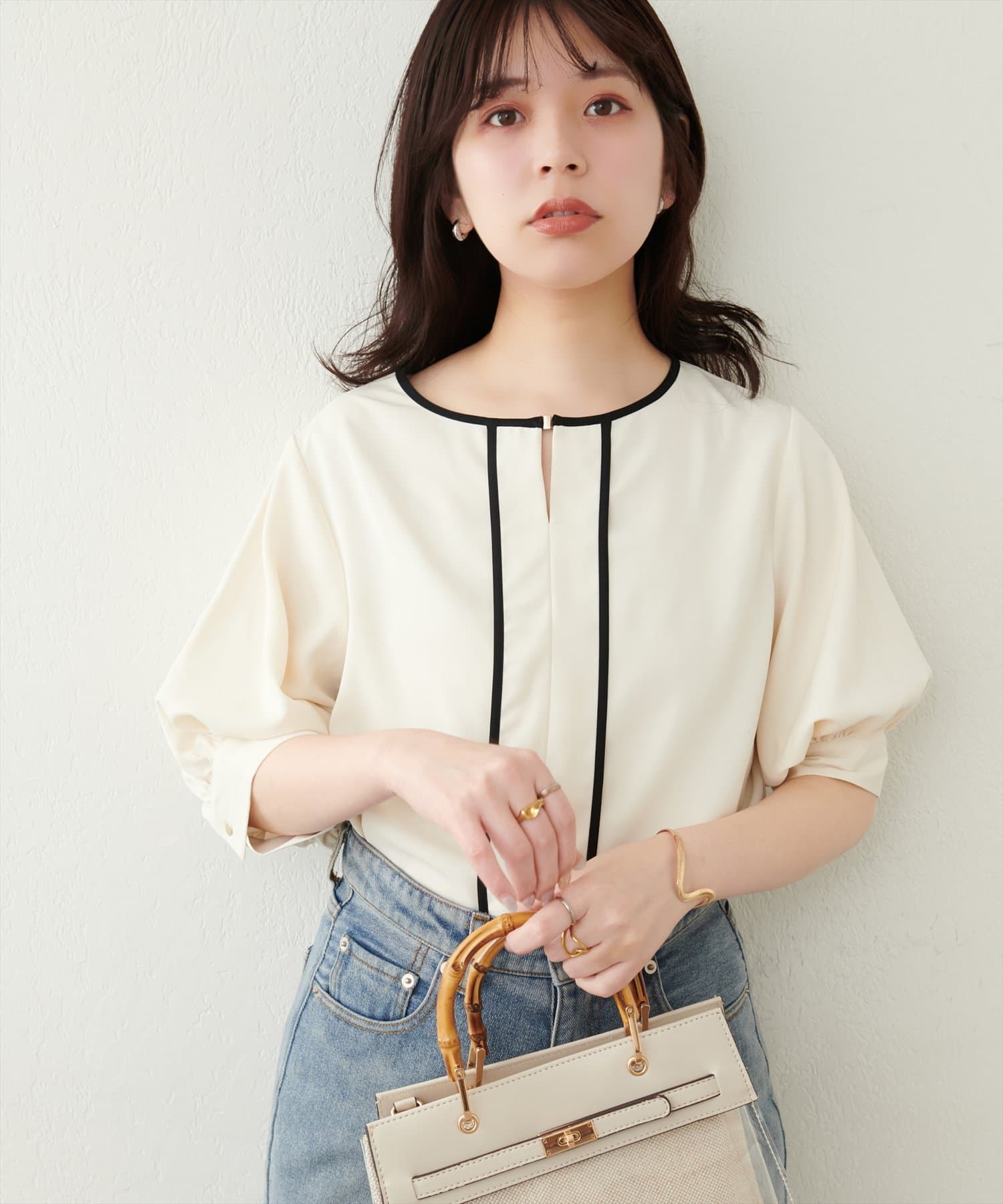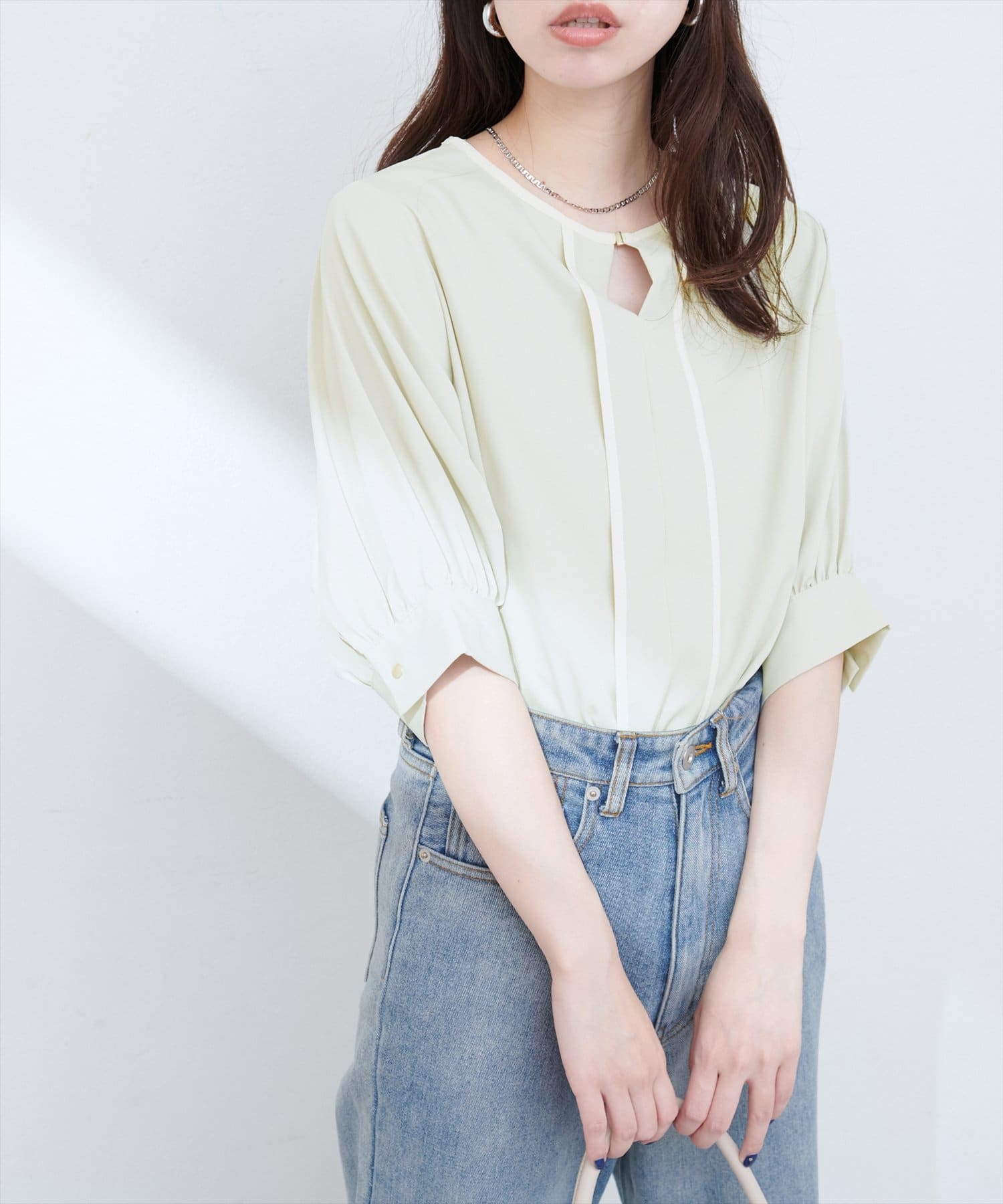 さらっとしたポリエステル素材で落ち感のある生地が、コーデを上品さと女性らしい印象に仕上げてくれます。