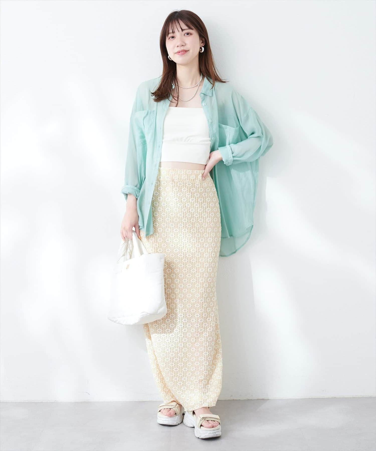 程よい肌見せで女性らしさもプラスして頂けるシアー素材を採用した、旬な1品。