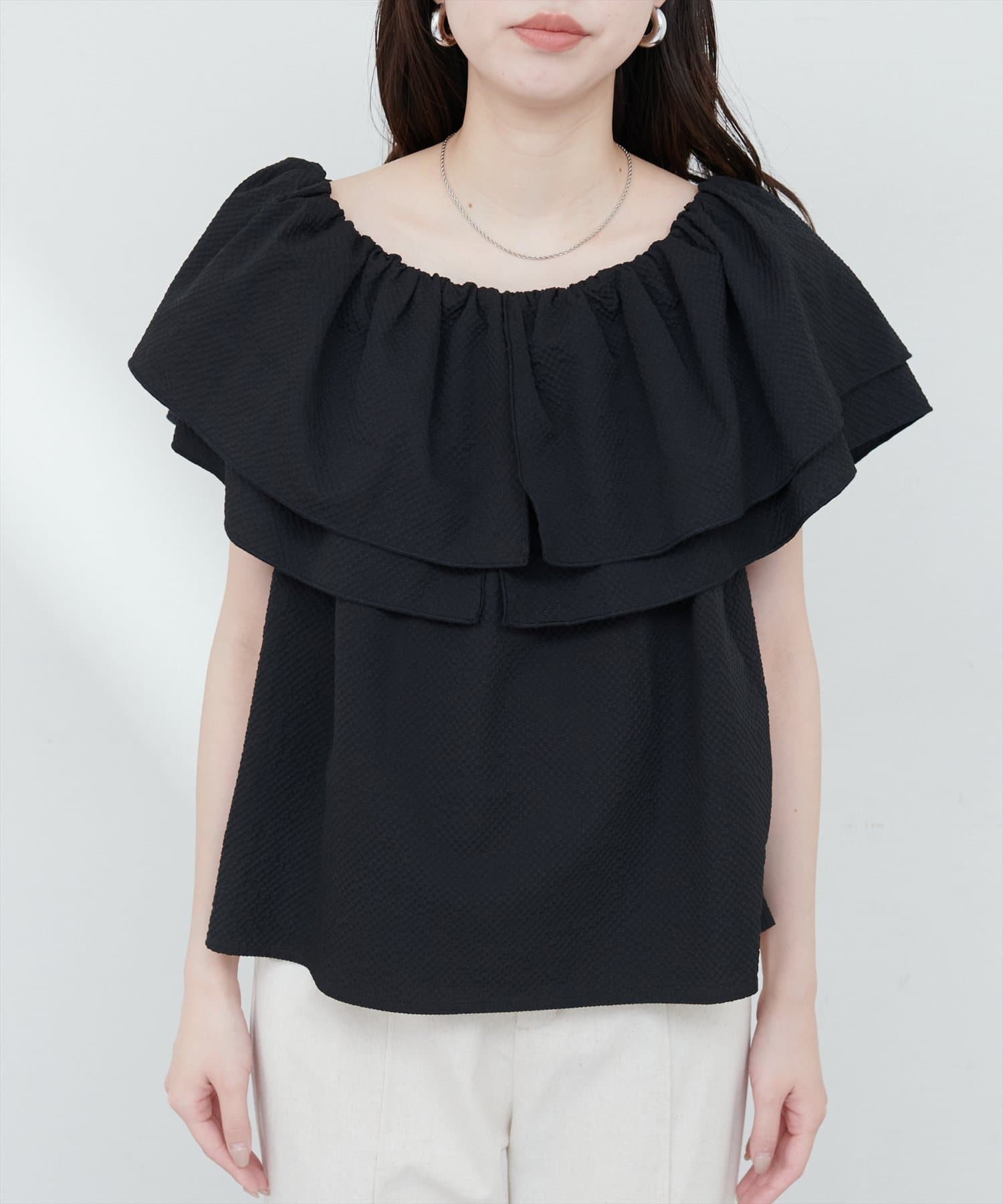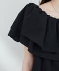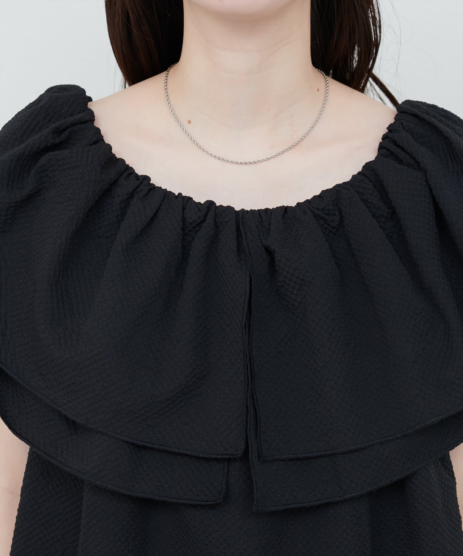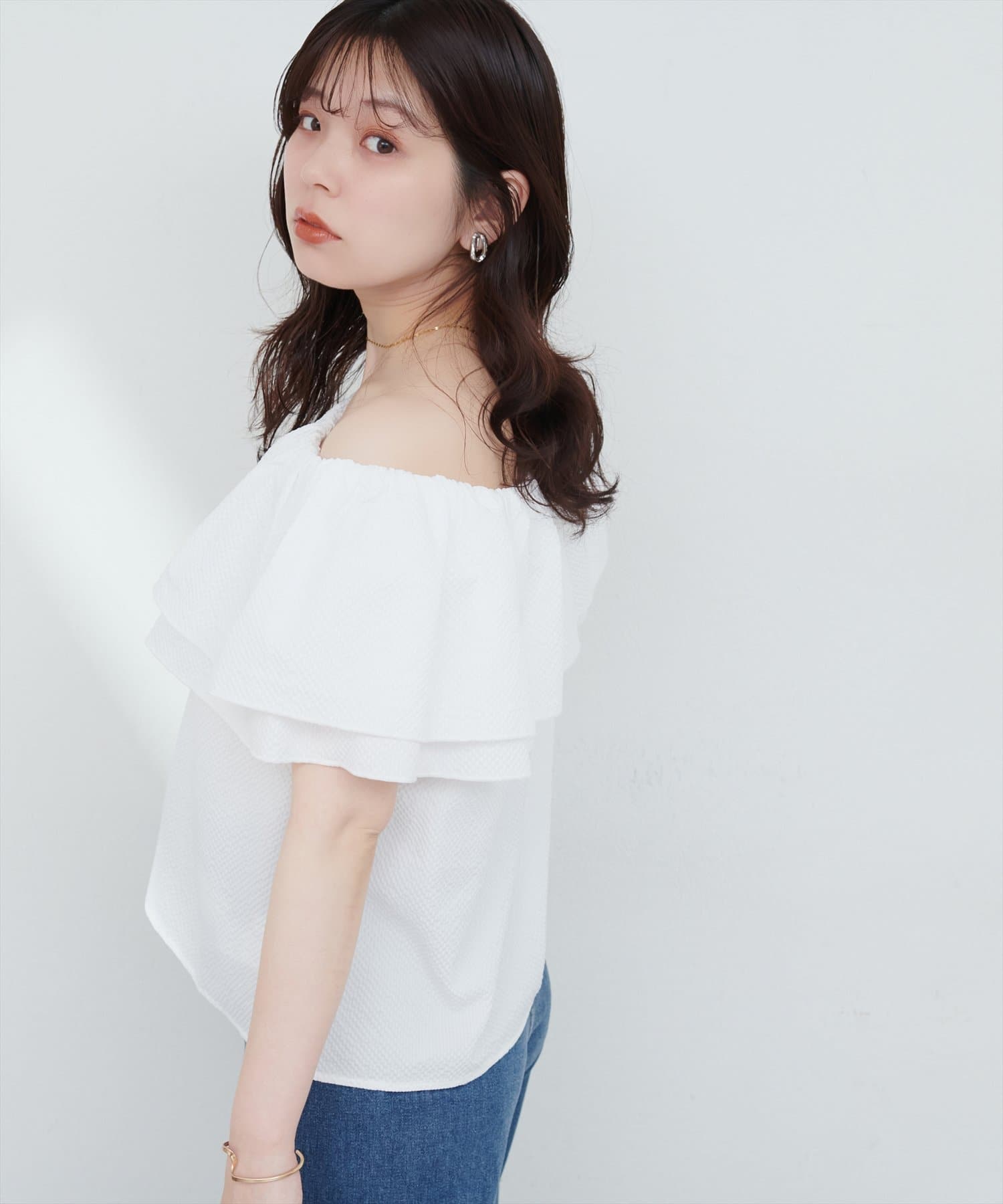 ダブルのフリルが肩周りにボリューム感を与え、顔周りを明るく見せてくれます。