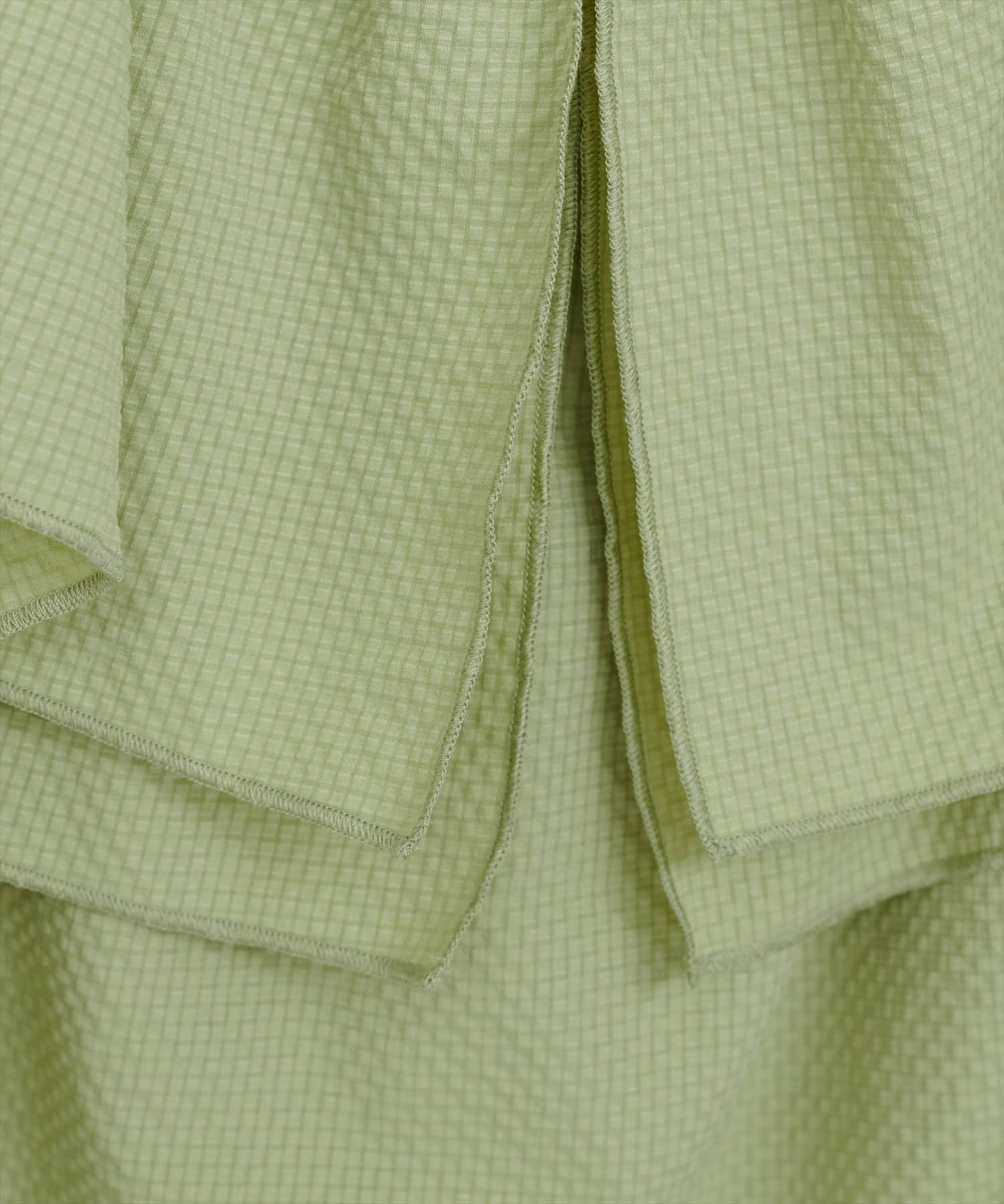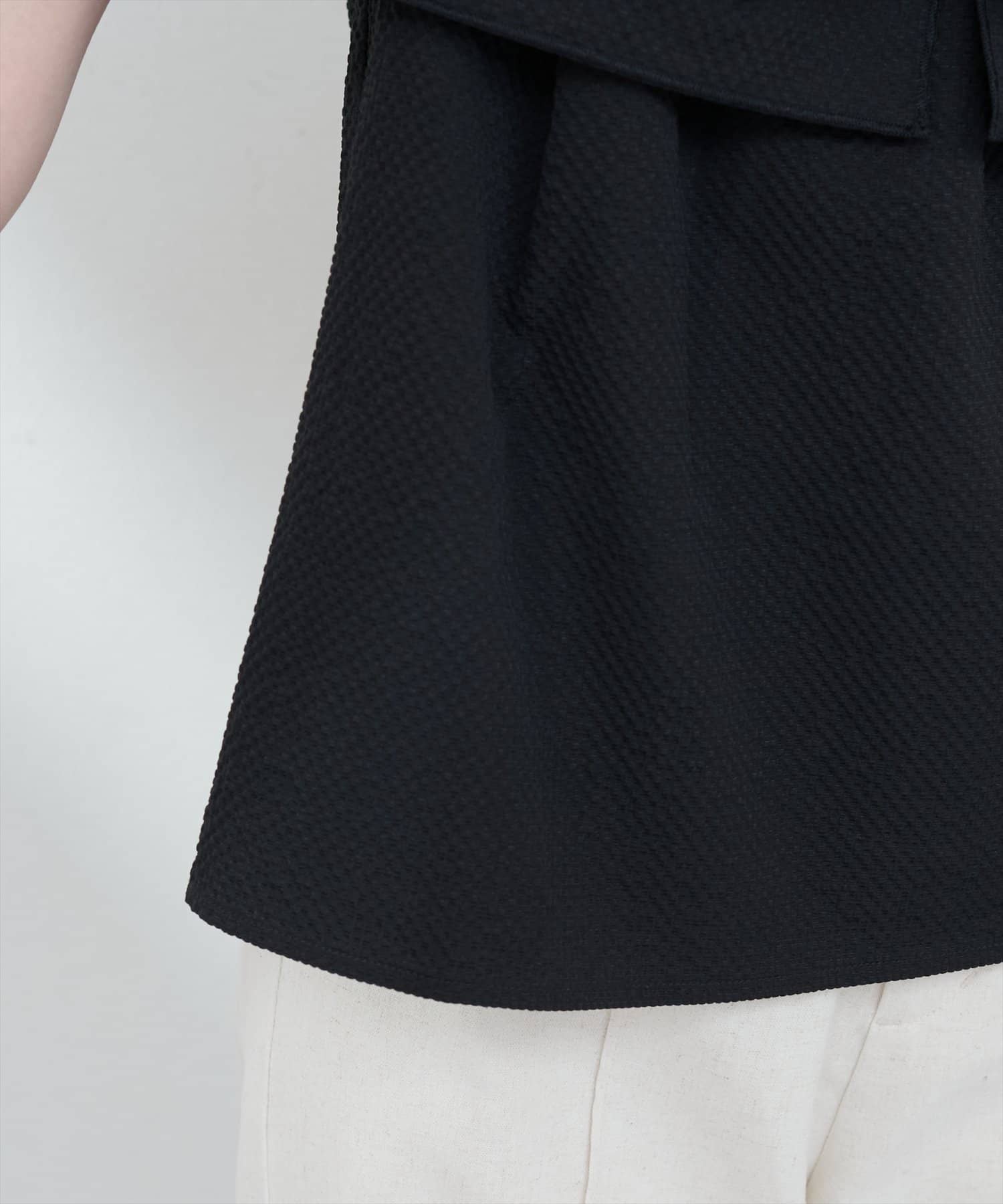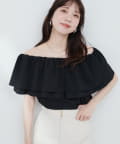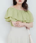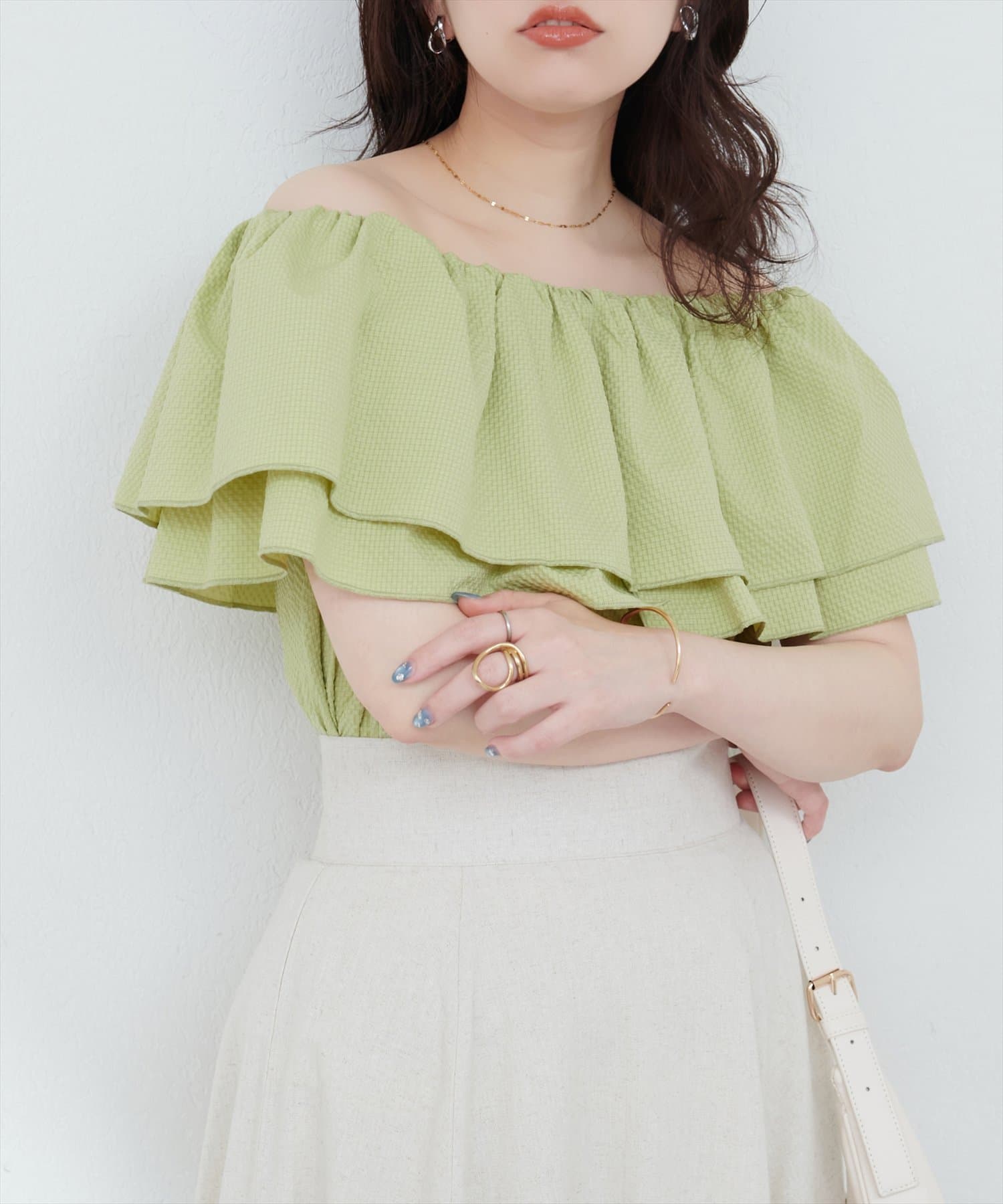 ダブルのフリルが肩周りにボリューム感を与え、顔周りを明るく見せてくれます。