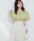 肩を落としたオフショルダーデザインは、女性らしいデコルテを美しく魅せ、華奢な印象を与えます。