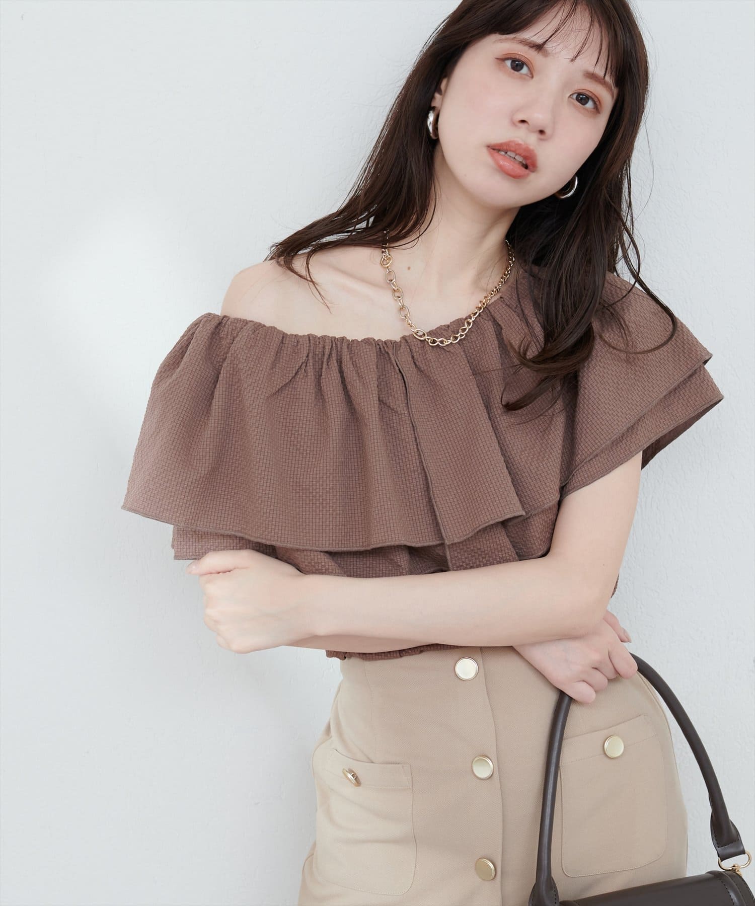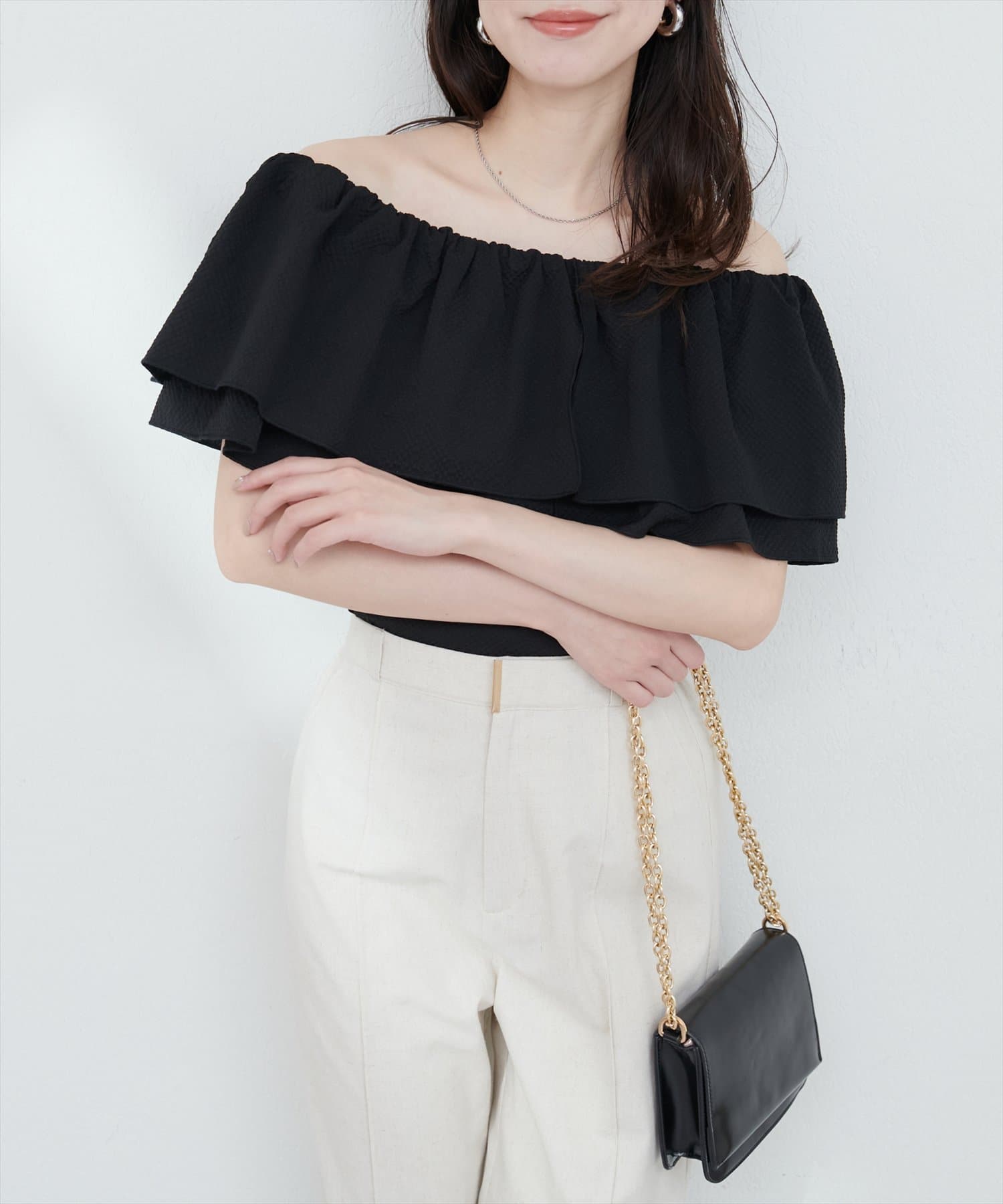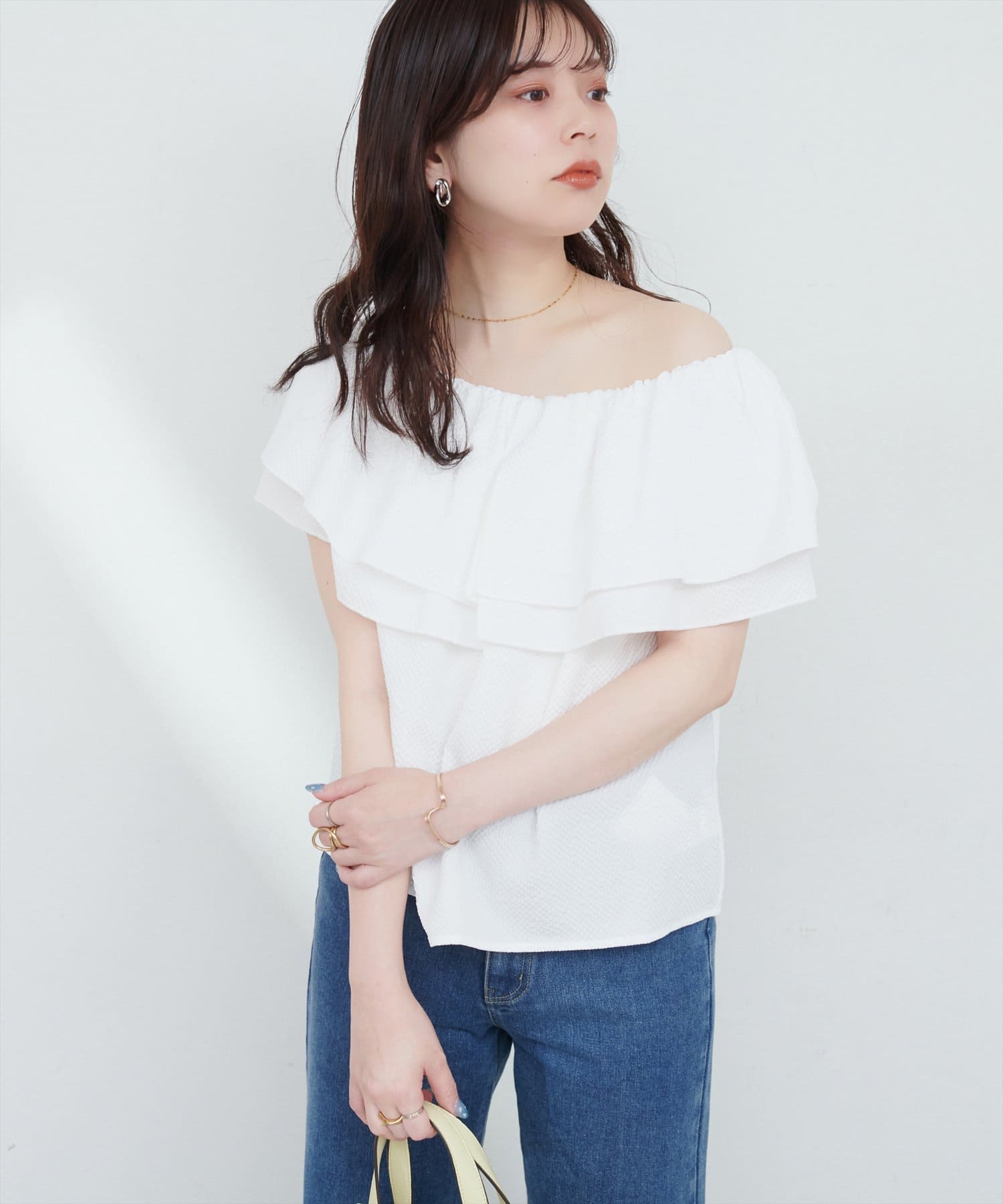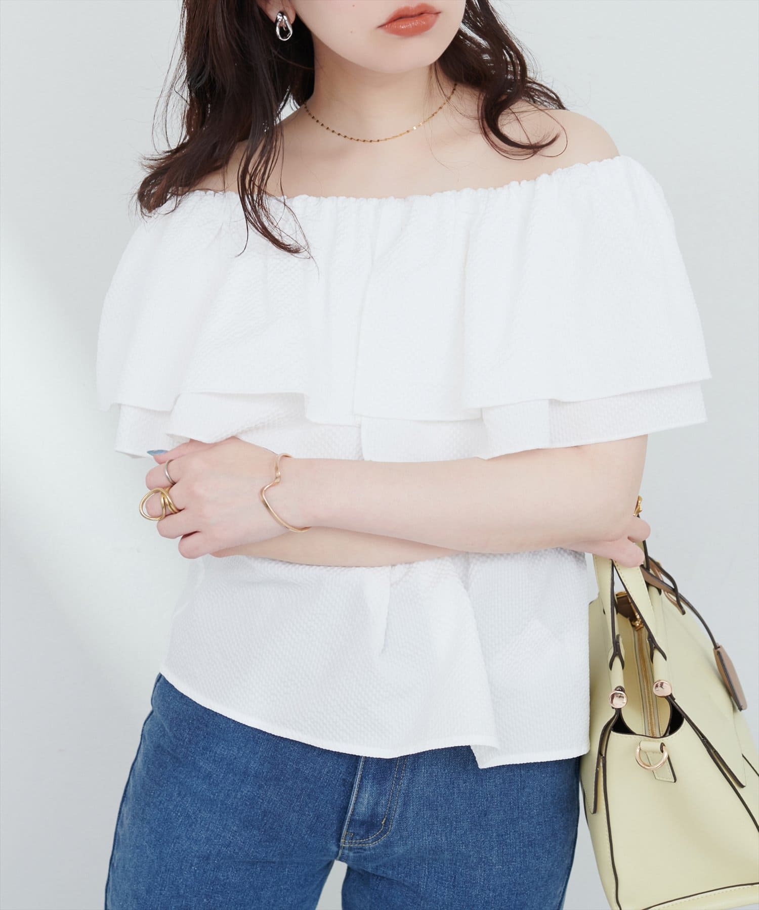 一枚で主役級の存在感を放つ、オフショルブラウス。