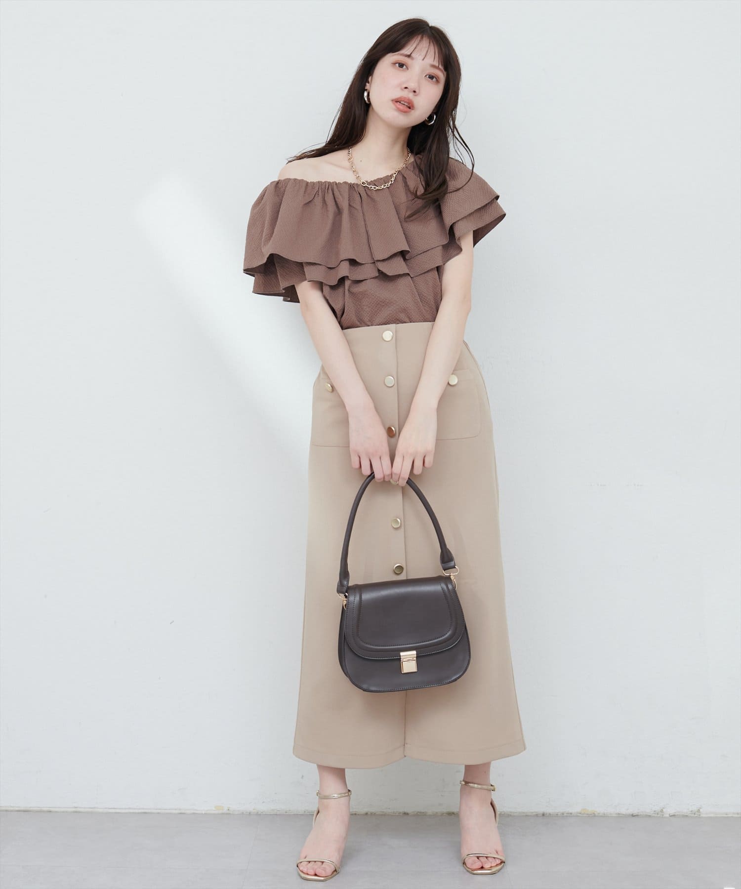 フリルは甘くなりすぎず、程よいボリューム感なので、大人の女性にもぴったり。