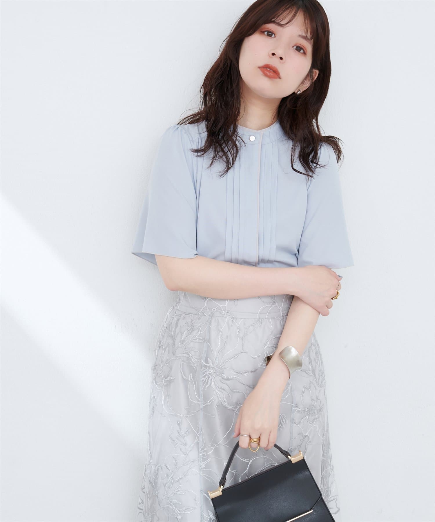 風をまとうような軽やかさで、上品な印象を演出するブラウス。