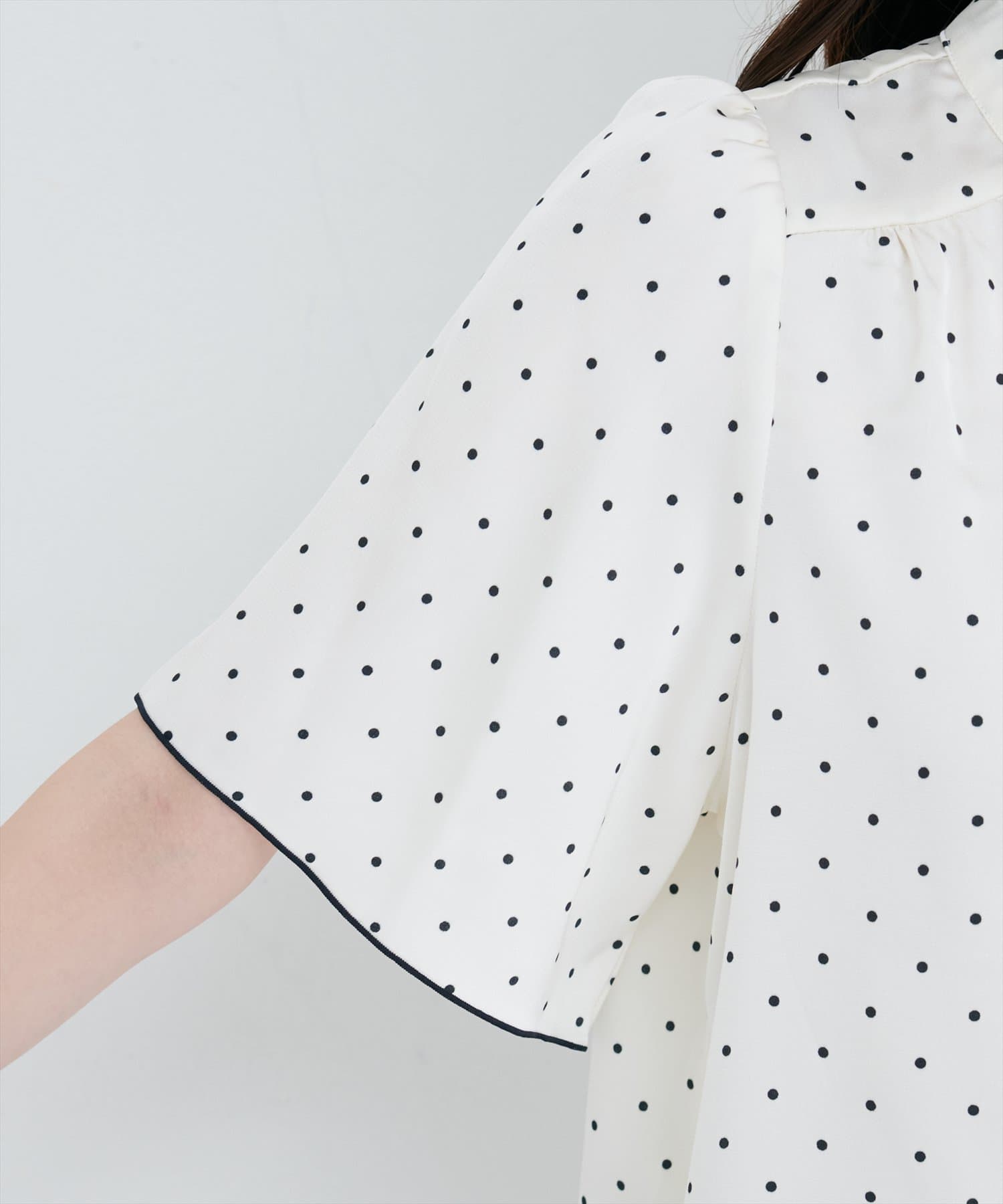 ふんわり広がるフレアスリーブは二の腕をすっきりと見せてくれます。