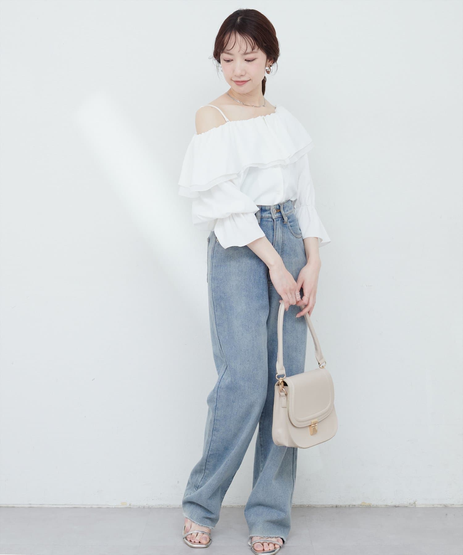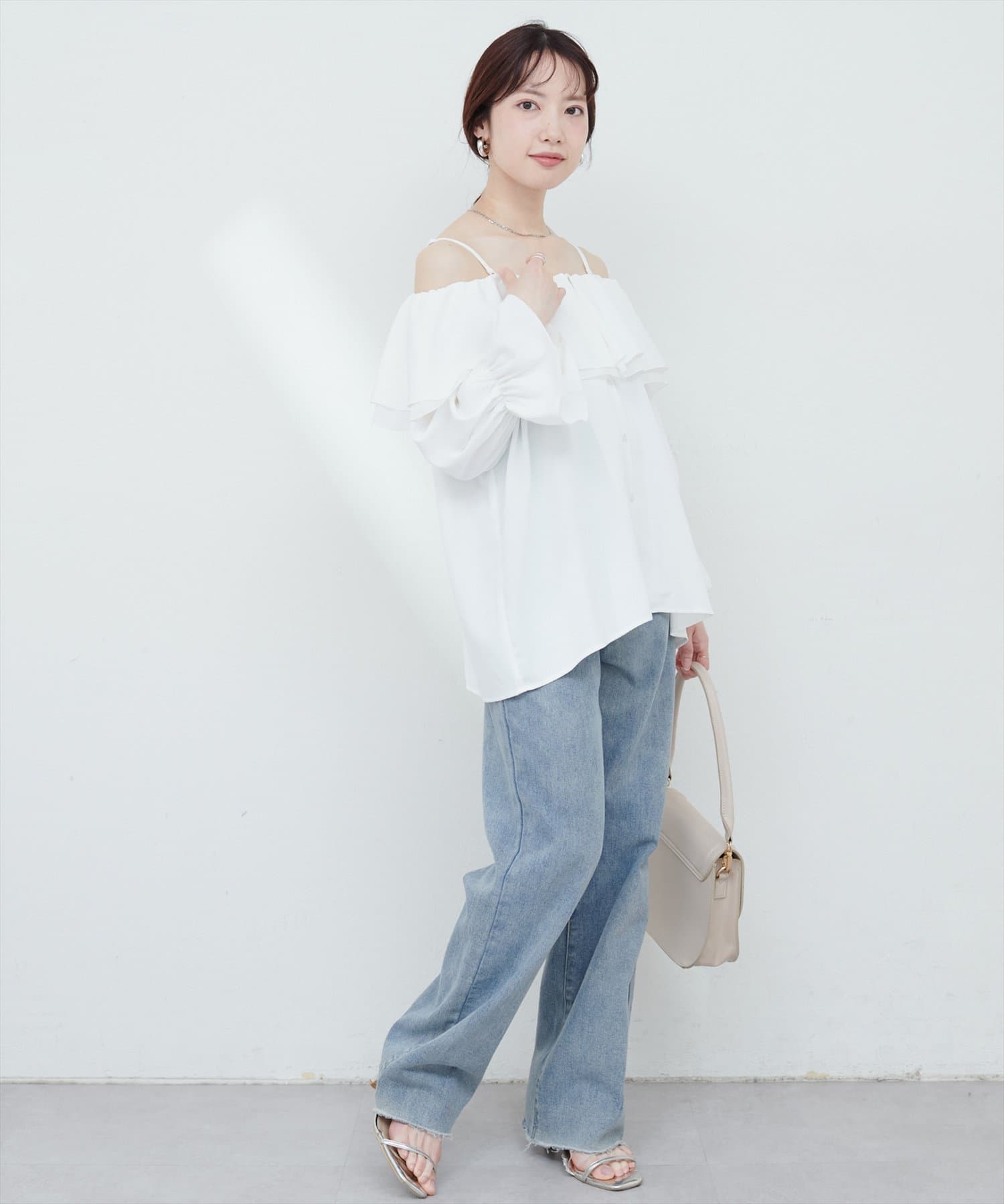 肩を落とさずノーマルでも、肩を落としてオフショルでも、シーンに合わせて着こなしを変えられます。
