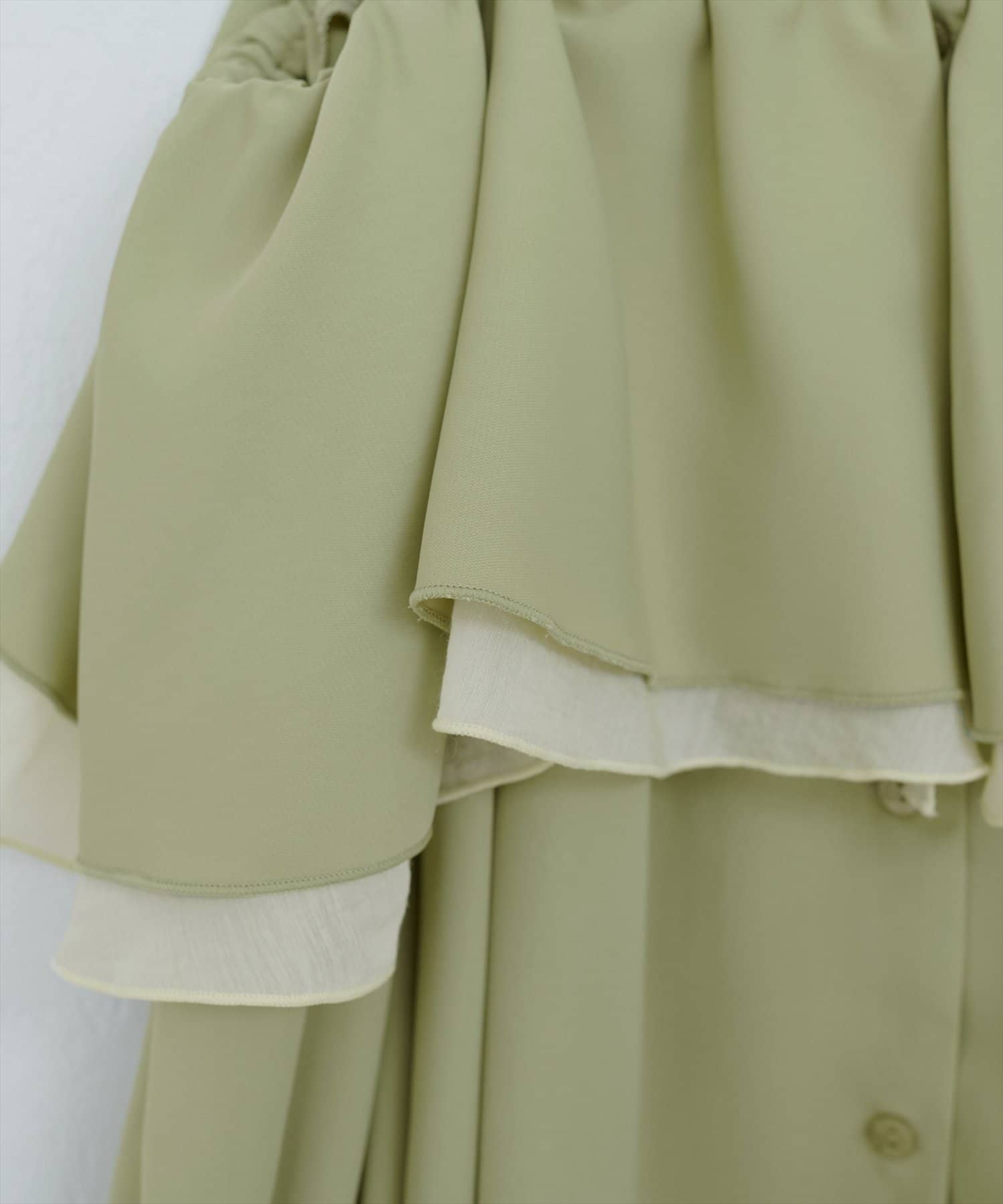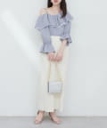フェミニンな印象のフリルが、一枚でコーディネートを華やかにします。