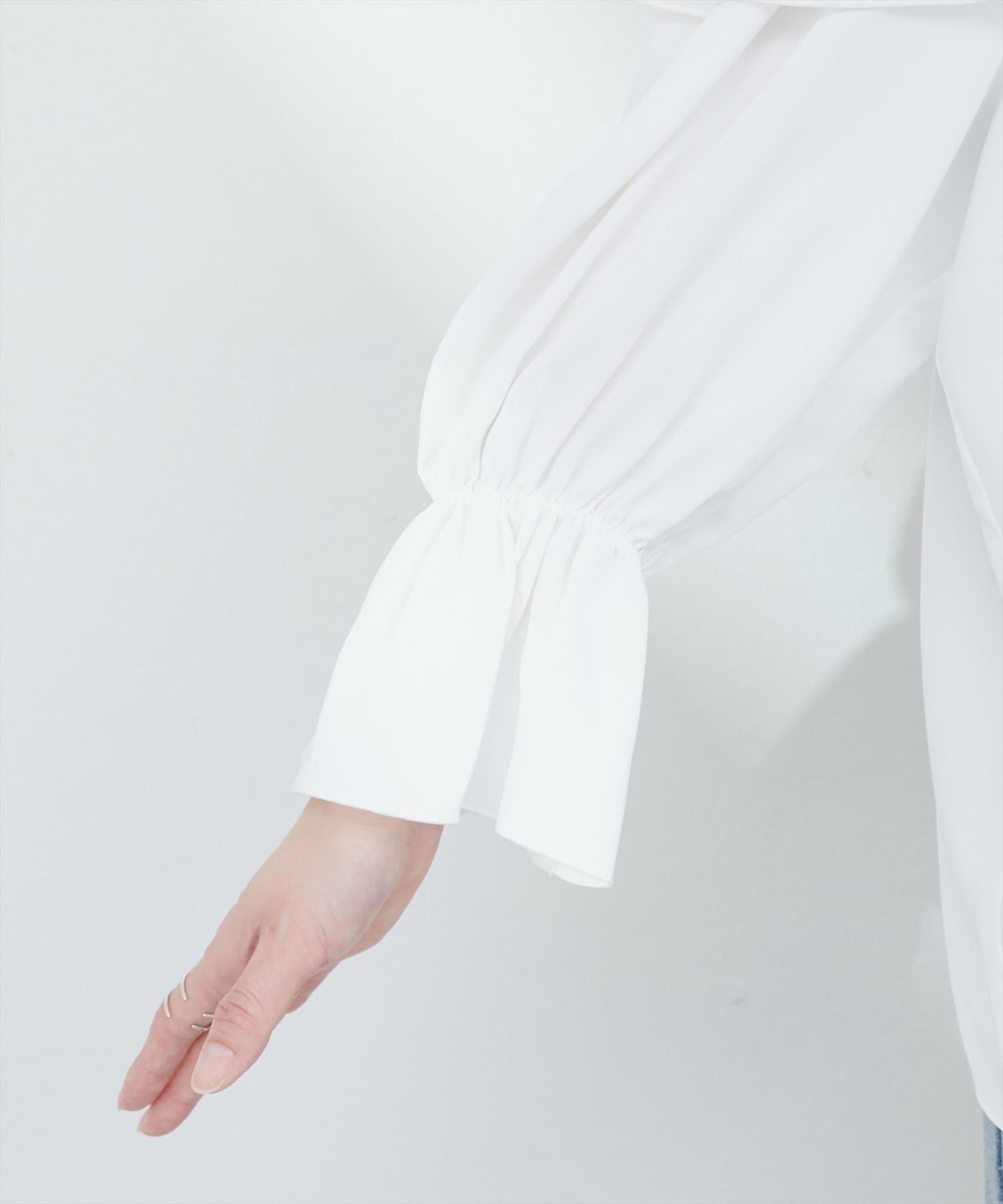 袖口のシャーリングがアクセントになり、手元を華奢に見せてくれます。